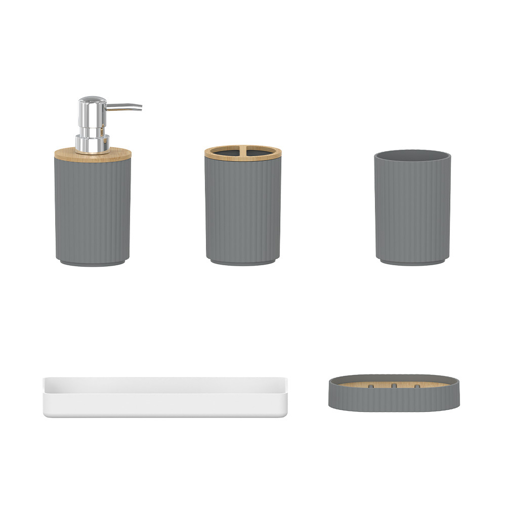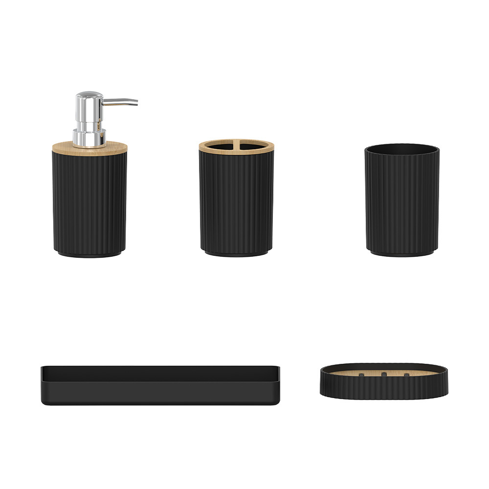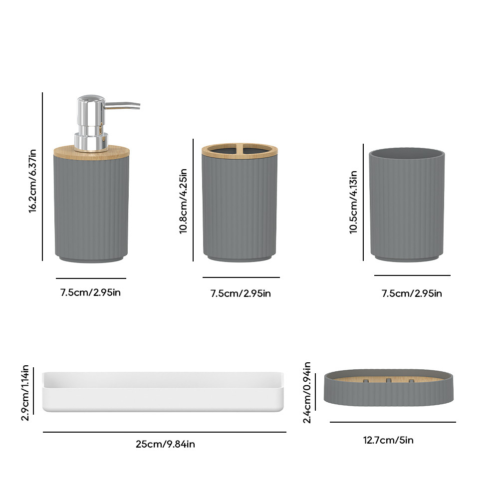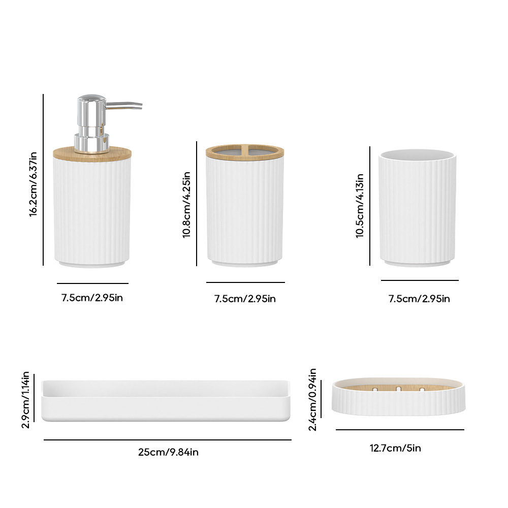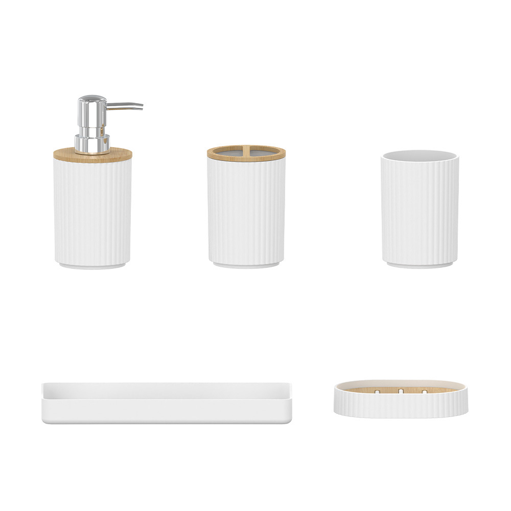 酒店民宿竹木摆件5件套浴室用品卫浴套装马桶刷牙刷架垃圾桶