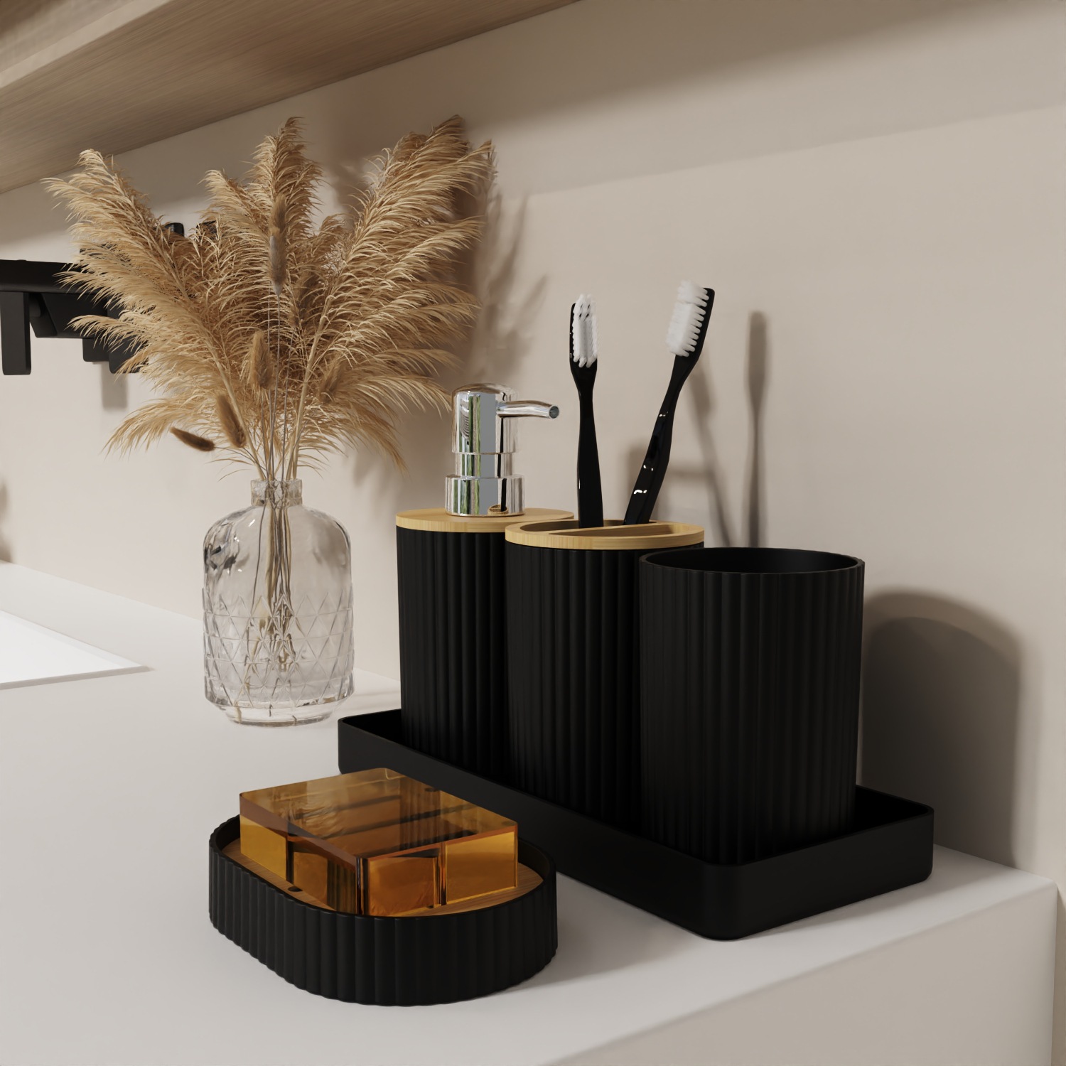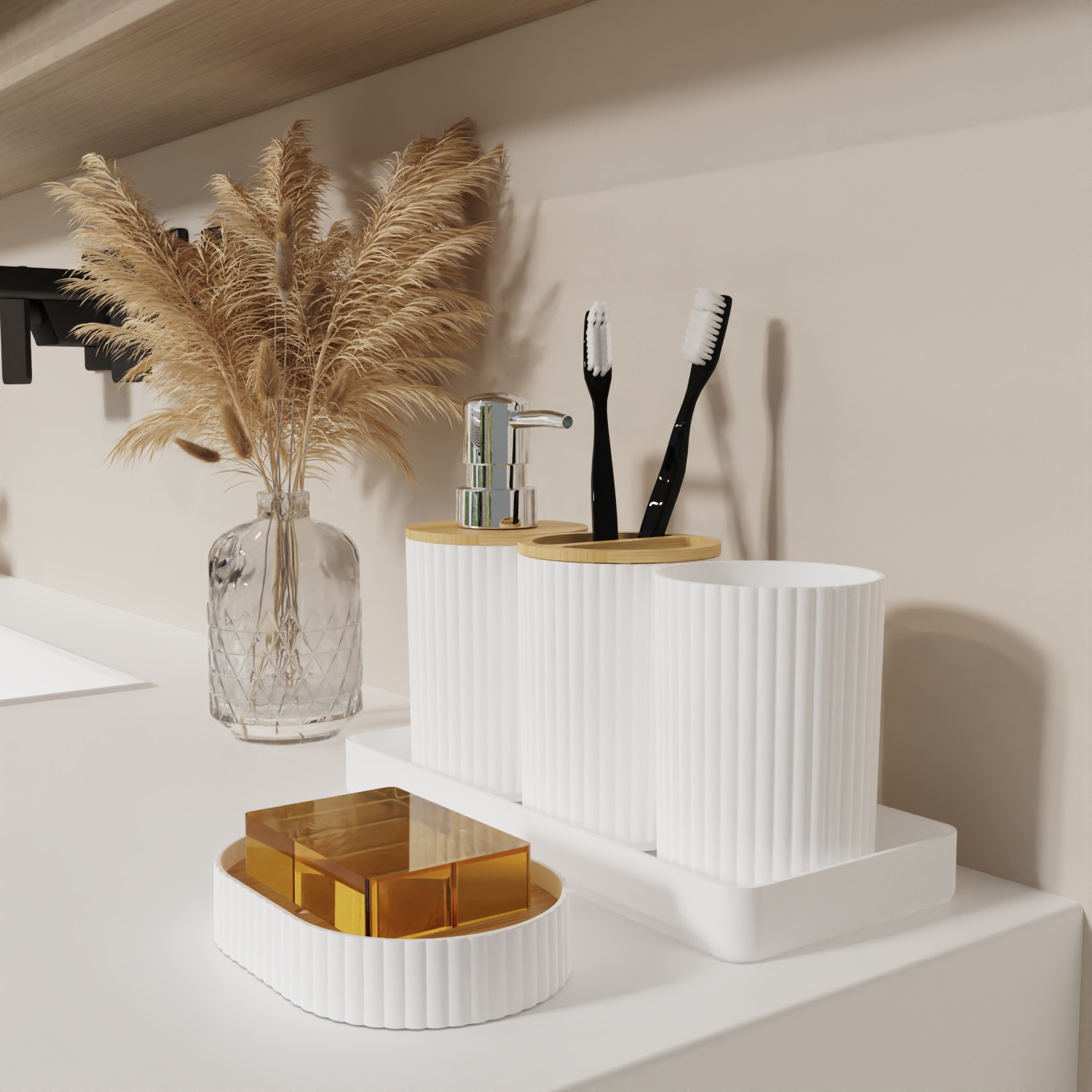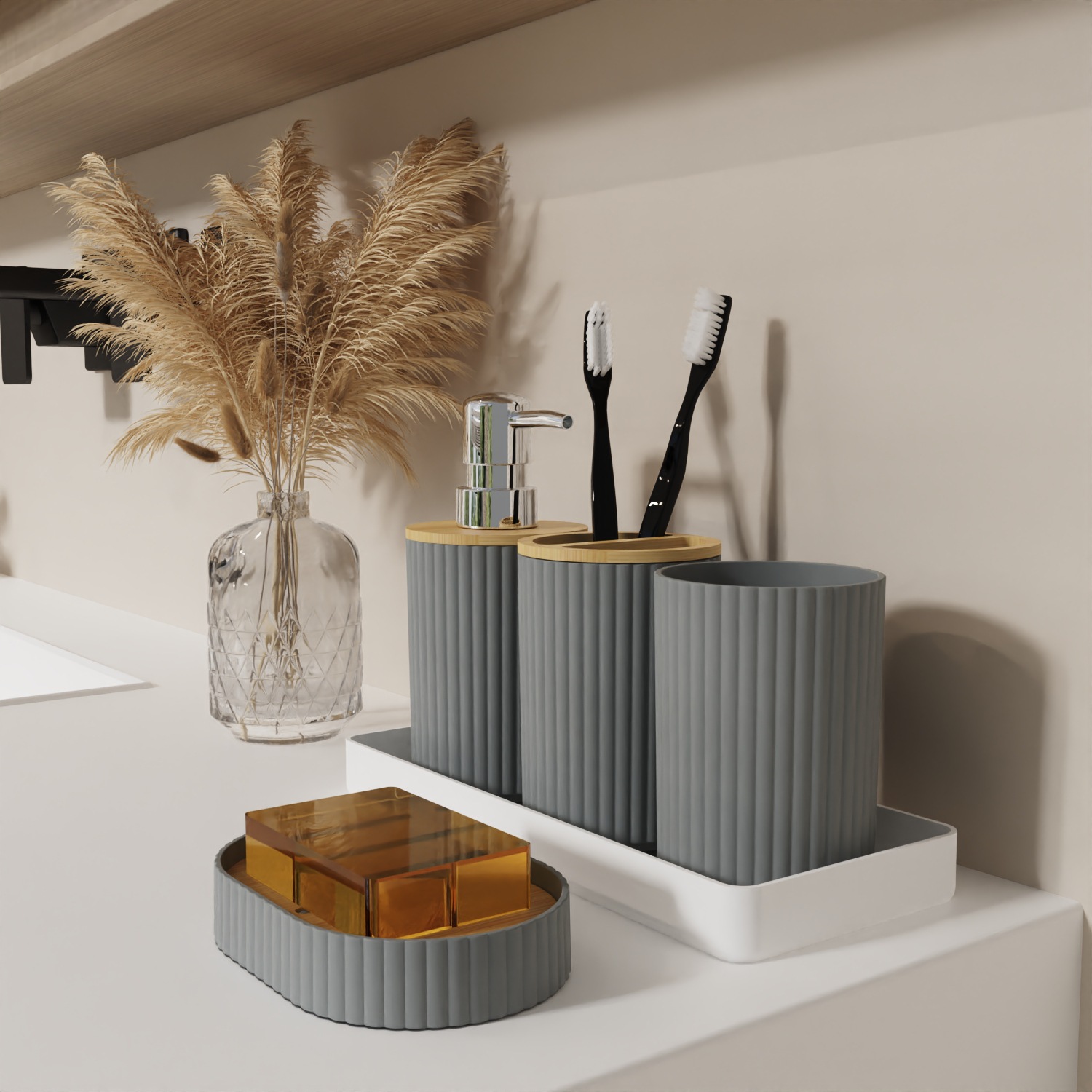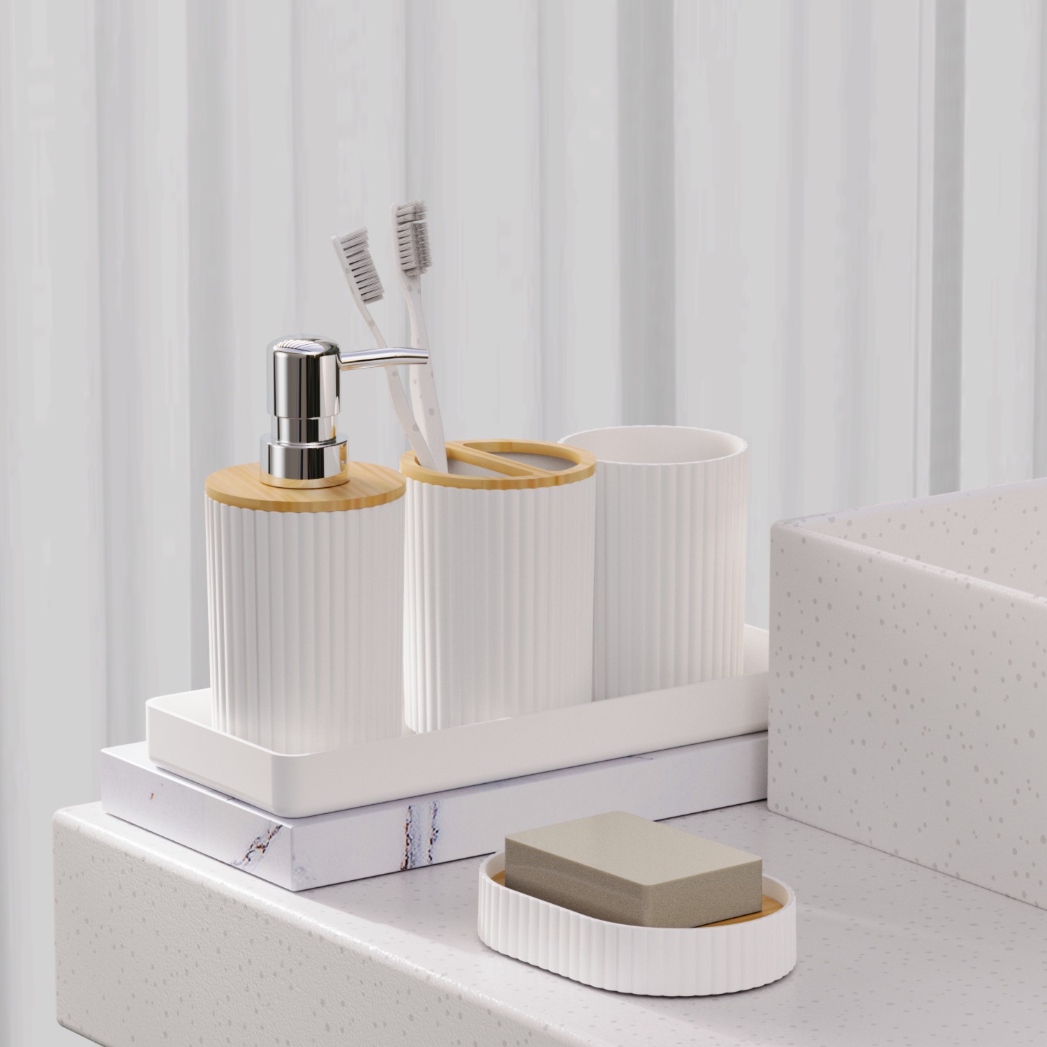 酒店民宿竹木摆件5件套浴室用品卫浴套装马桶刷牙刷架垃圾桶