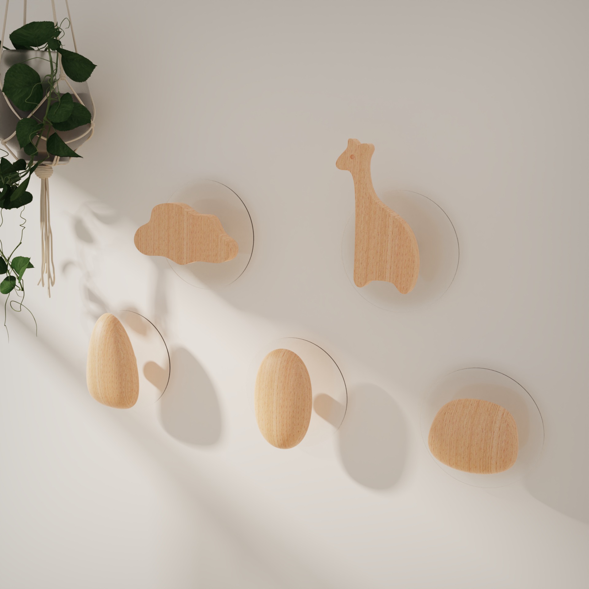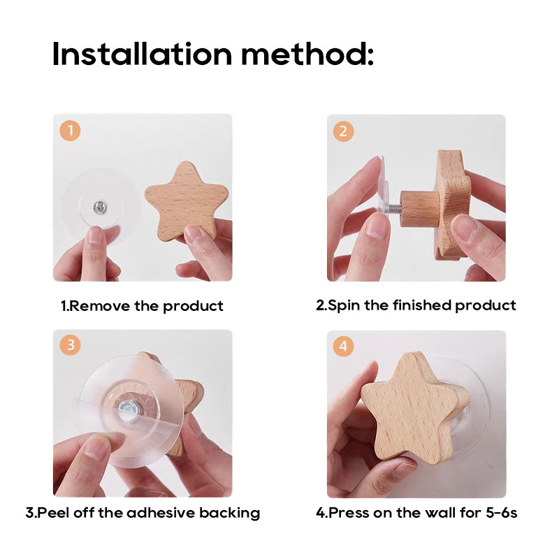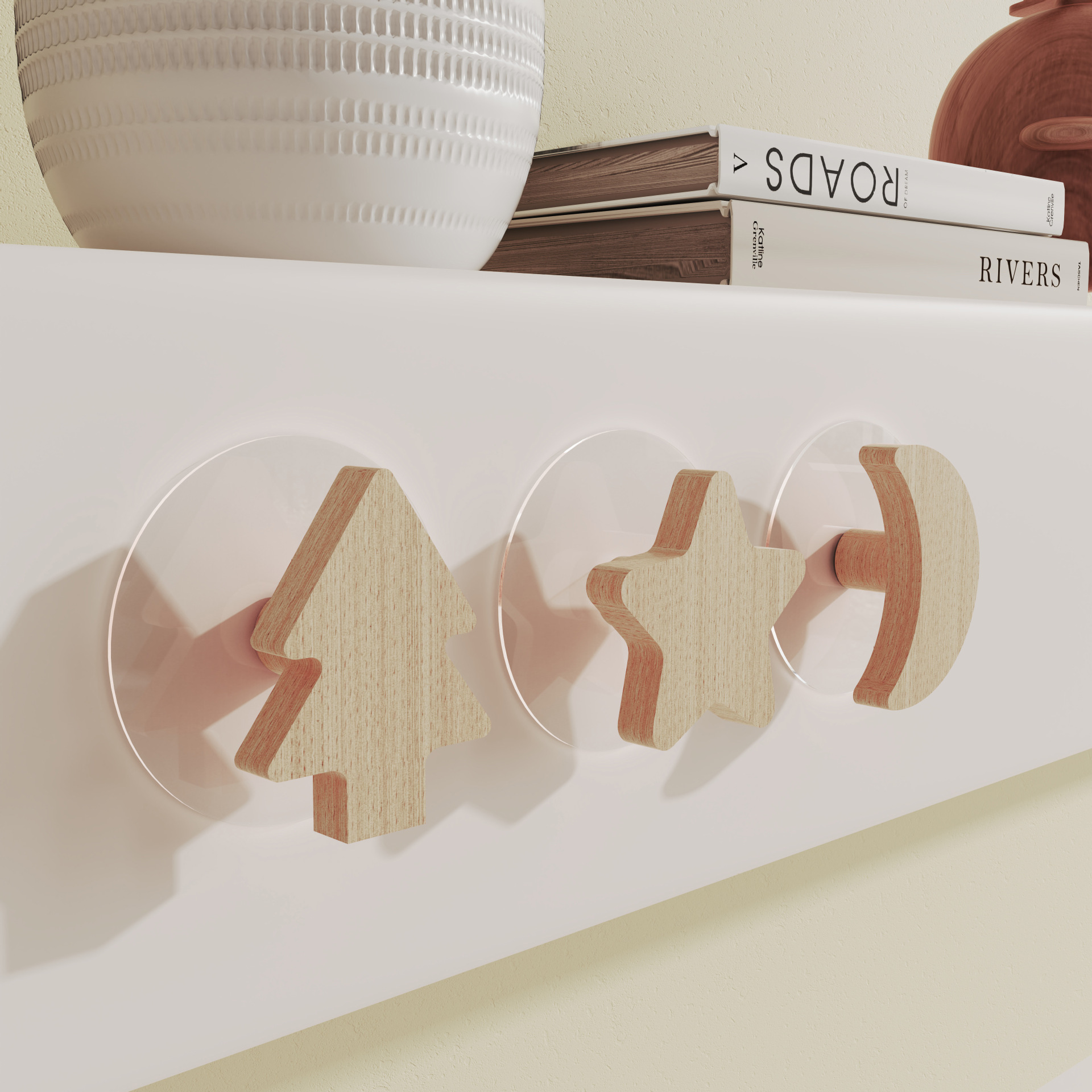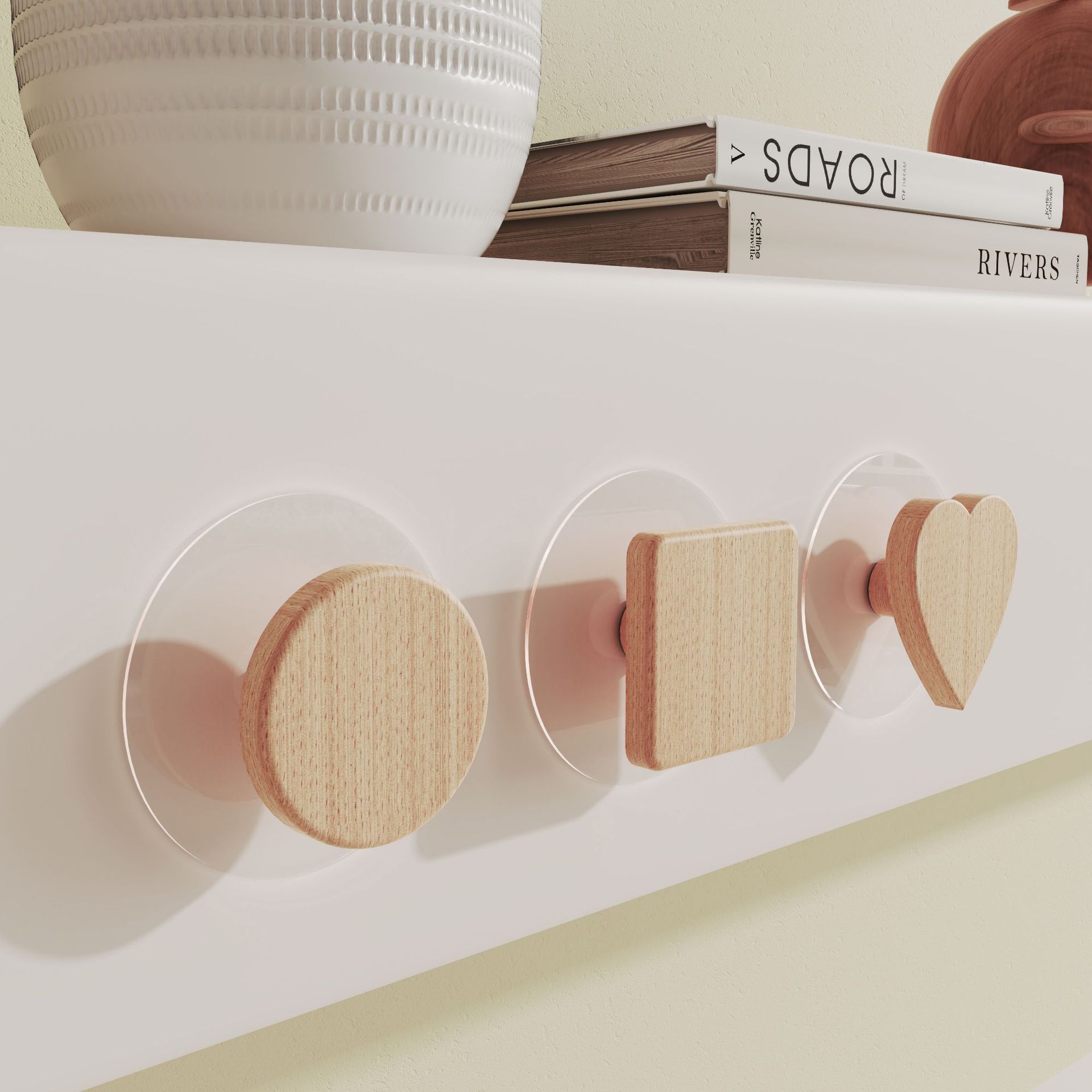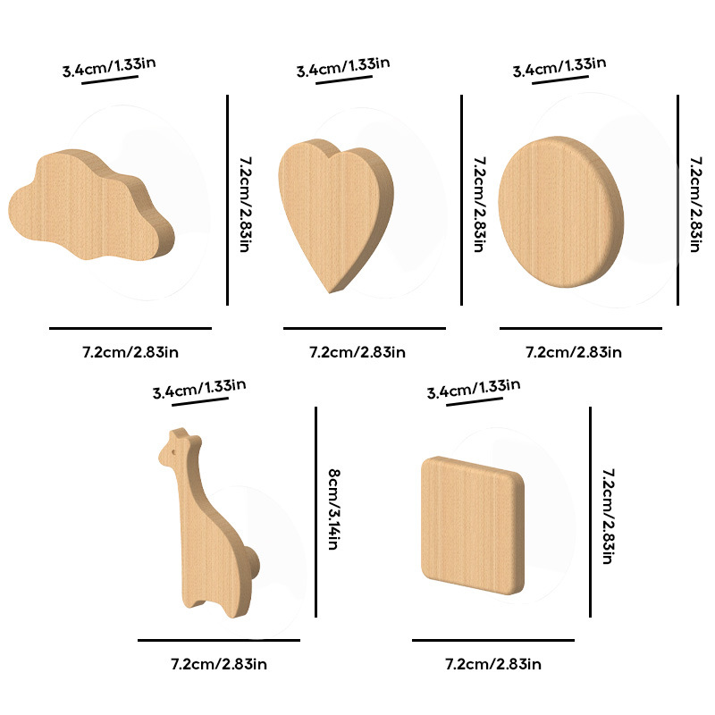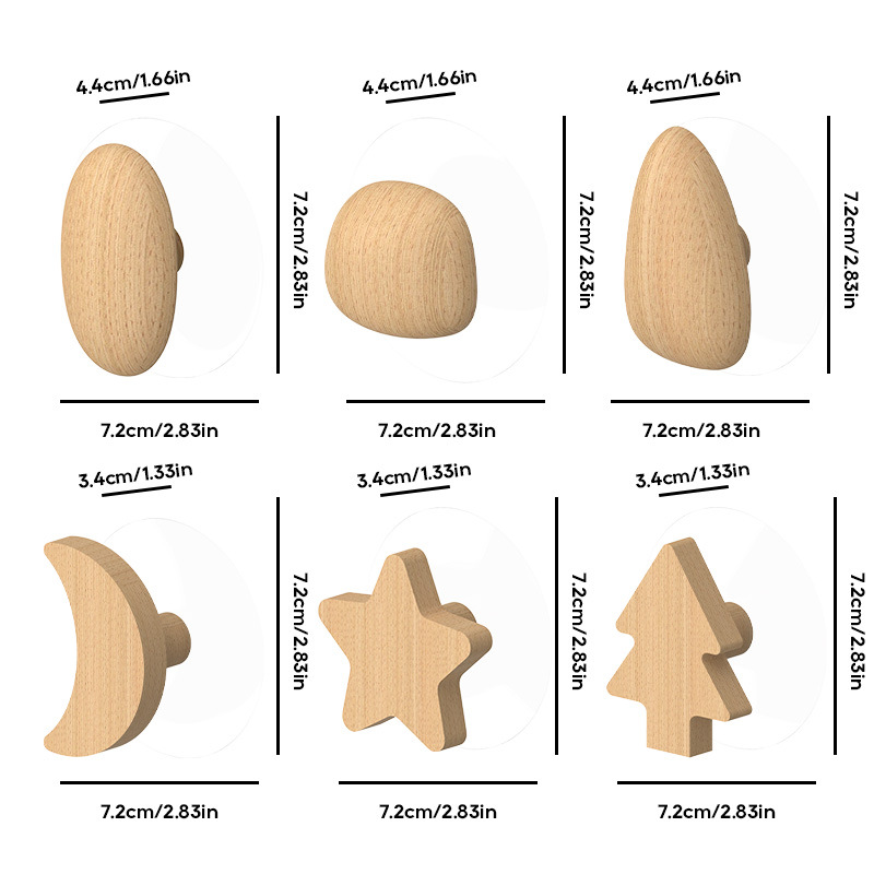 榉木孔抽屉拉手圆球方形卡通木头木质橱柜衣柜门儿童房木头挂钩