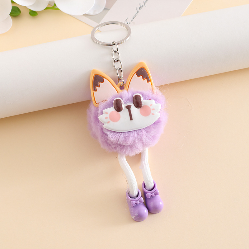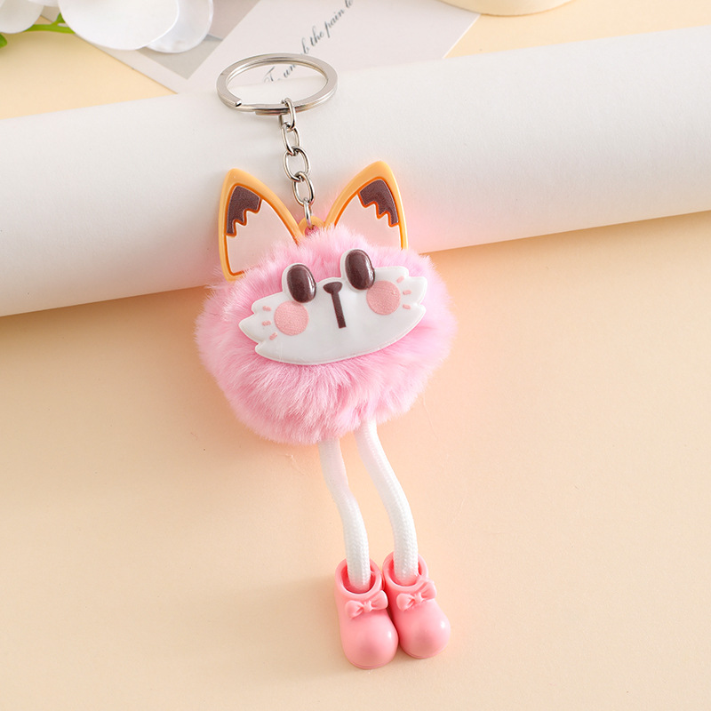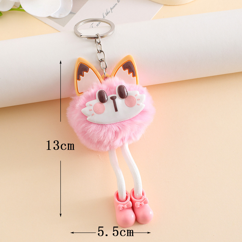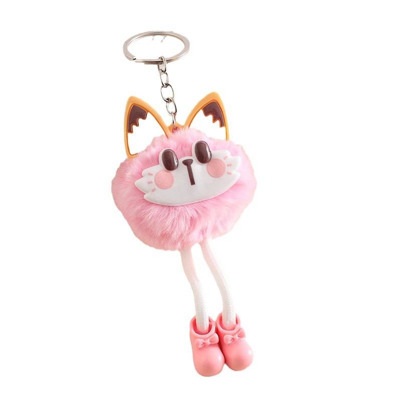 创意可爱招手猫钥匙扣毛球包挂件仿水貂毛球车钥匙链小礼品批发