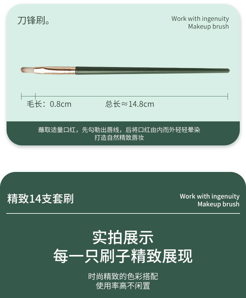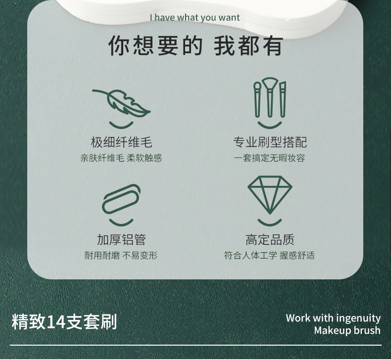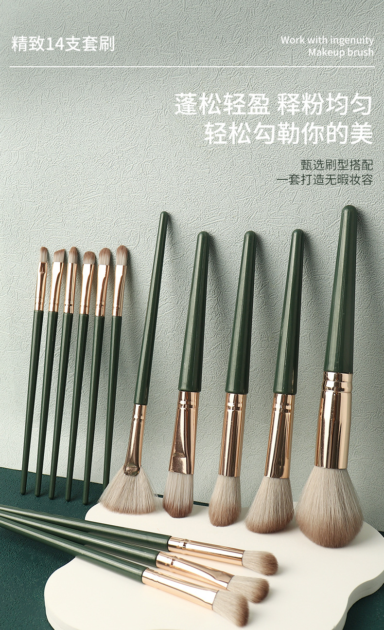 14支绿云化妆刷套装软毛美妆工具初学者散粉刷粉底刷腮红刷现货