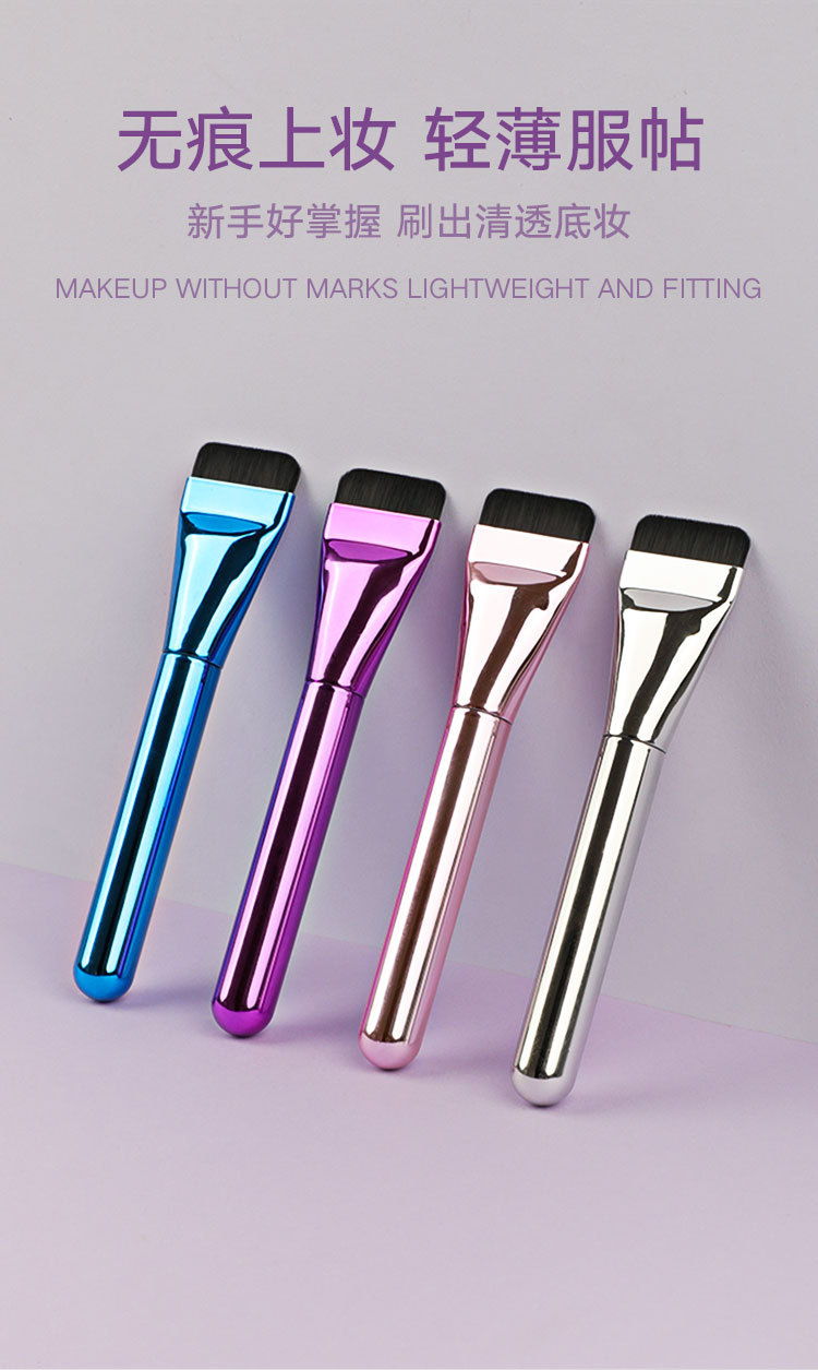 跨境粉底刷一字型超薄不吃粉软毛化妆刷单支无痕粉底刷平头刷美妆