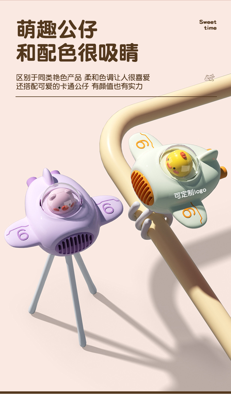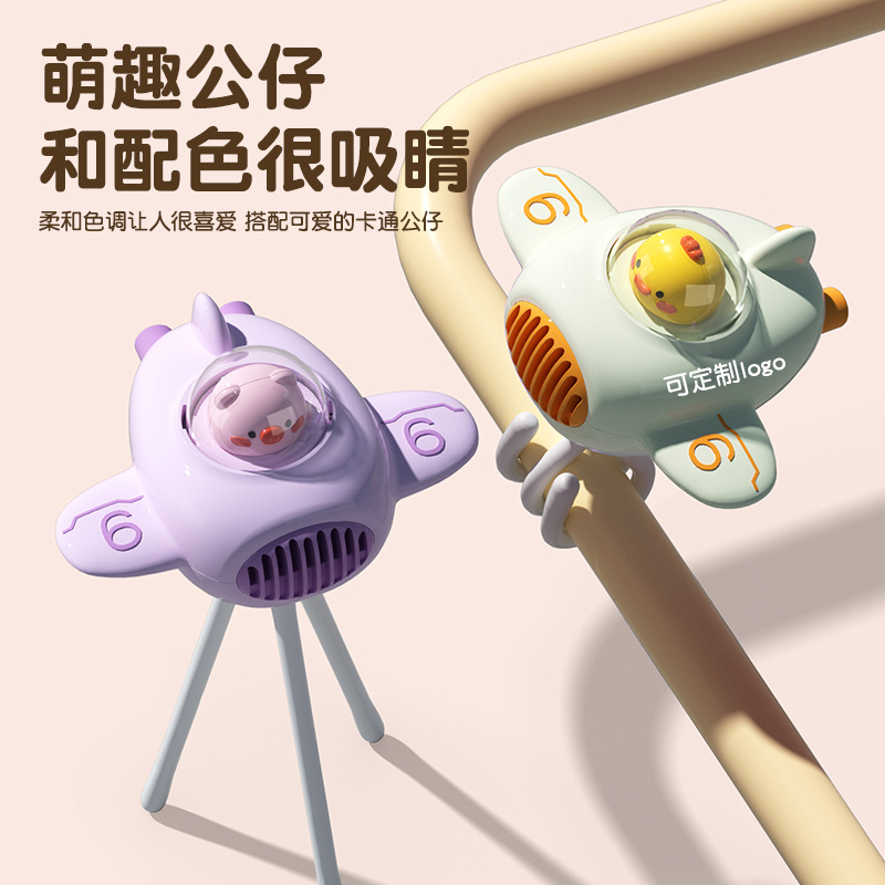 新款童趣公仔飞机造型婴儿车风扇可任意调节可手持桌面风扇批发