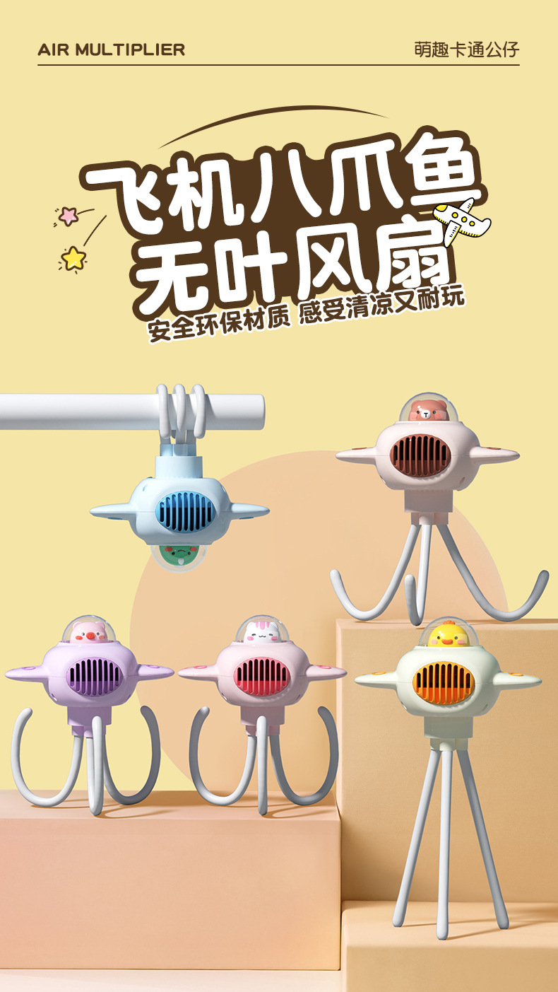 【产品名称】:萌趣飞机八爪鱼无叶风扇