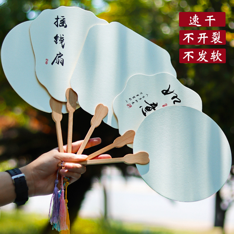 古风扇子漆扇空白扇面画纸团扇双面diy水彩绘国画书法复古工艺扇