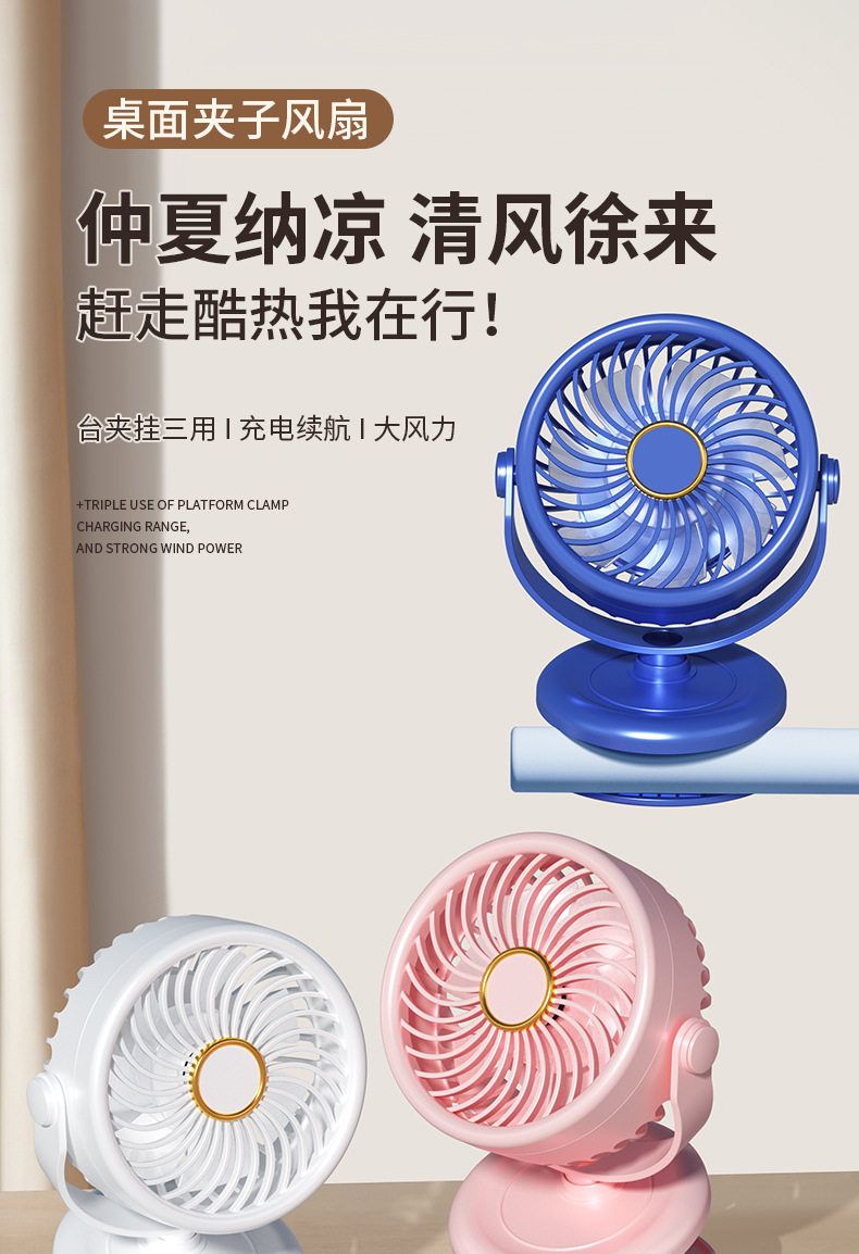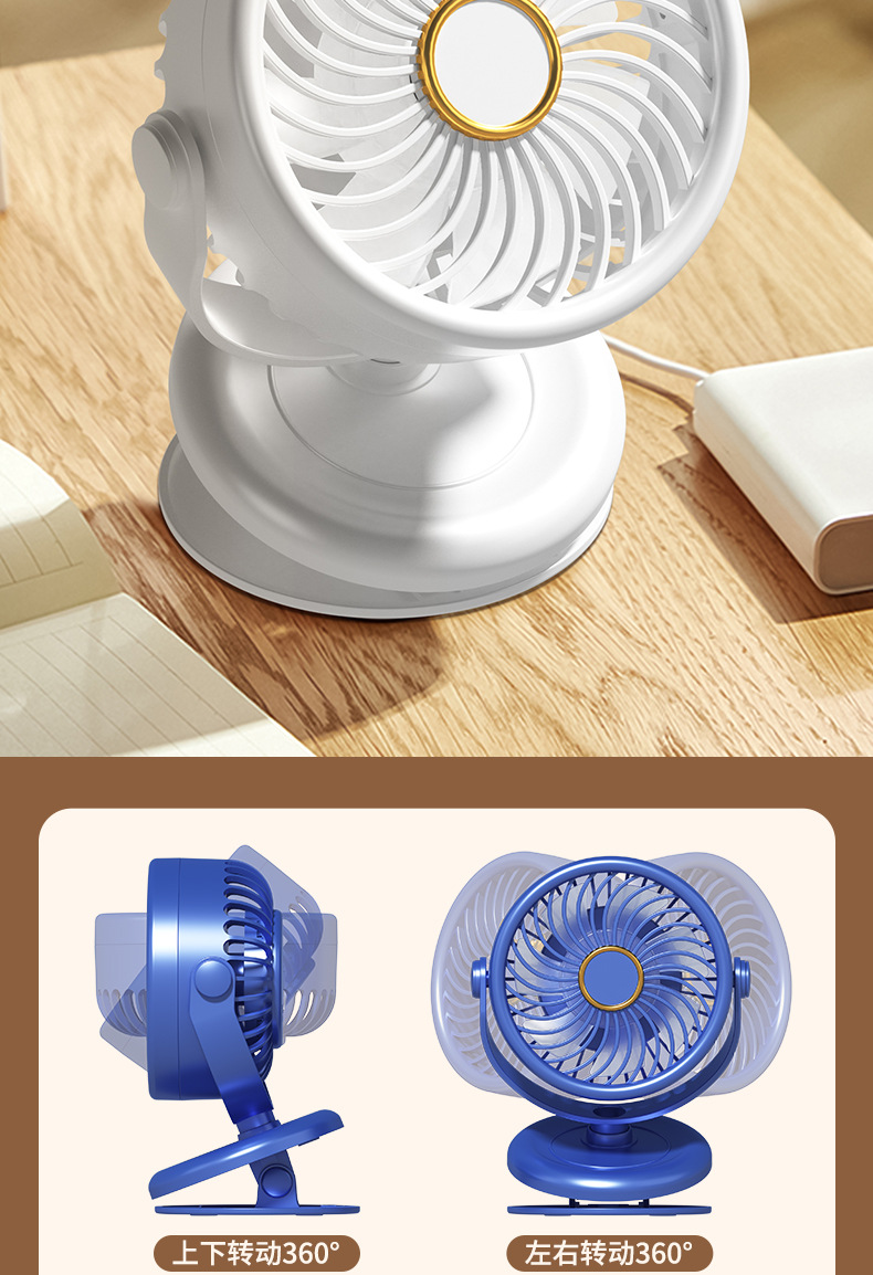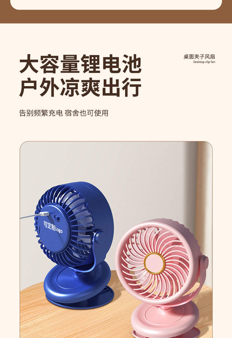 新款夹子小风扇usb充电式可360度桌面办公电风扇宿舍学生便携式