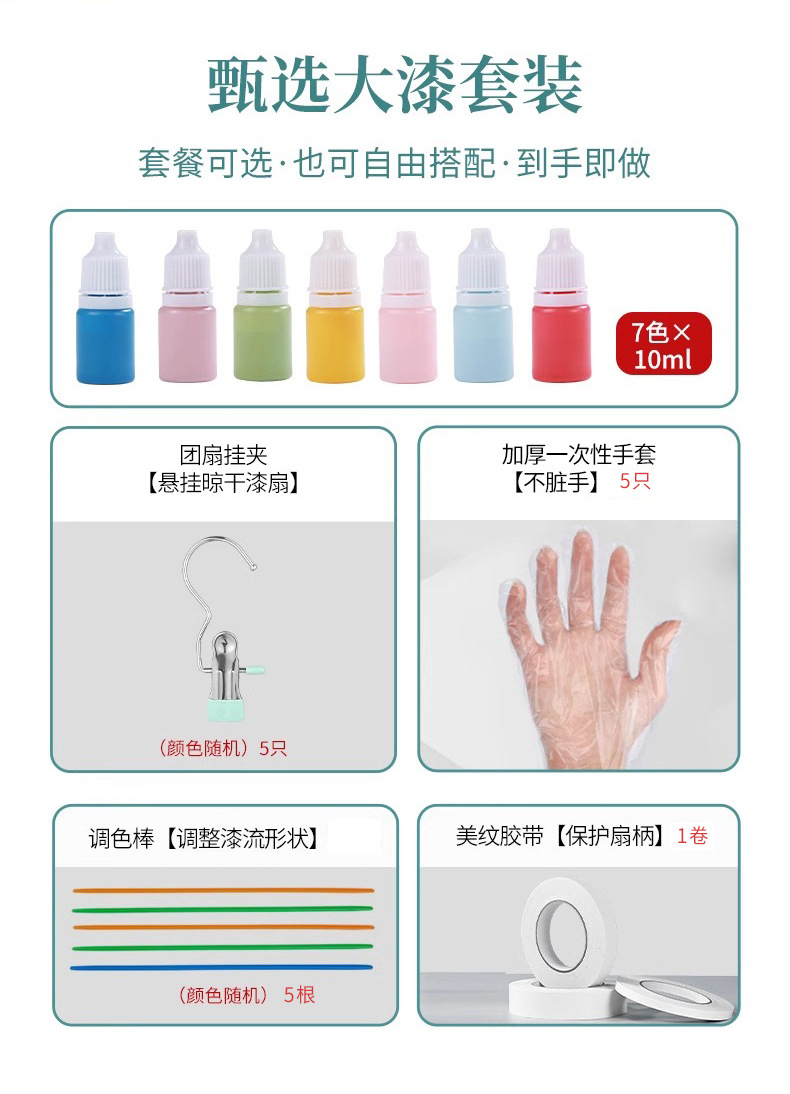 漆扇漂漆颜料套装材料包diy 专用天然大漆带字款扇子摆摊成品团扇