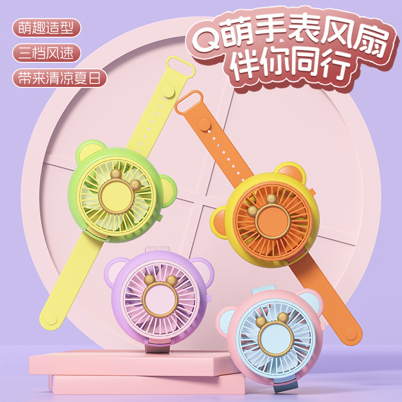 新品夏季创意卡通迷你手表风扇便携手袋儿童USB充电风扇风扇礼品