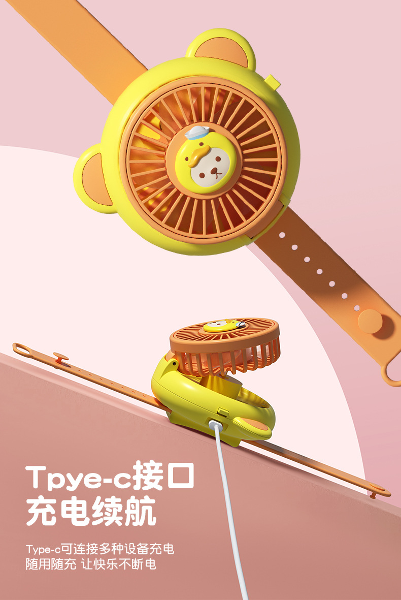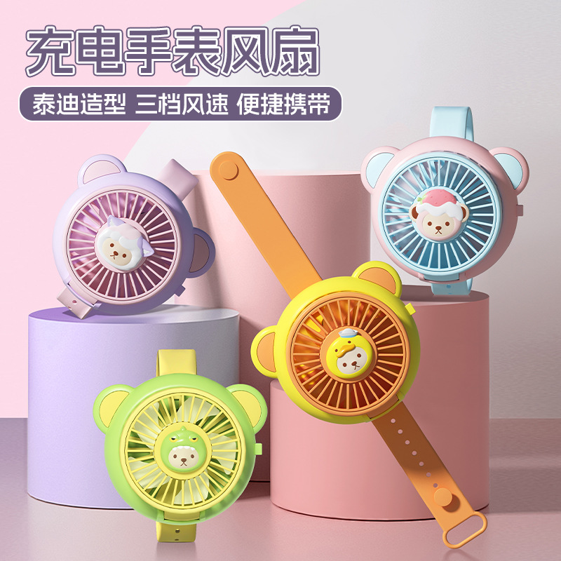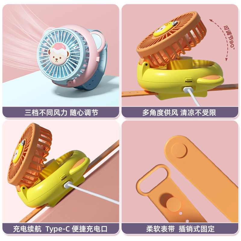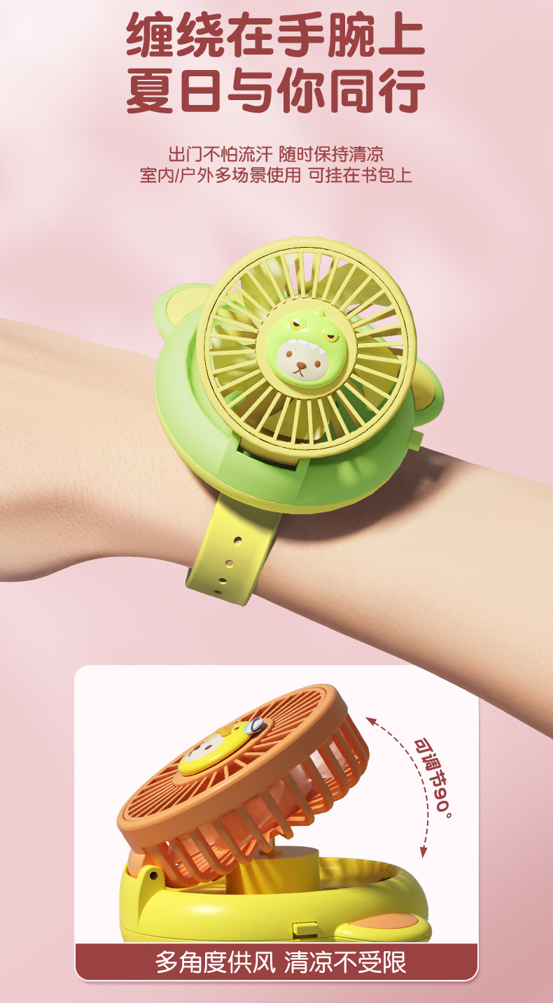 新品迷你卡通儿童小手表风扇学生夏季USB充电便携式风扇批发礼品
