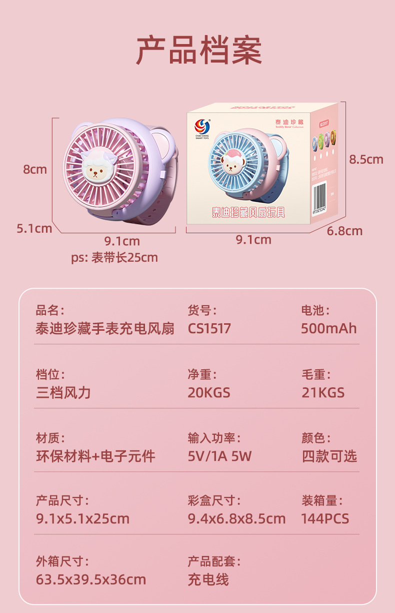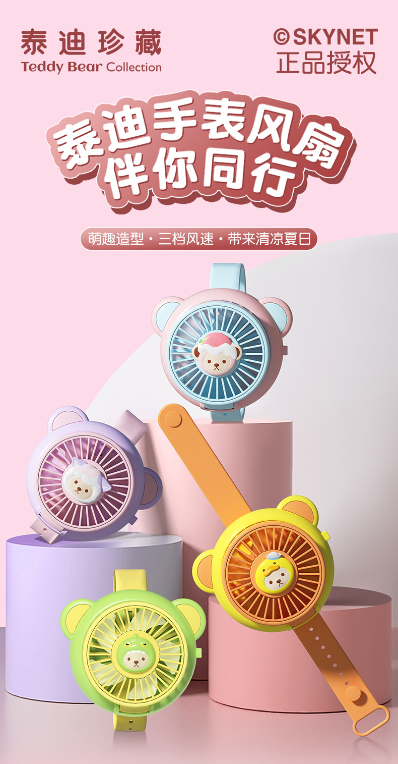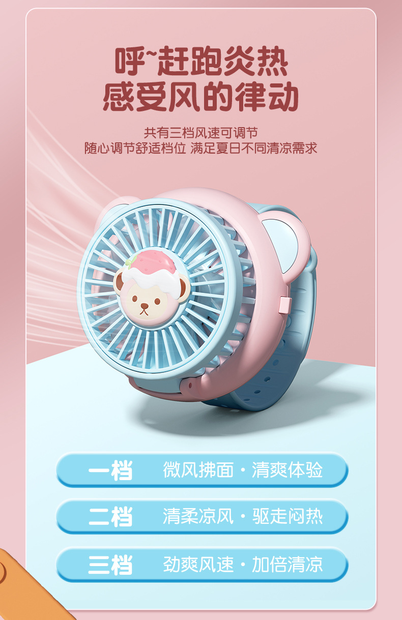 新品迷你卡通儿童小手表风扇学生夏季USB充电便携式风扇批发礼品