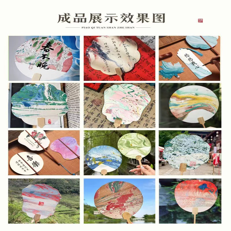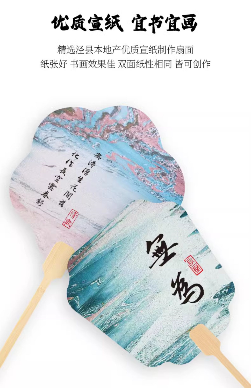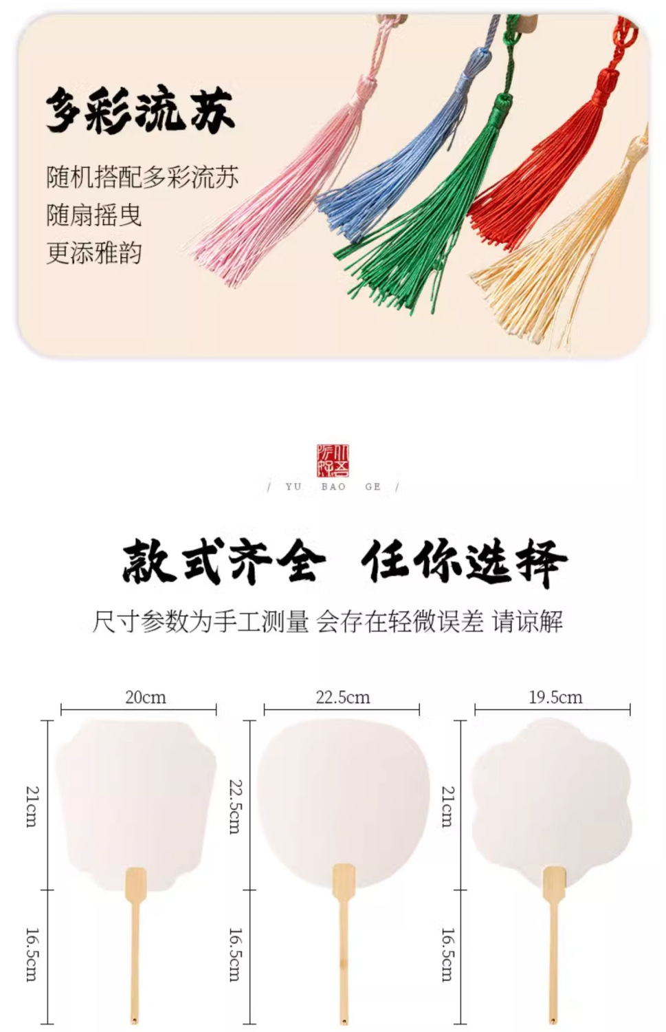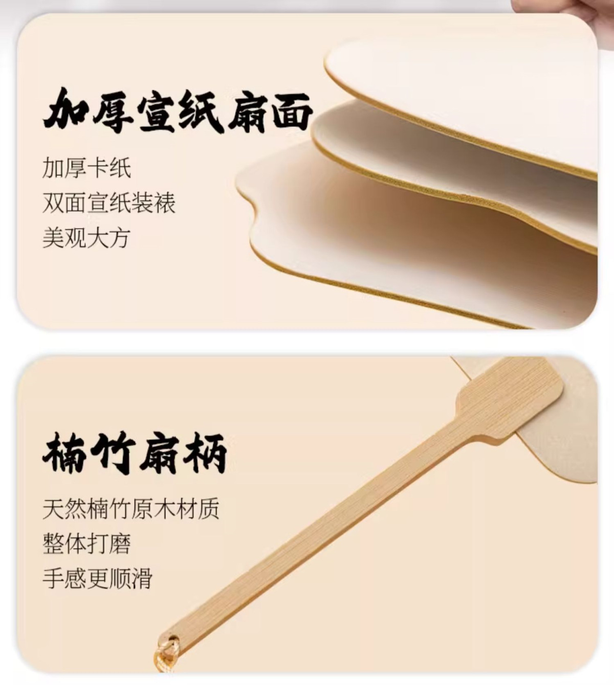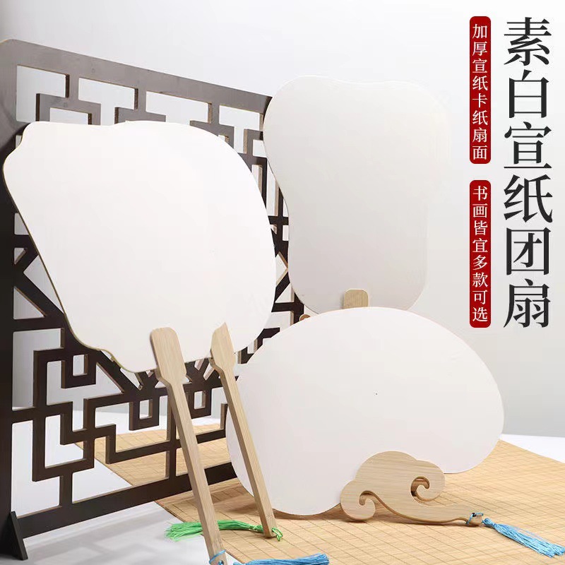 漆扇专用扇子diy漂漆材料包文字宣纸团扇带字款带图款空白大漆扇
