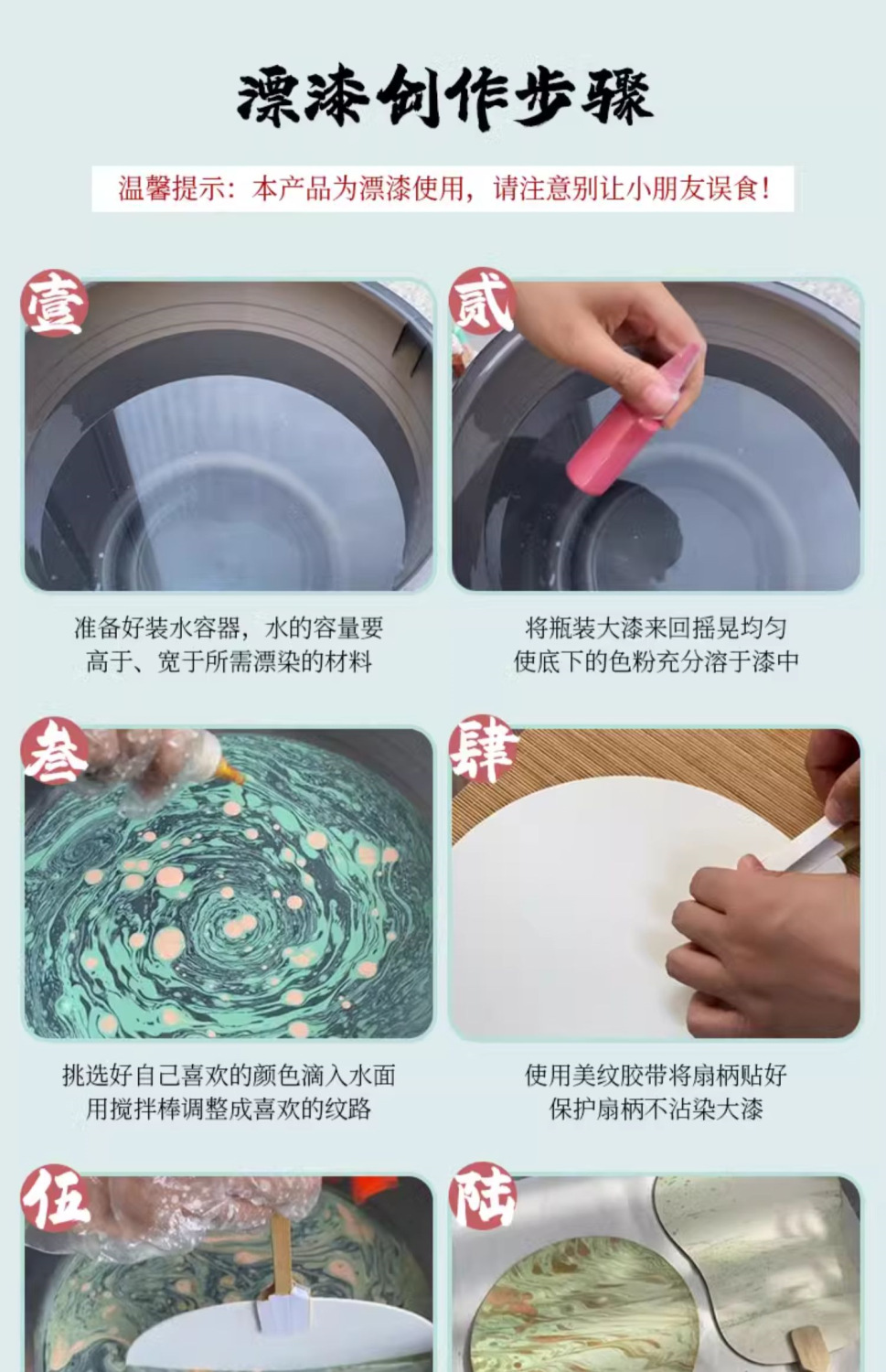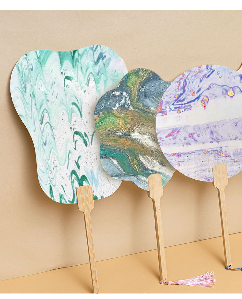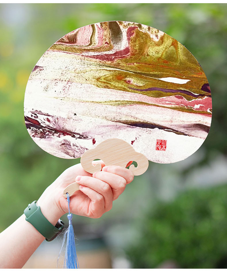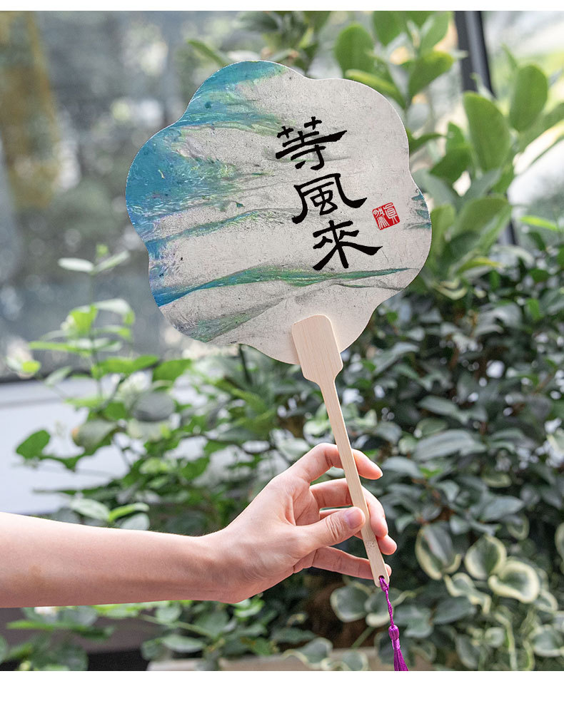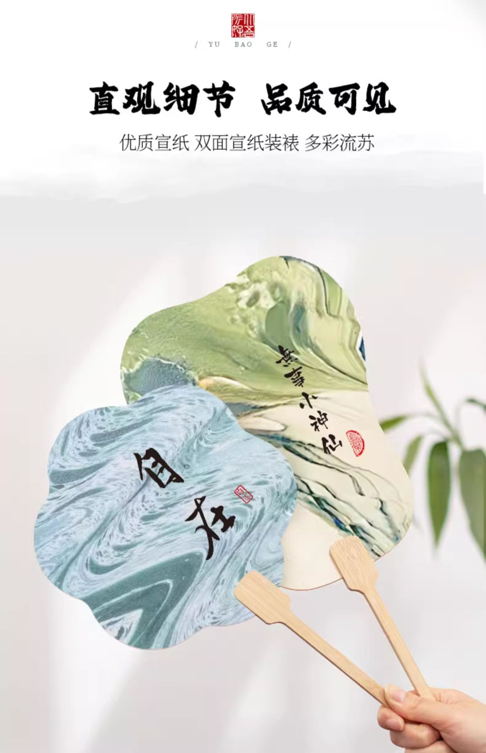 漆扇专用扇子diy漂漆材料包文字宣纸团扇带字款带图款空白大漆扇