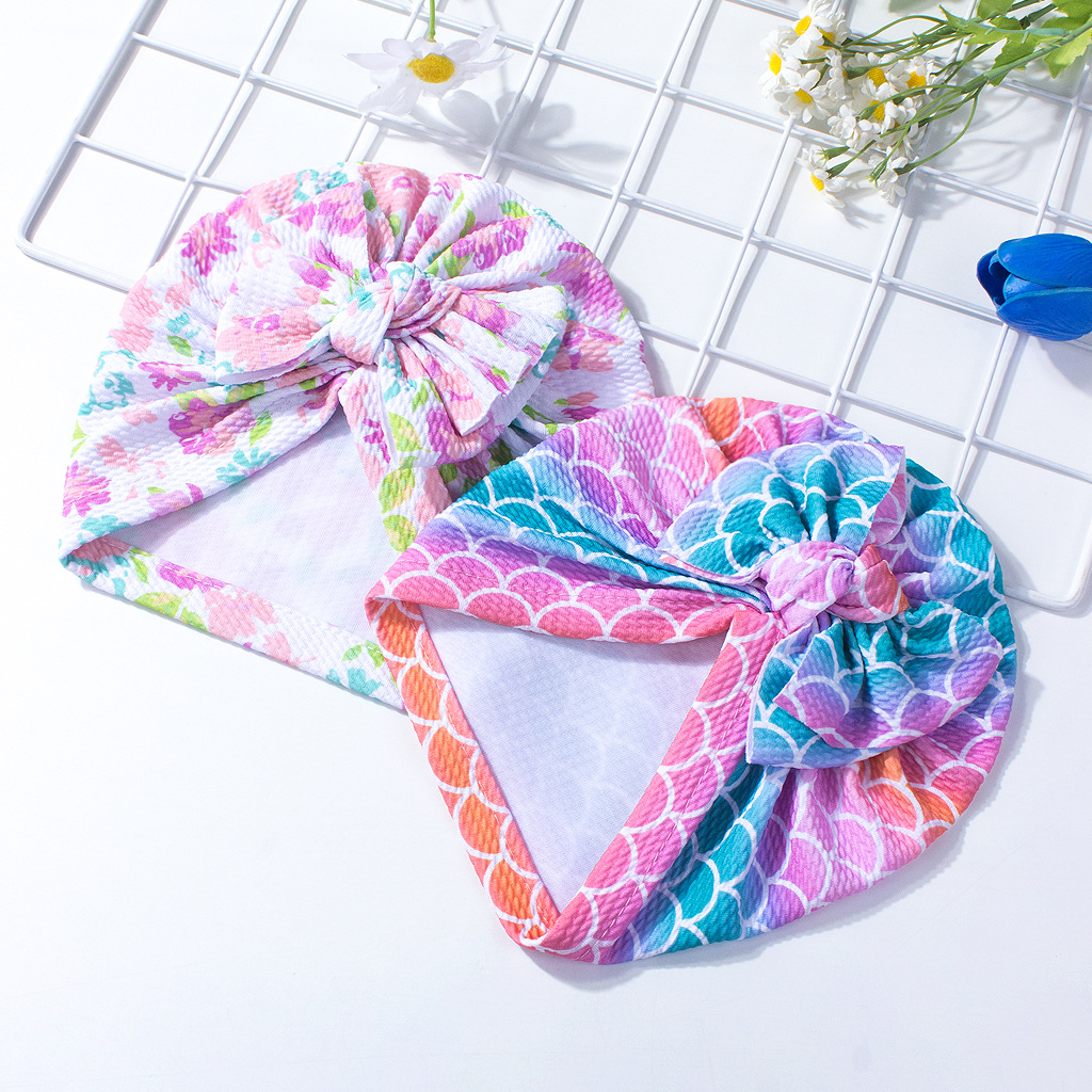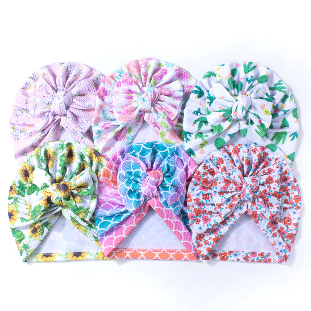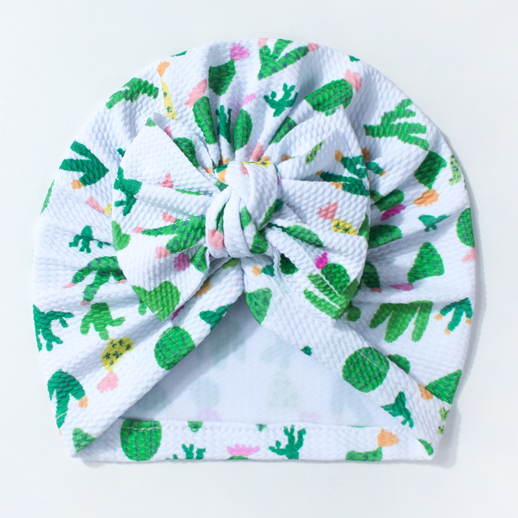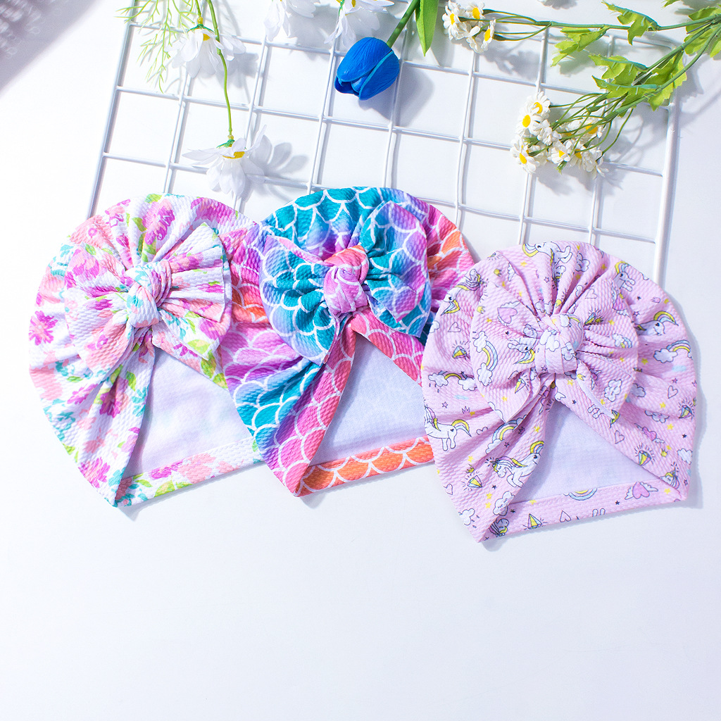 跨境新款宝宝帽子 欧美舒适印花蝴蝶结婴儿护囟门胎帽 儿童帽子