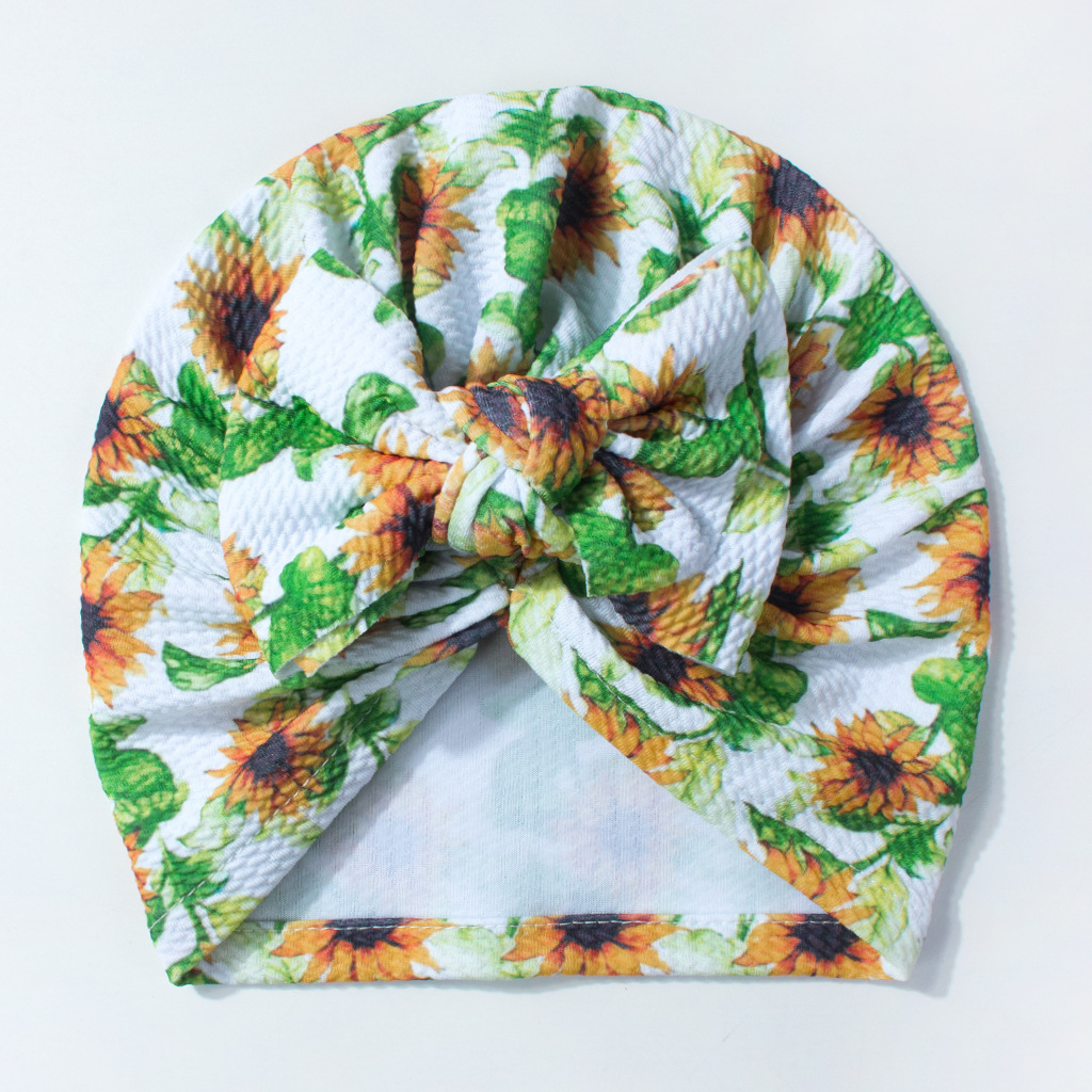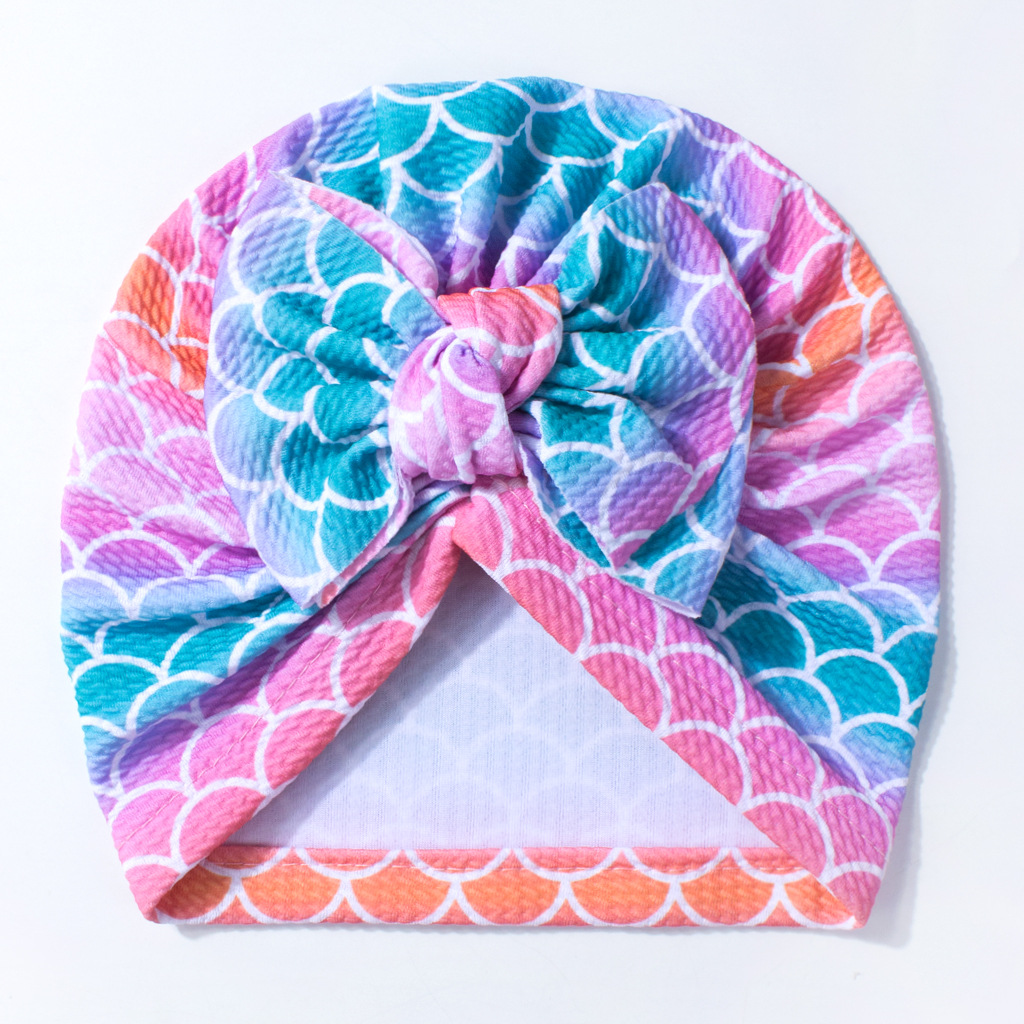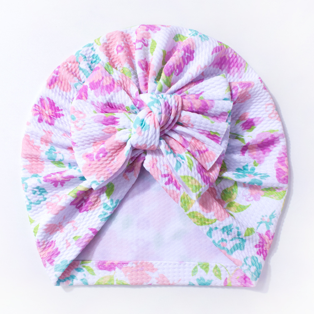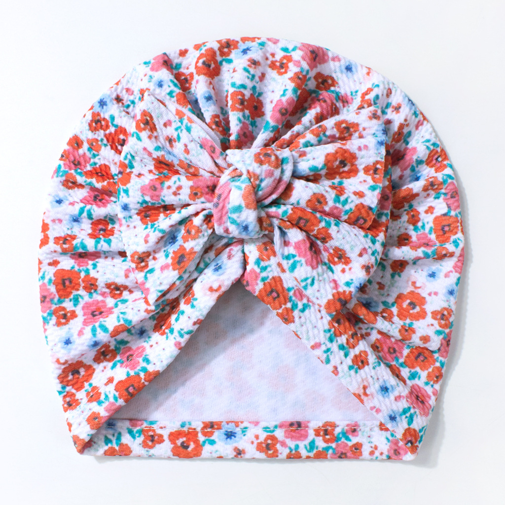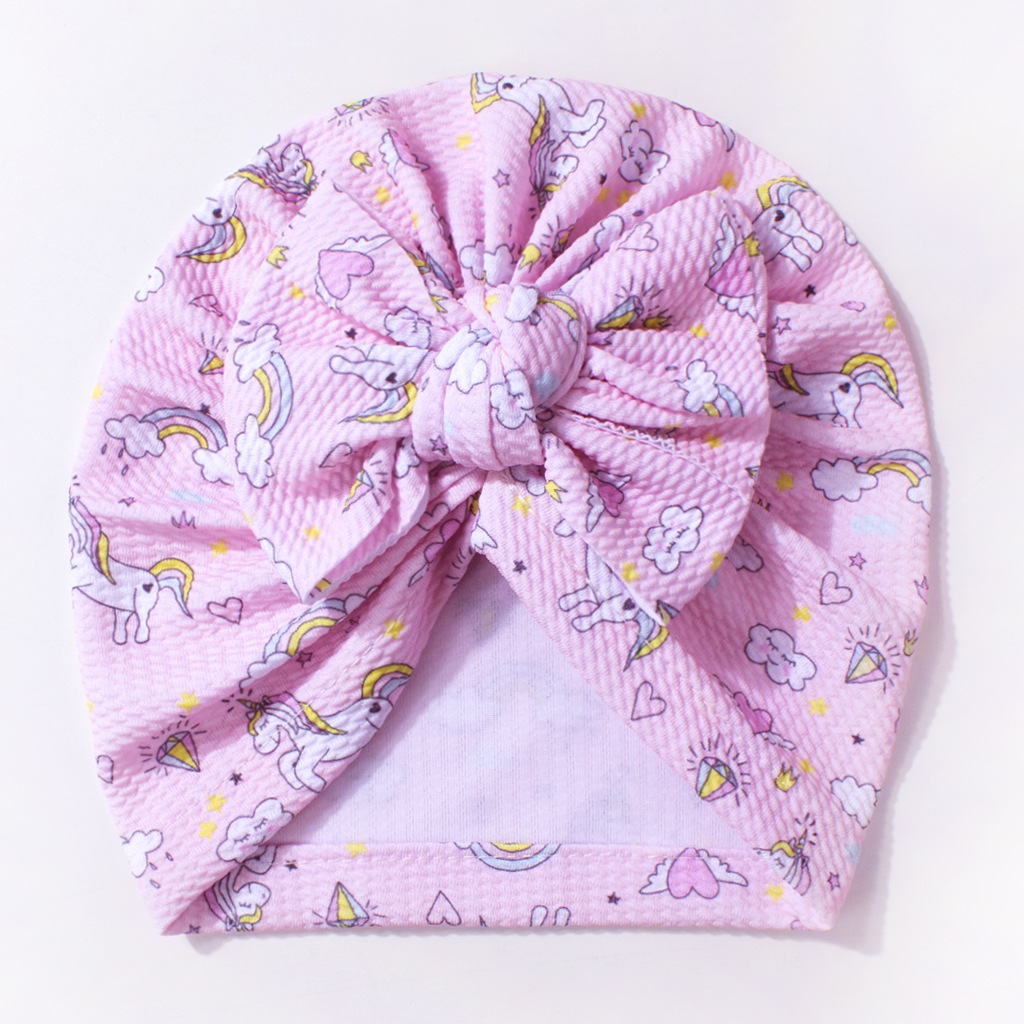 跨境新款宝宝帽子 欧美舒适印花蝴蝶结婴儿护囟门胎帽 儿童帽子