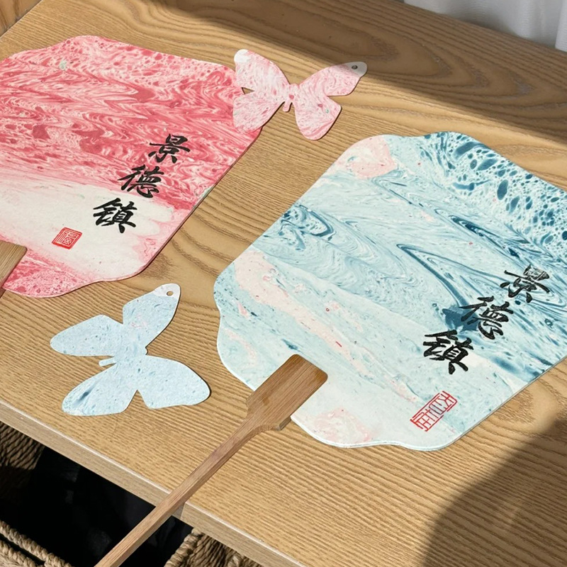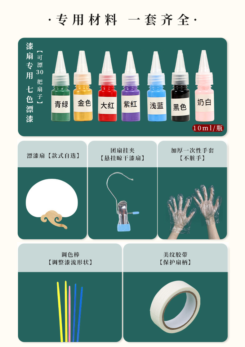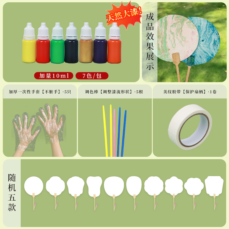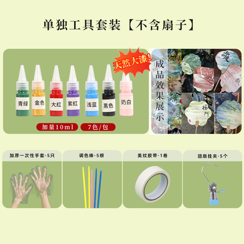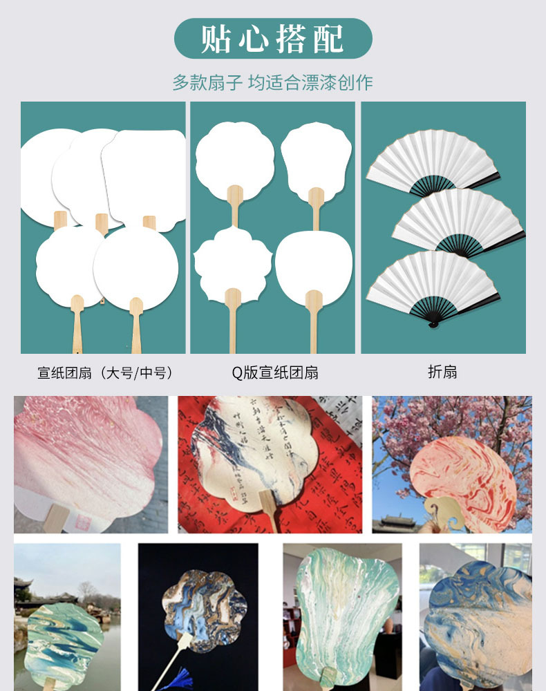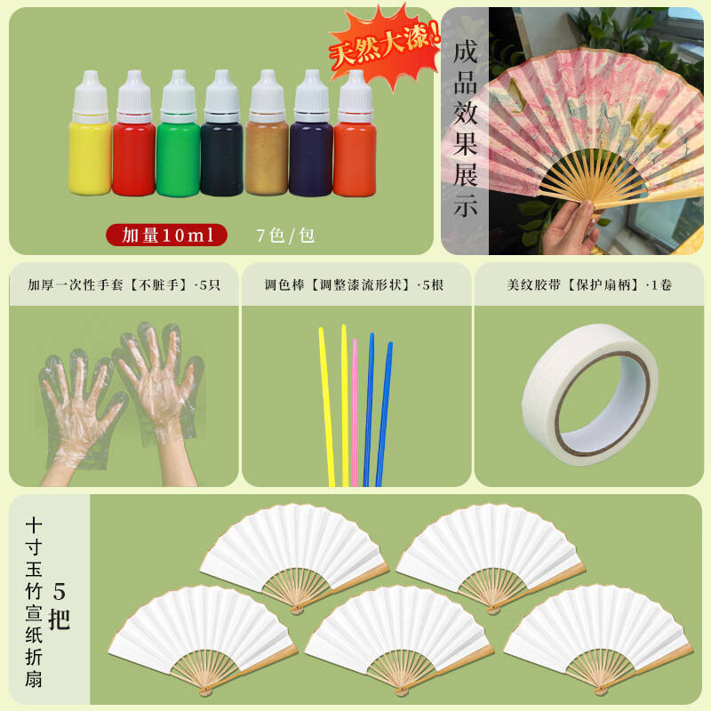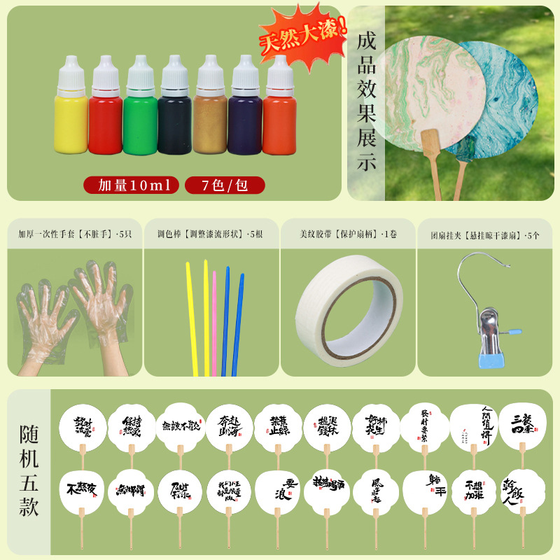 漆扇专用空白扇古风团扇漂漆材料包扇子颜料材料带字款漆扇批发