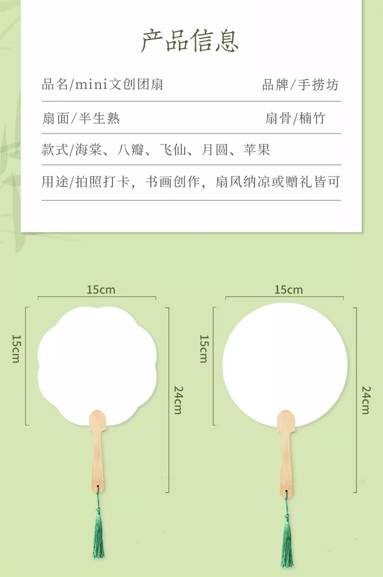 漆扇套装迷你团扇空白宣纸MINI加厚古风书法漂漆绘画扇子大漆专用
