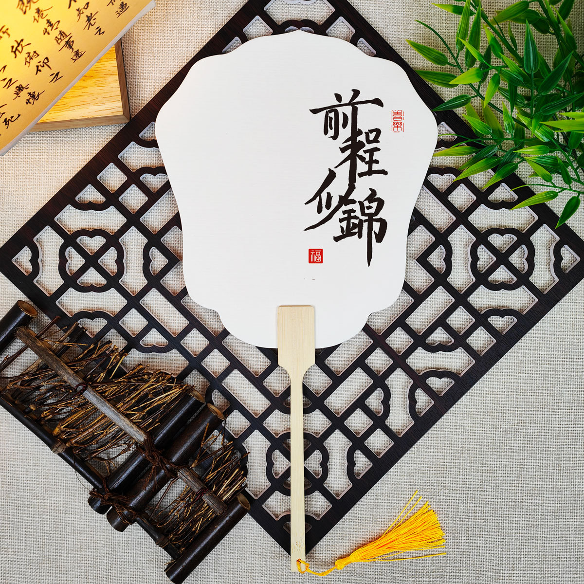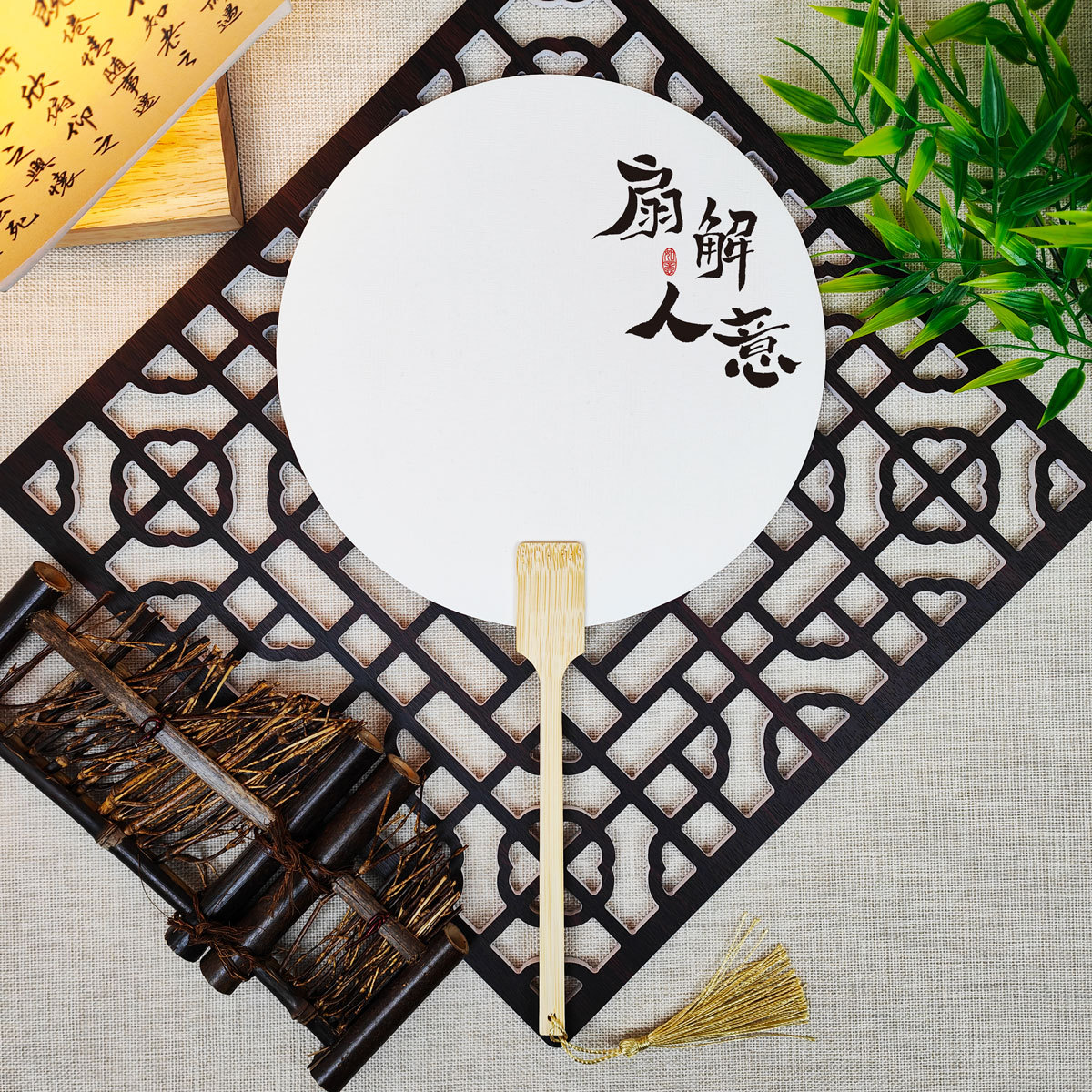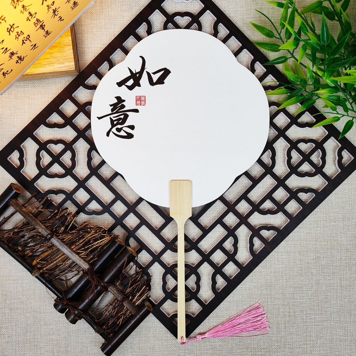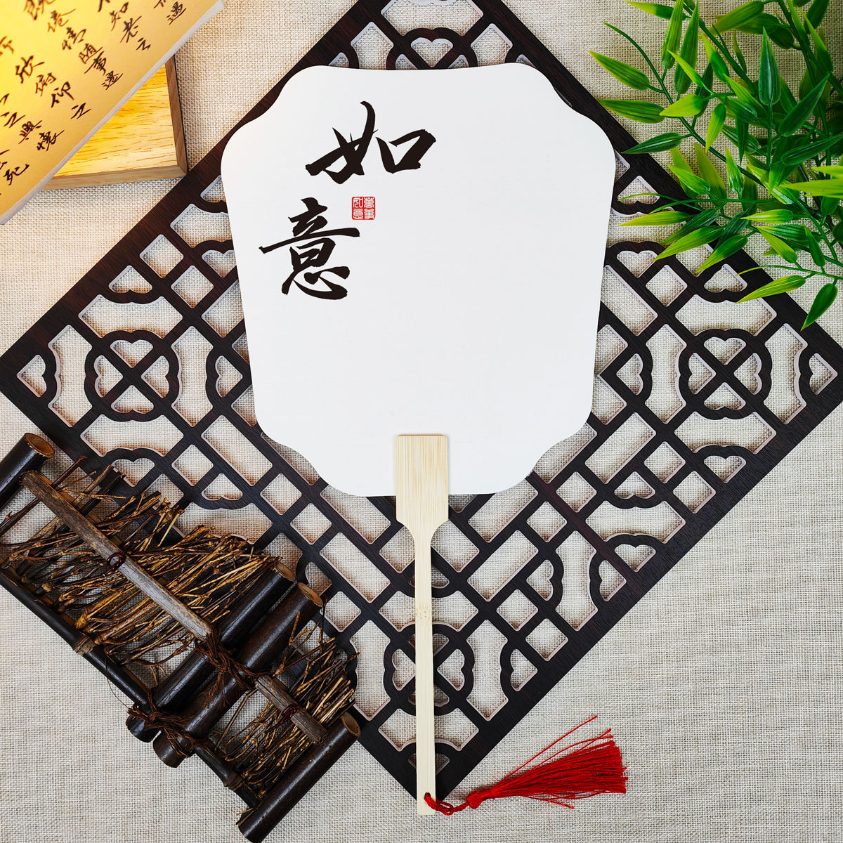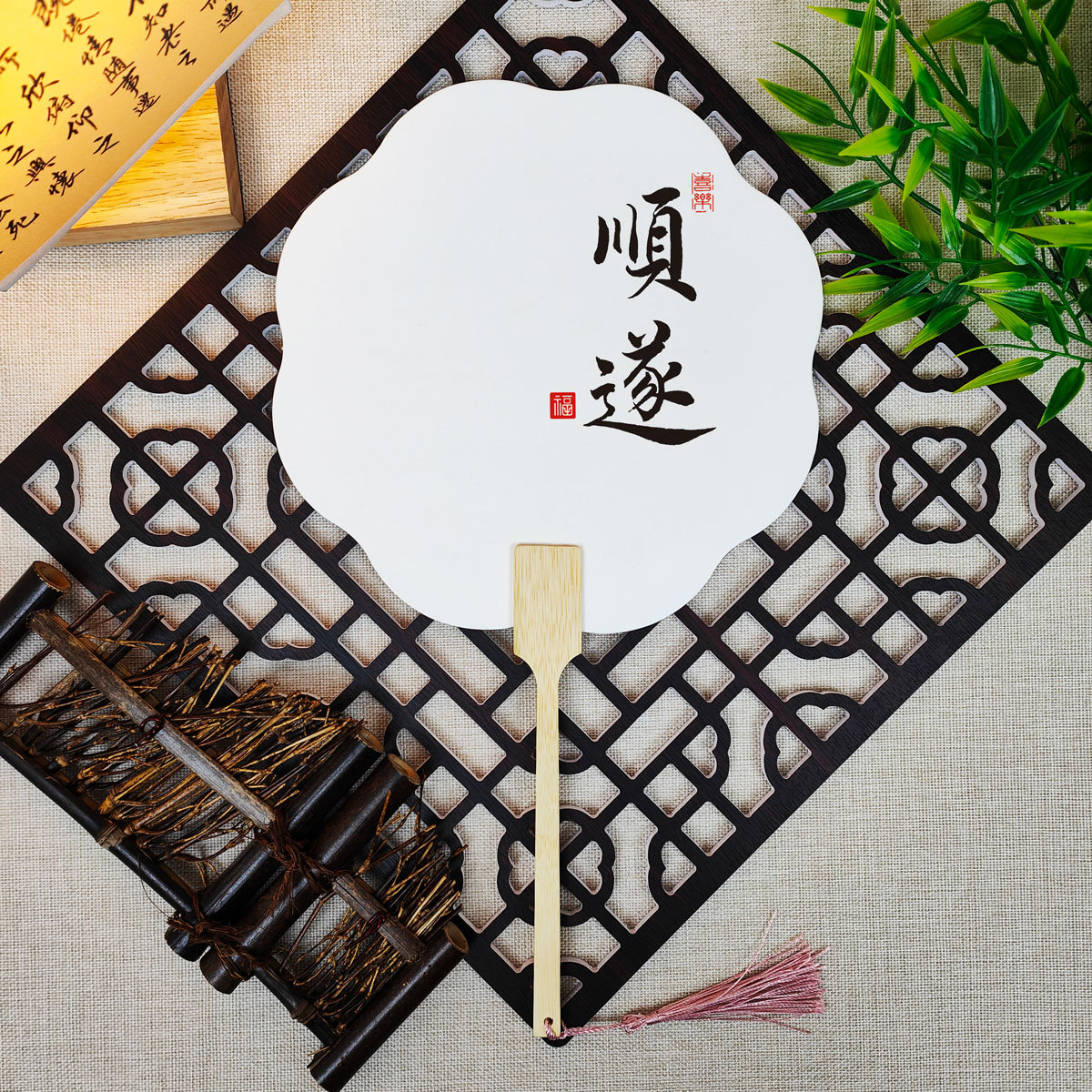 漆扇定制带字加厚团扇半生国风手绘扇子全白手绘水墨写意古风扇面