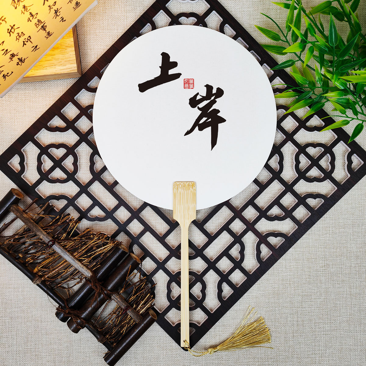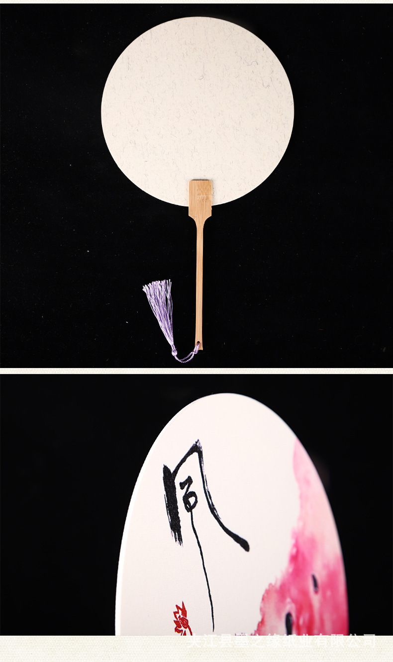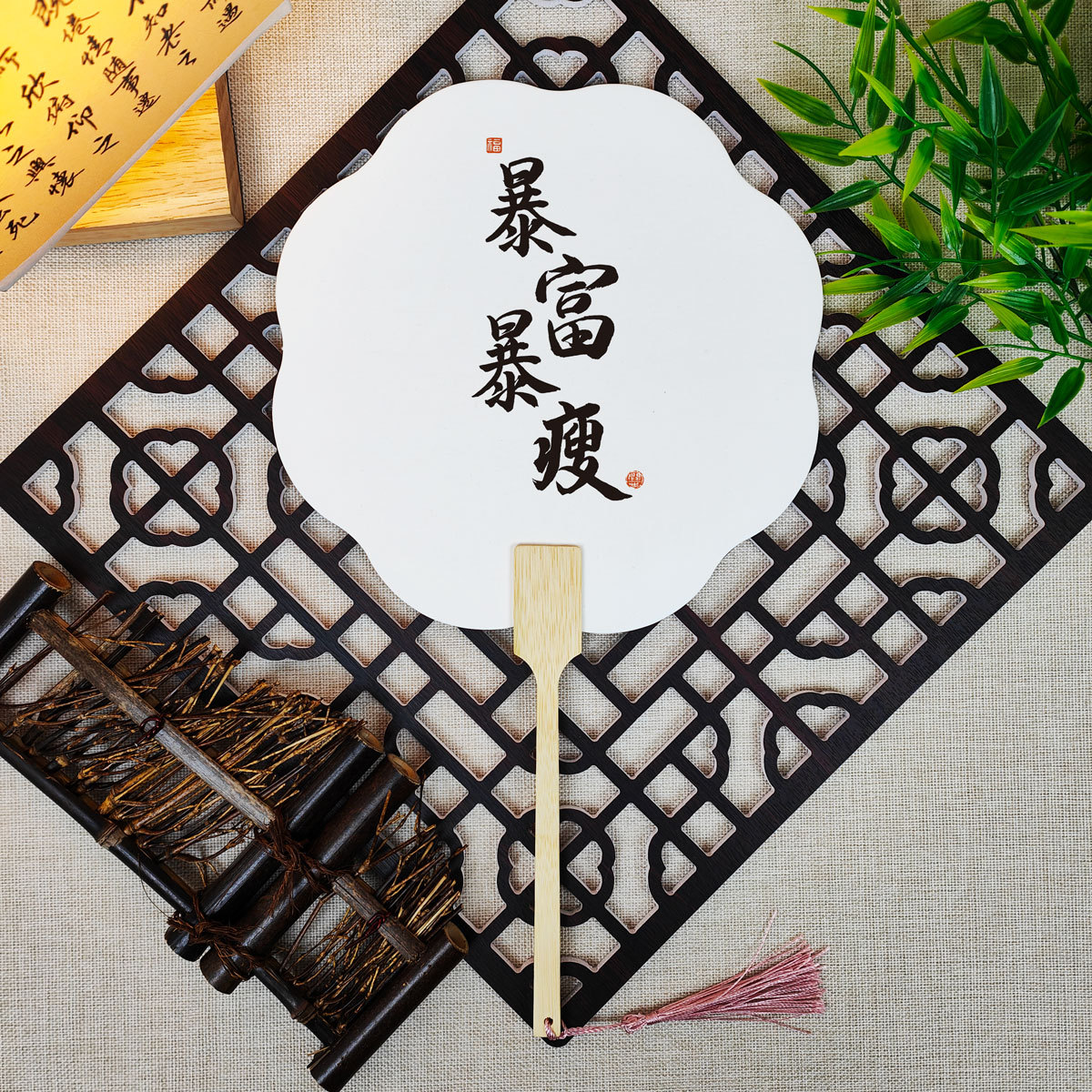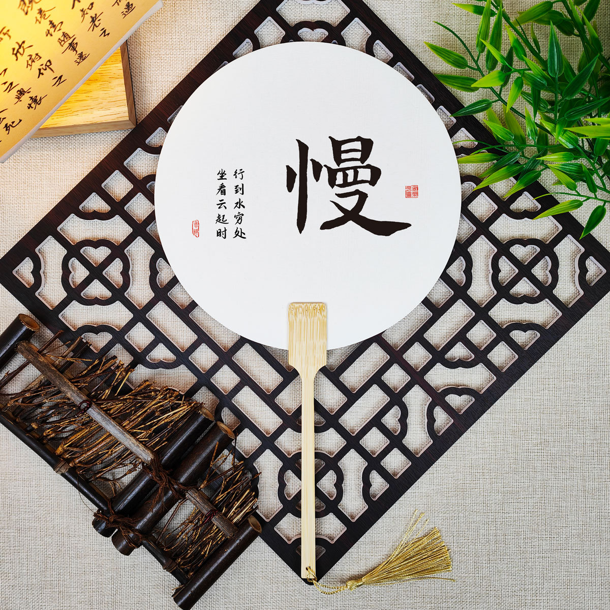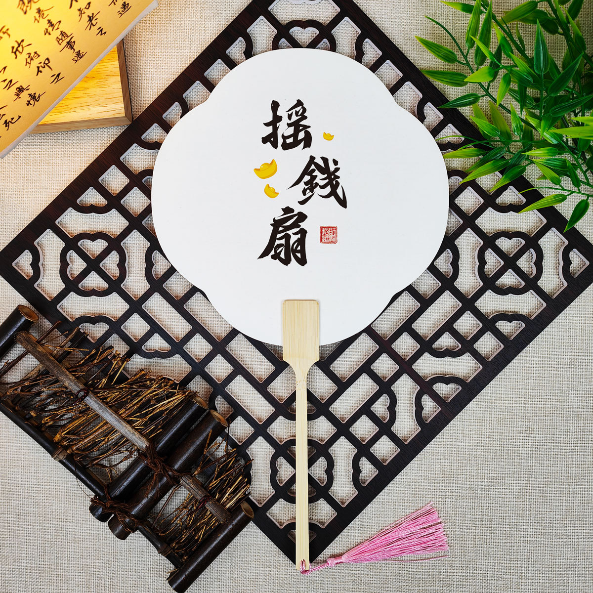 漆扇定制带字加厚团扇半生国风手绘扇子全白手绘水墨写意古风扇面