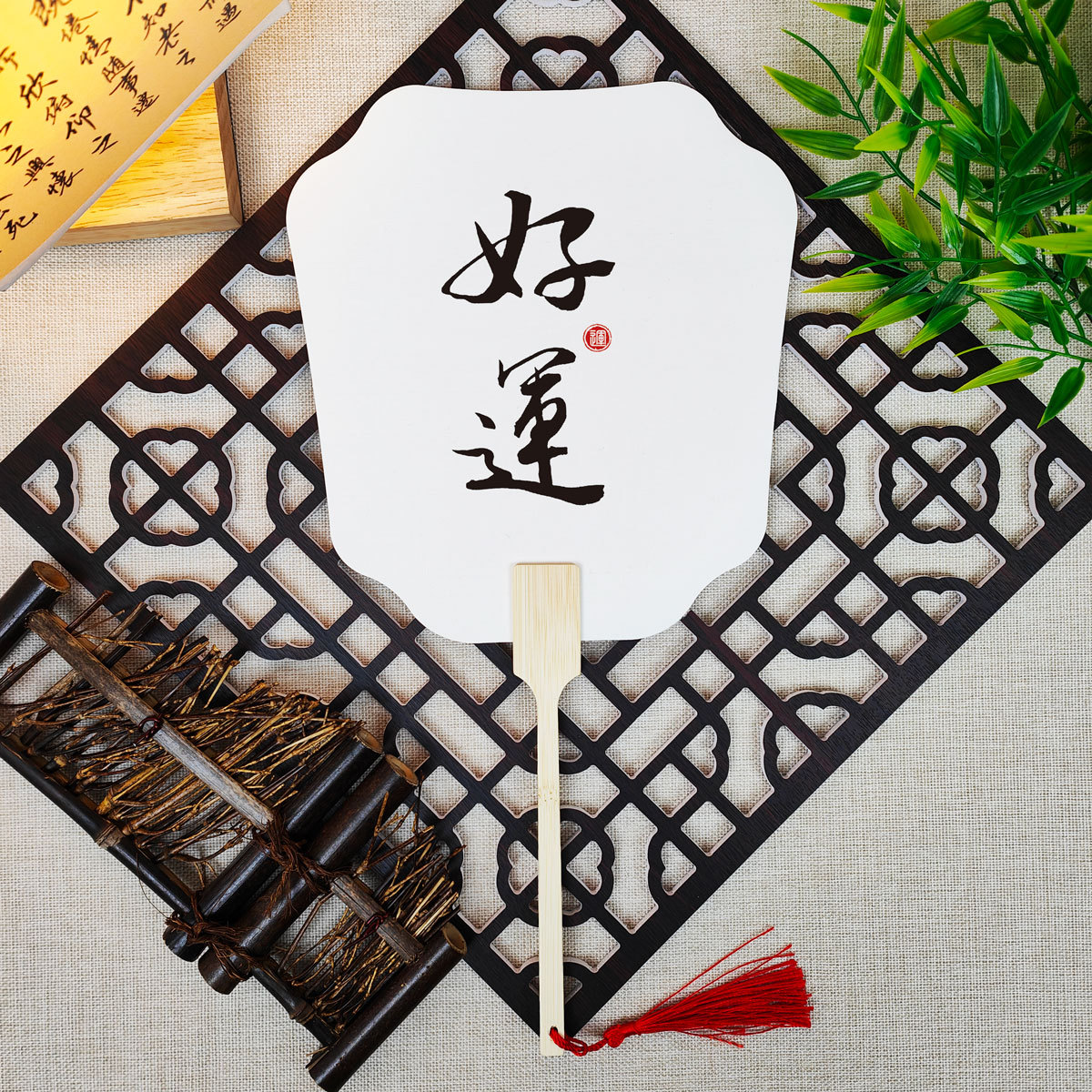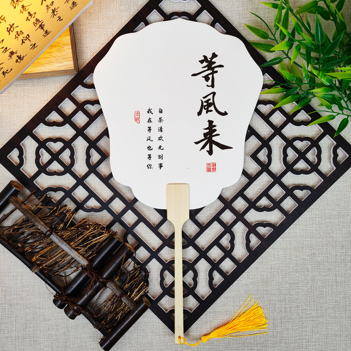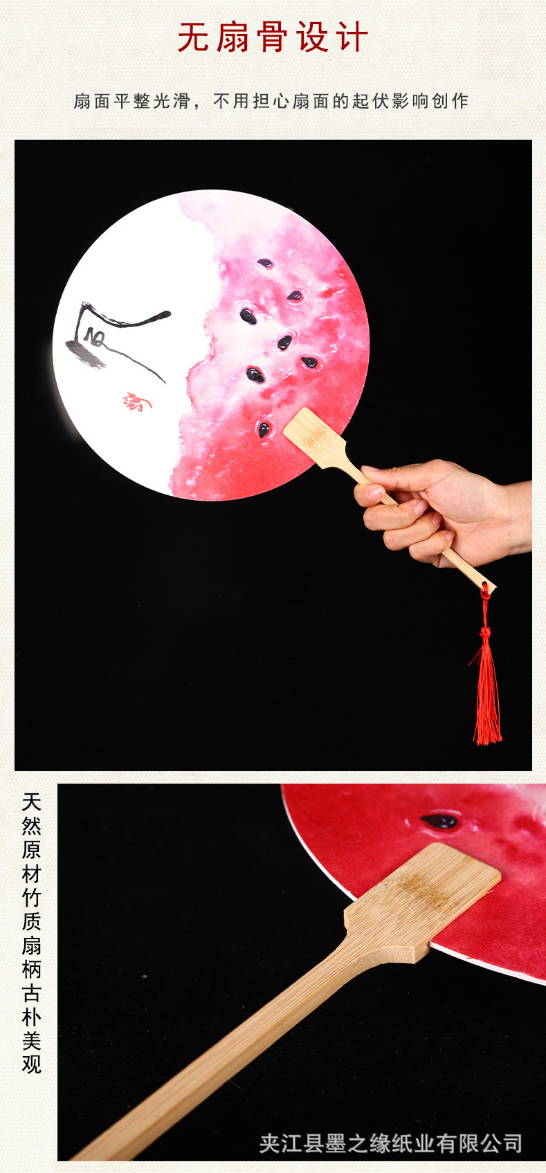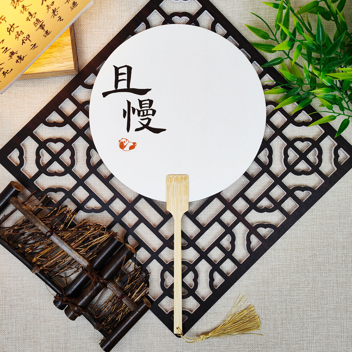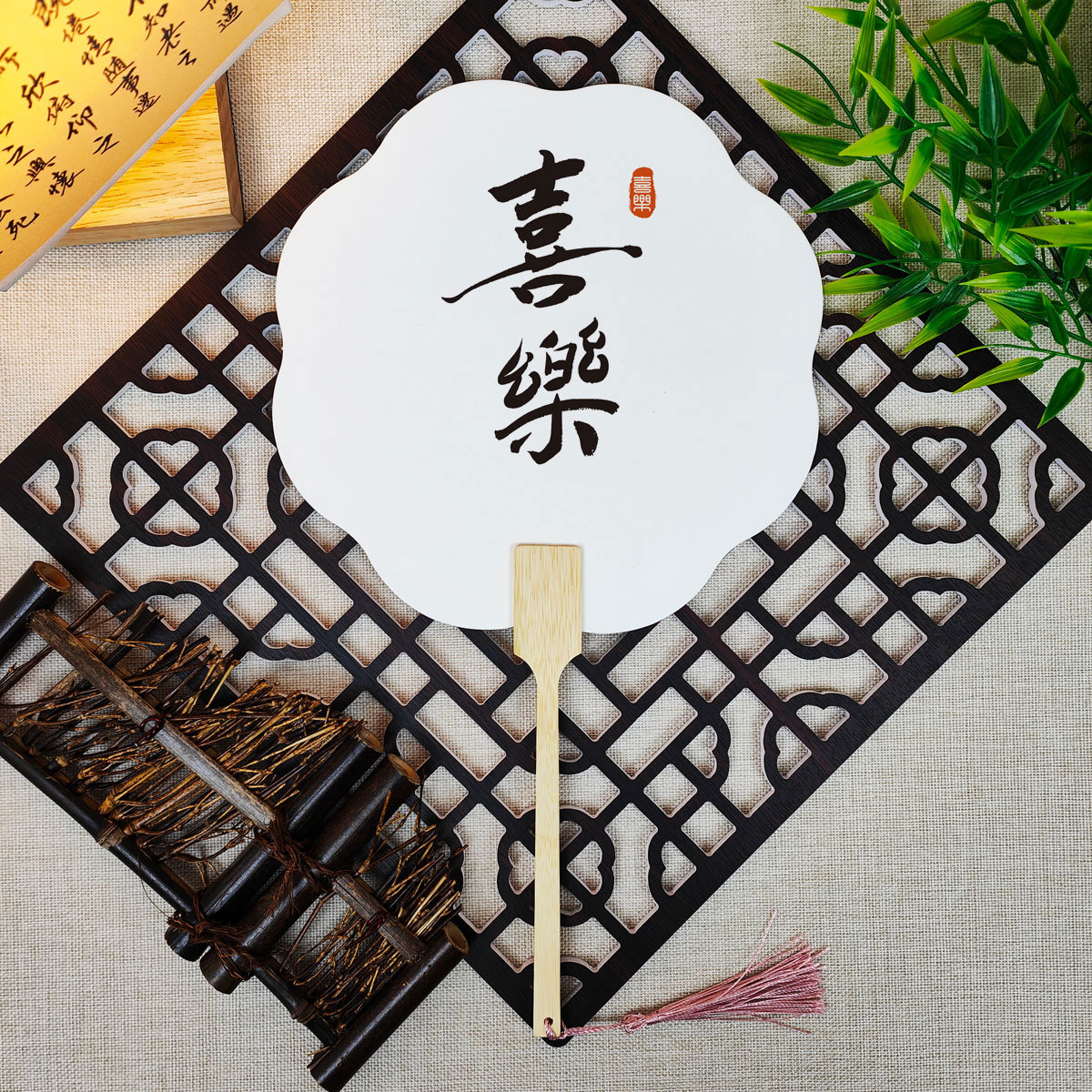 漆扇定制带字加厚团扇半生国风手绘扇子全白手绘水墨写意古风扇面