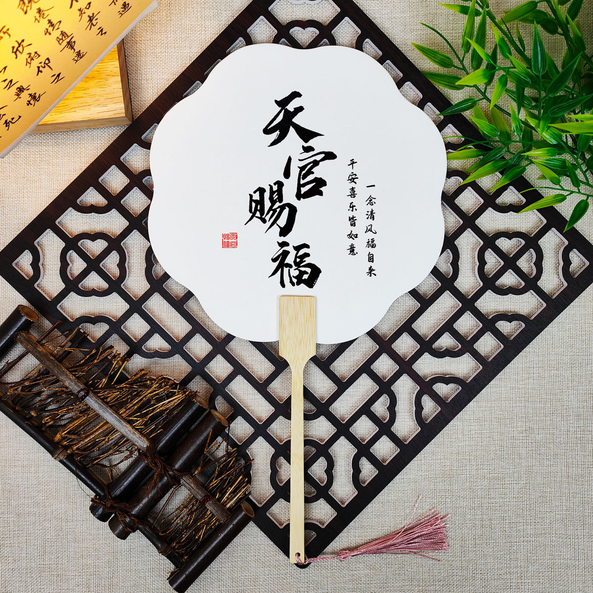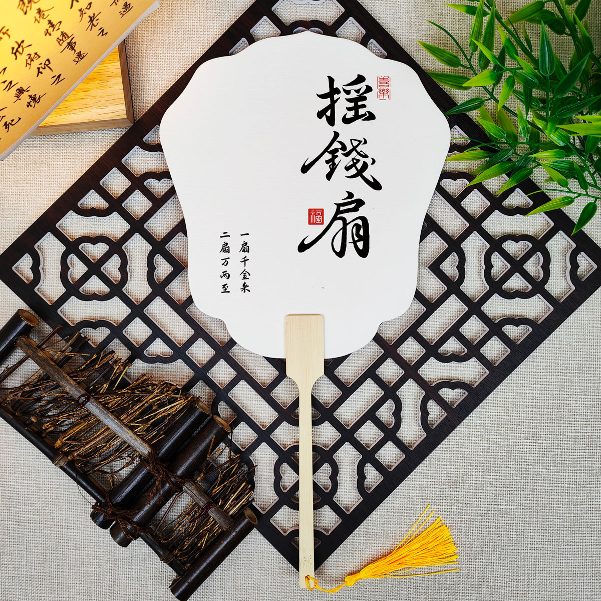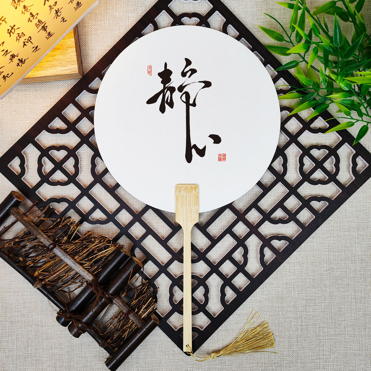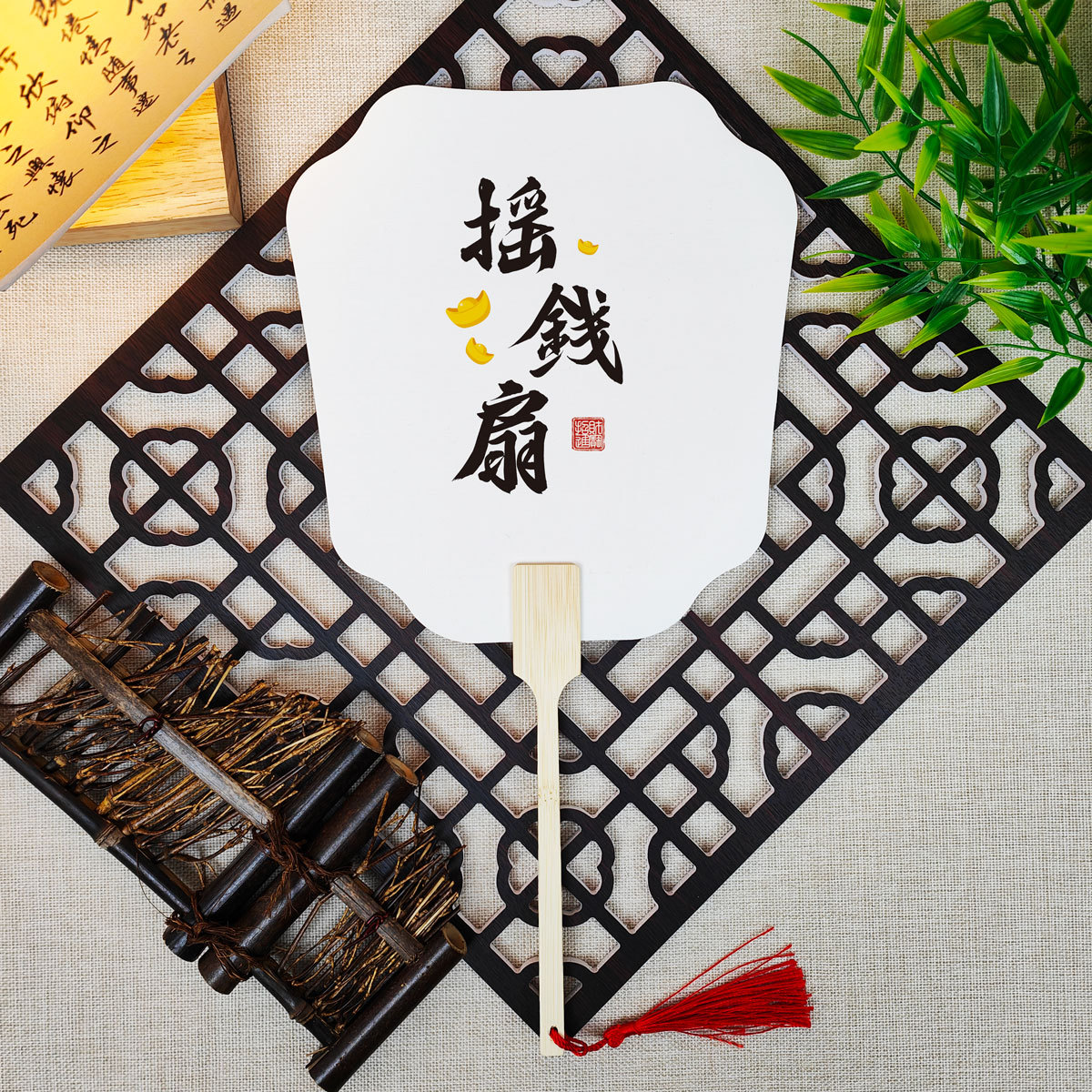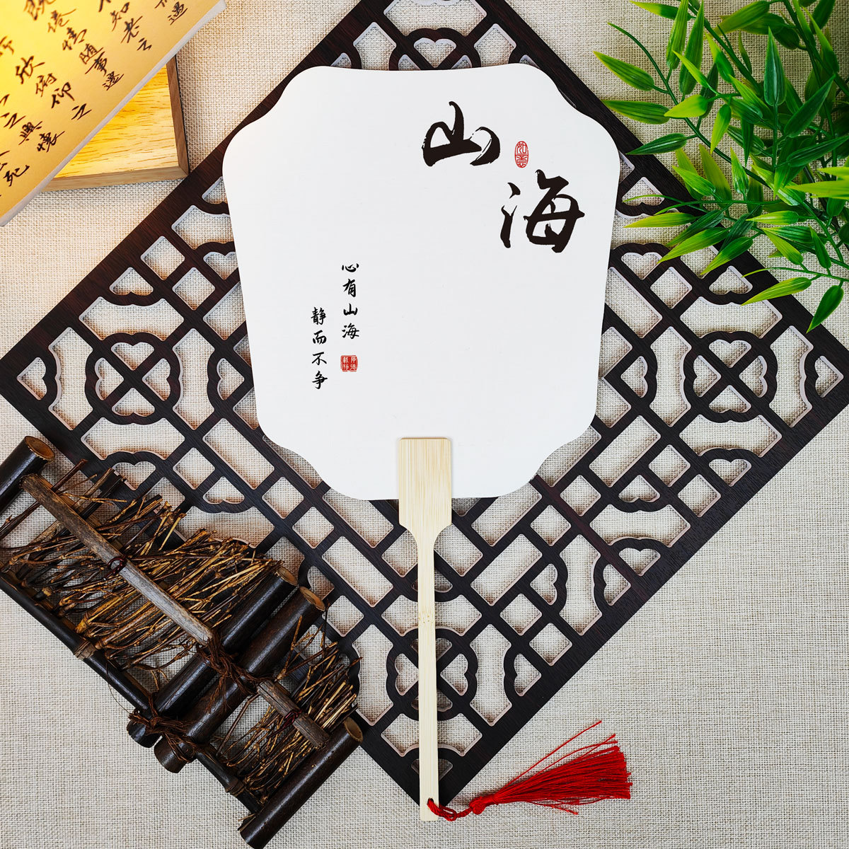 漆扇定制带字加厚团扇半生国风手绘扇子全白手绘水墨写意古风扇面