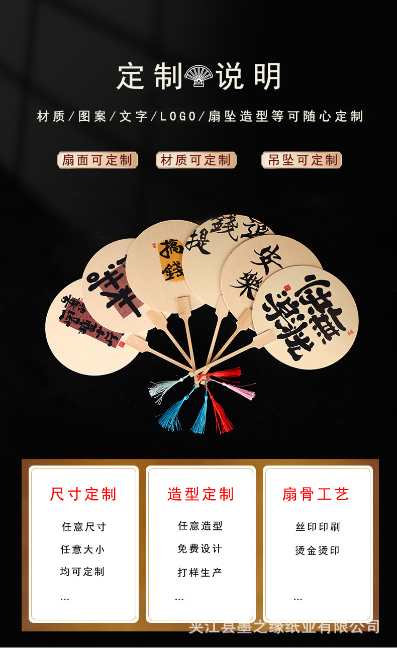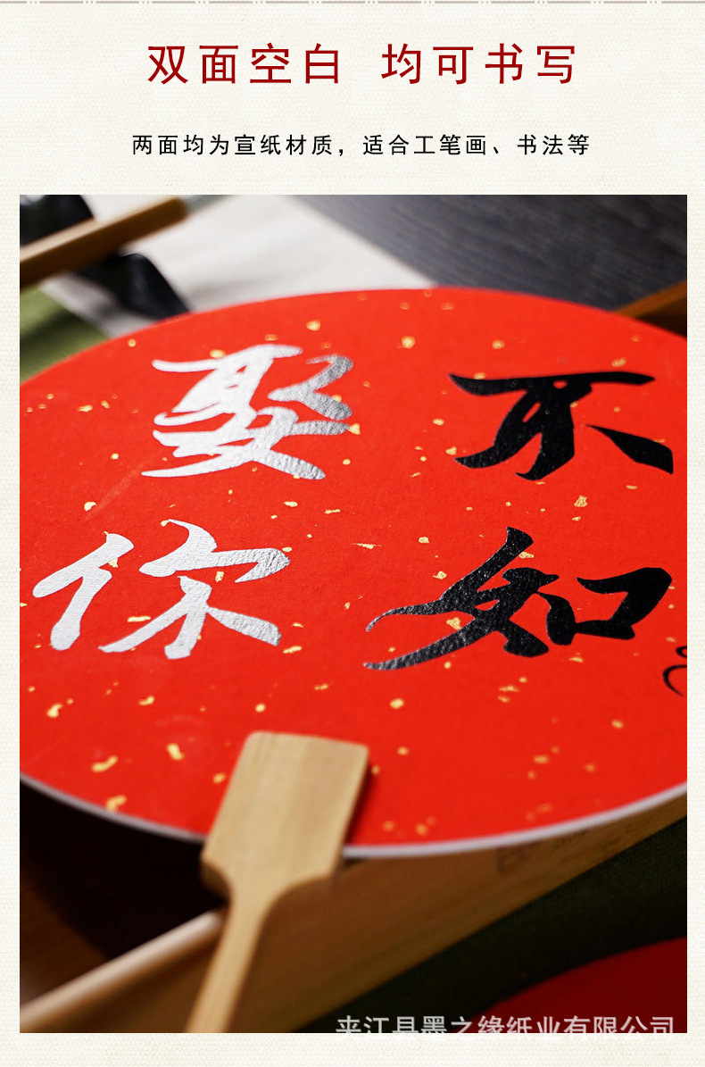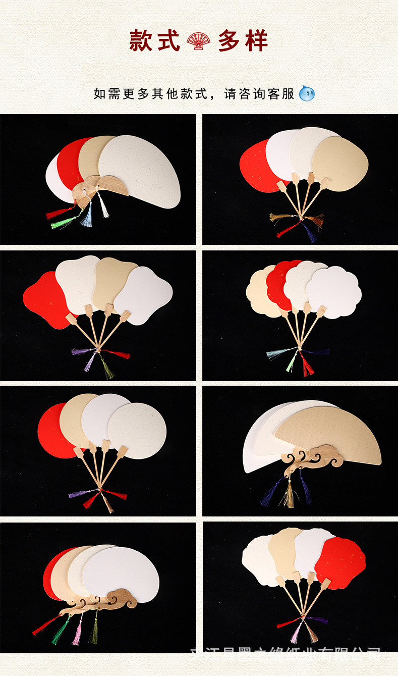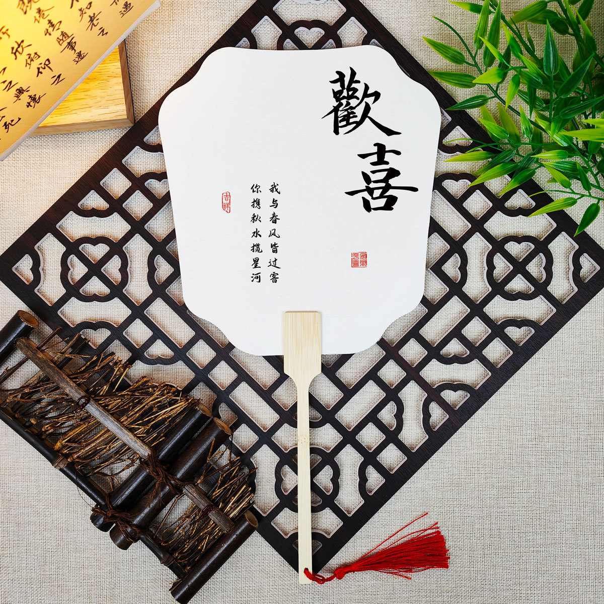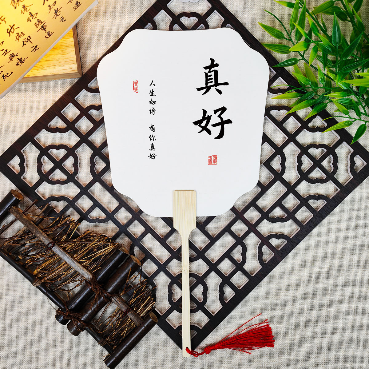 漆扇定制带字加厚团扇半生国风手绘扇子全白手绘水墨写意古风扇面