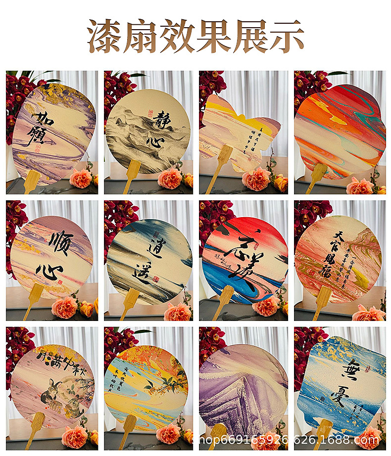 漆扇PVC团扇宣纸扇字画漆扇中国风扇子书法国风手绘漂漆扇批发
