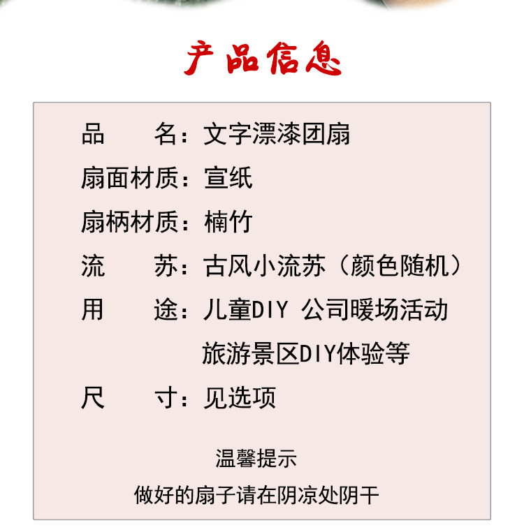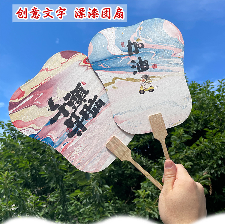 漂漆专用团扇漆扇diy材料包书法文字漂流漆扇子旅游景区摆摊扇面