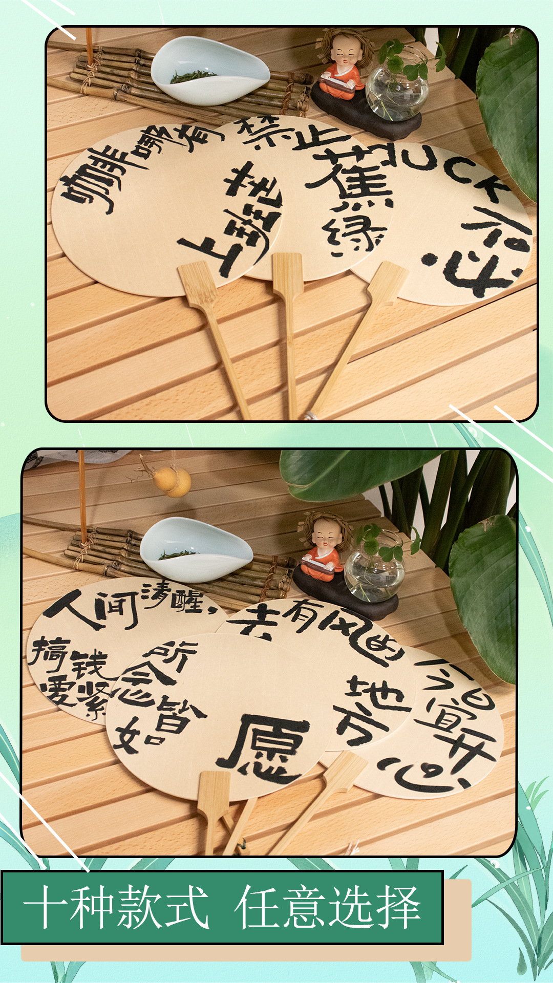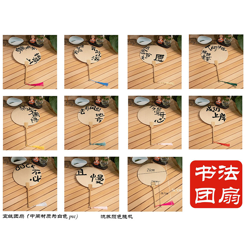 古风书法团扇旅游景点拍照中式复古大漂漆扇创意文案国潮扇子批发