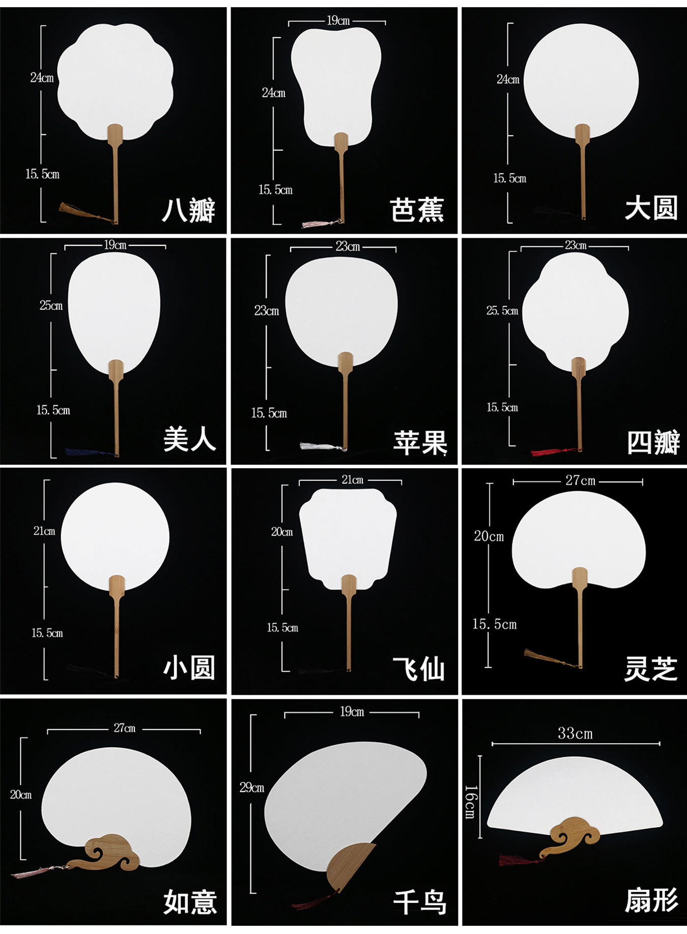 熟宣团扇双面空白宣纸扇工笔手绘书法白色卡纸扇广告扇漂漆扇批发