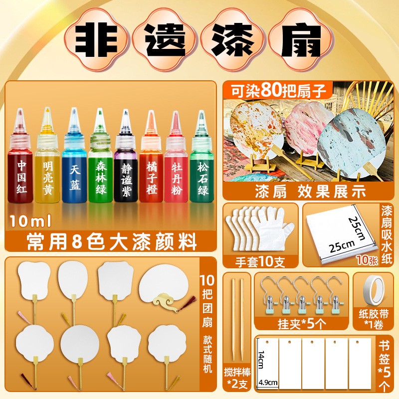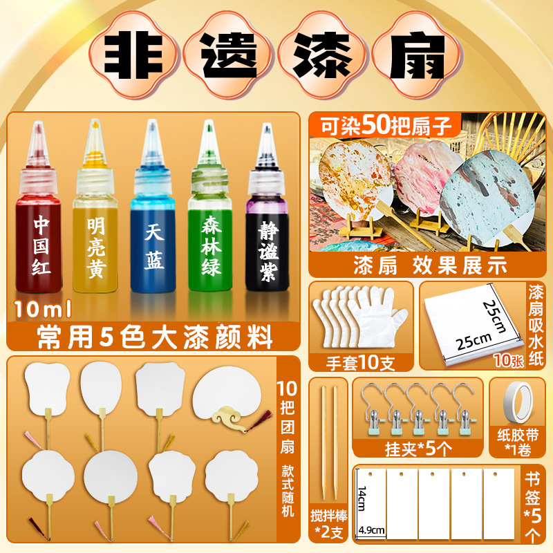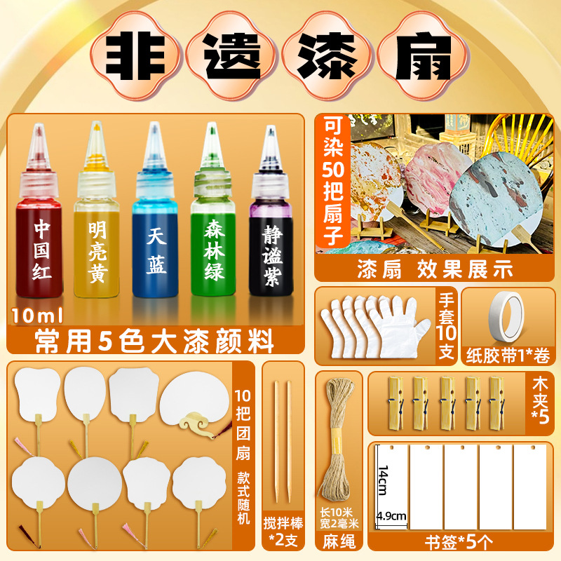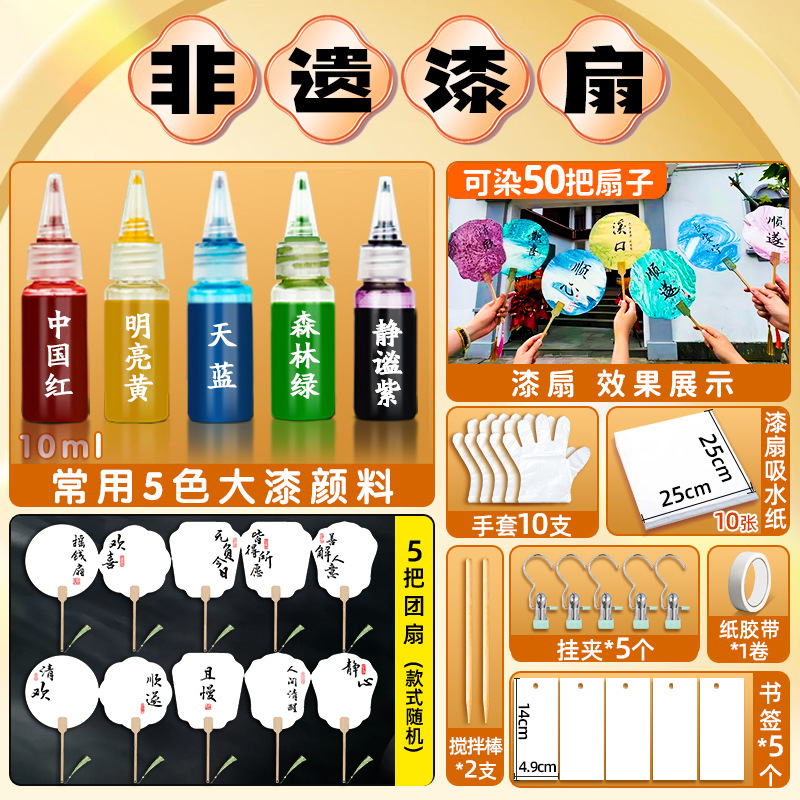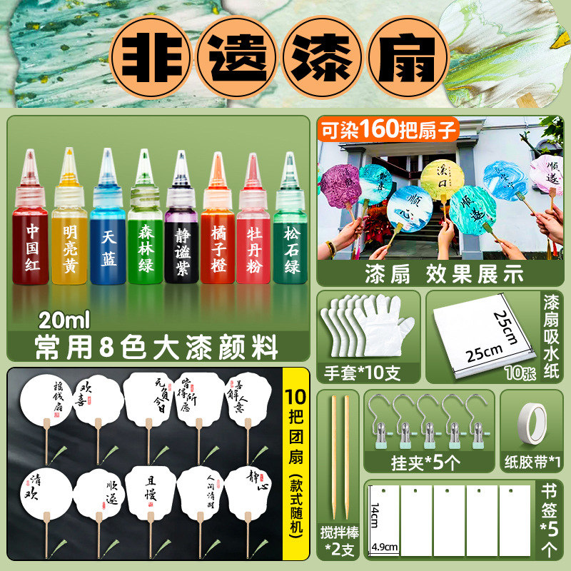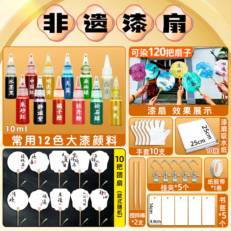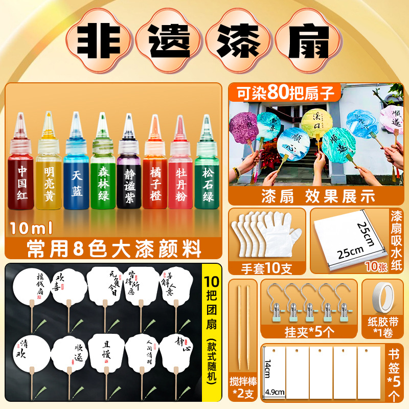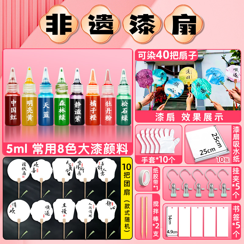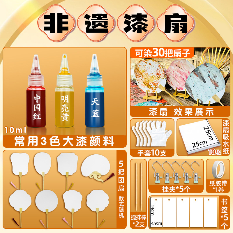 漆扇颜料专用扇子手工漆扇材料包空白扇团扇天然大漆扇漂漆带字扇
