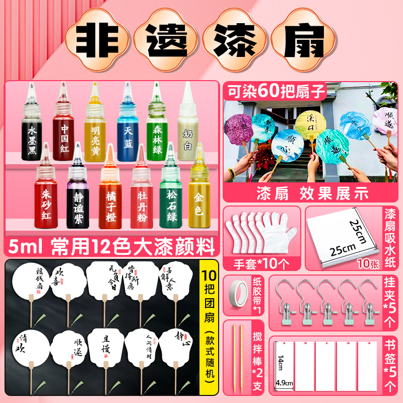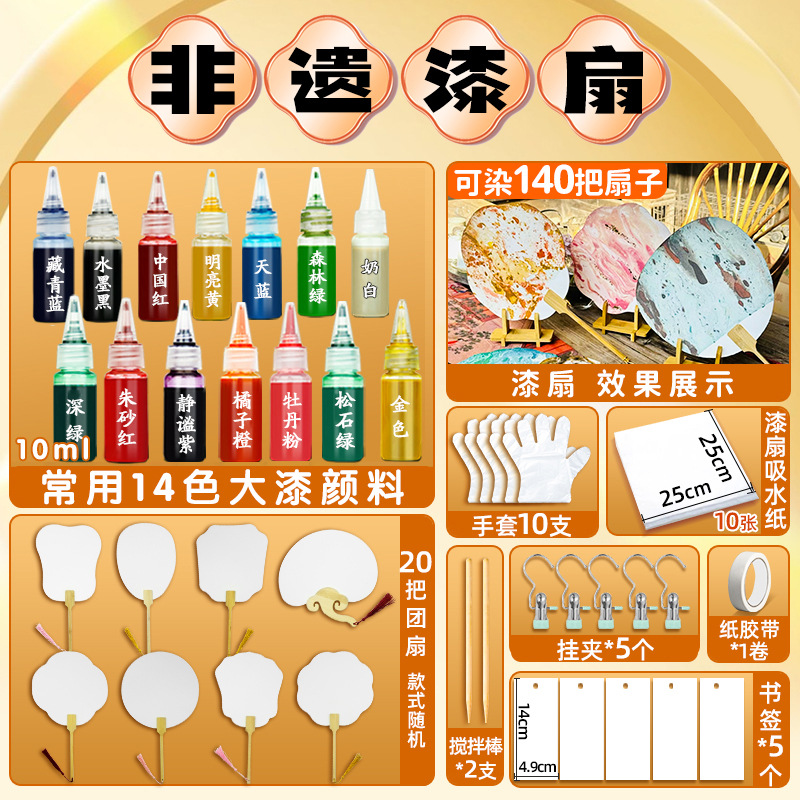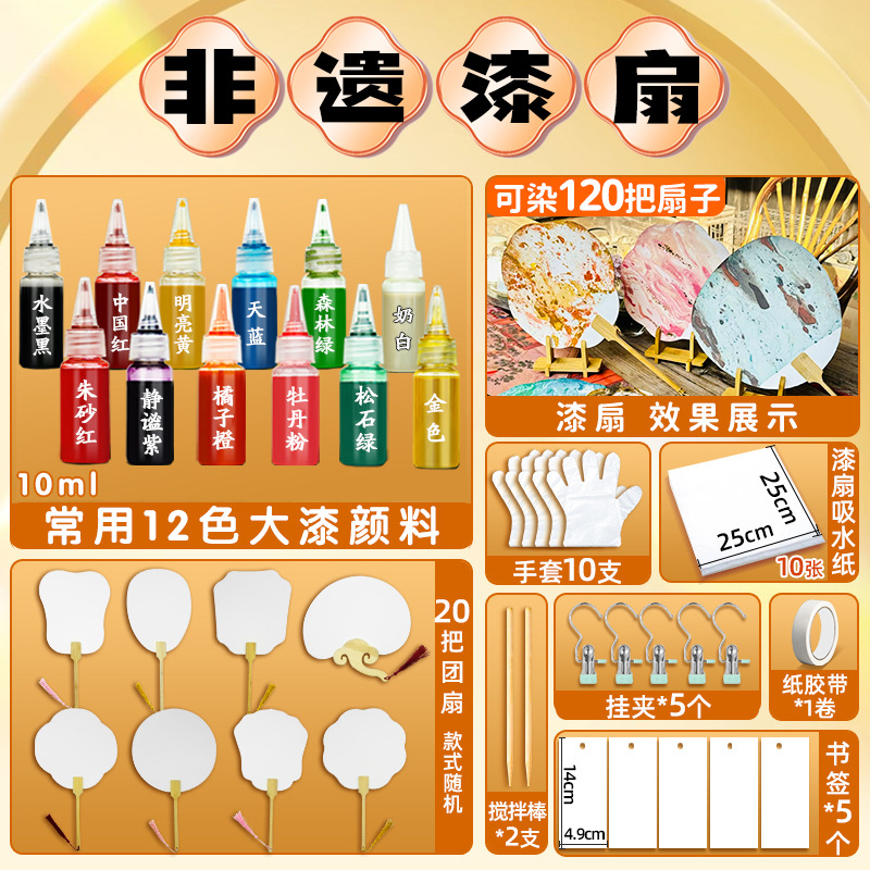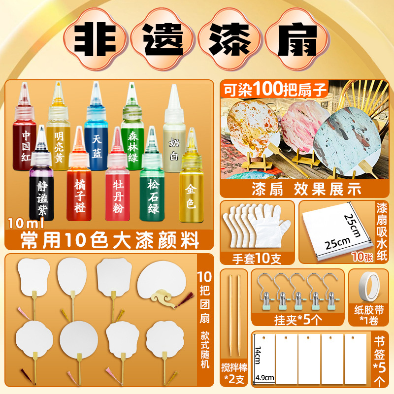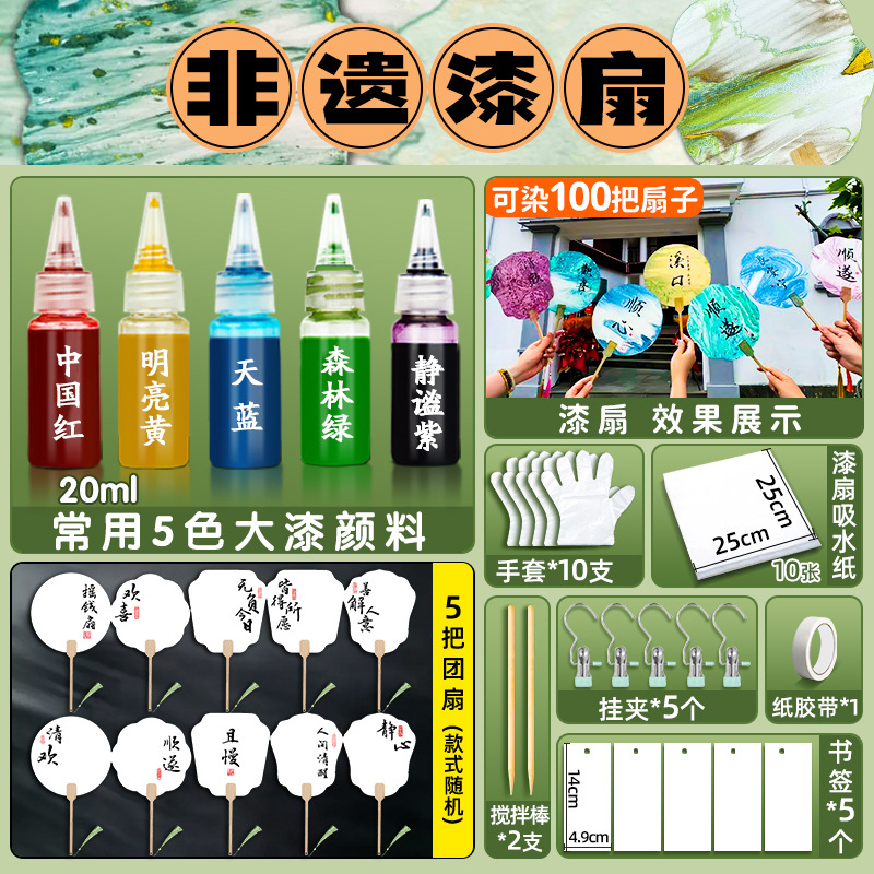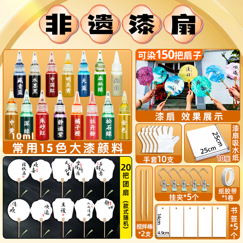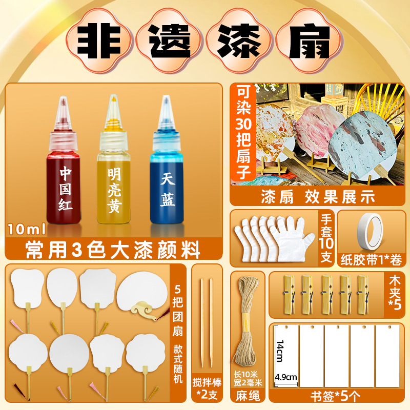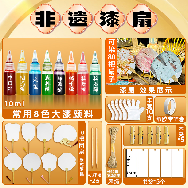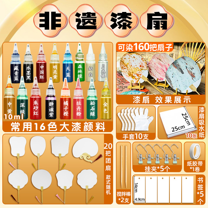 漆扇颜料专用扇子手工漆扇材料包空白扇团扇天然大漆扇漂漆带字扇