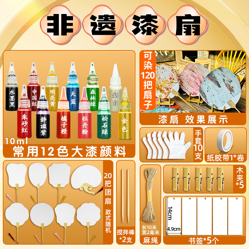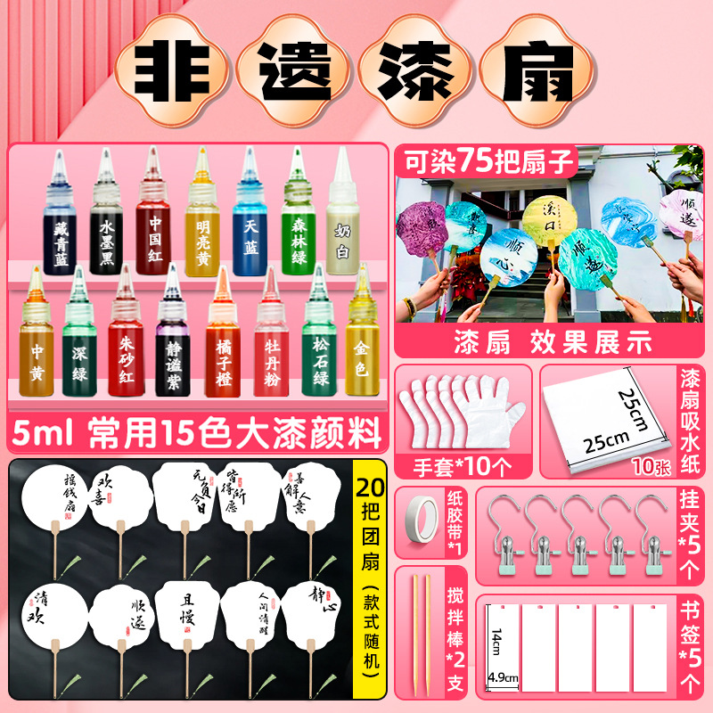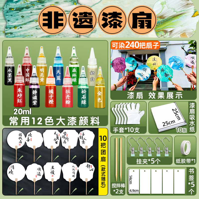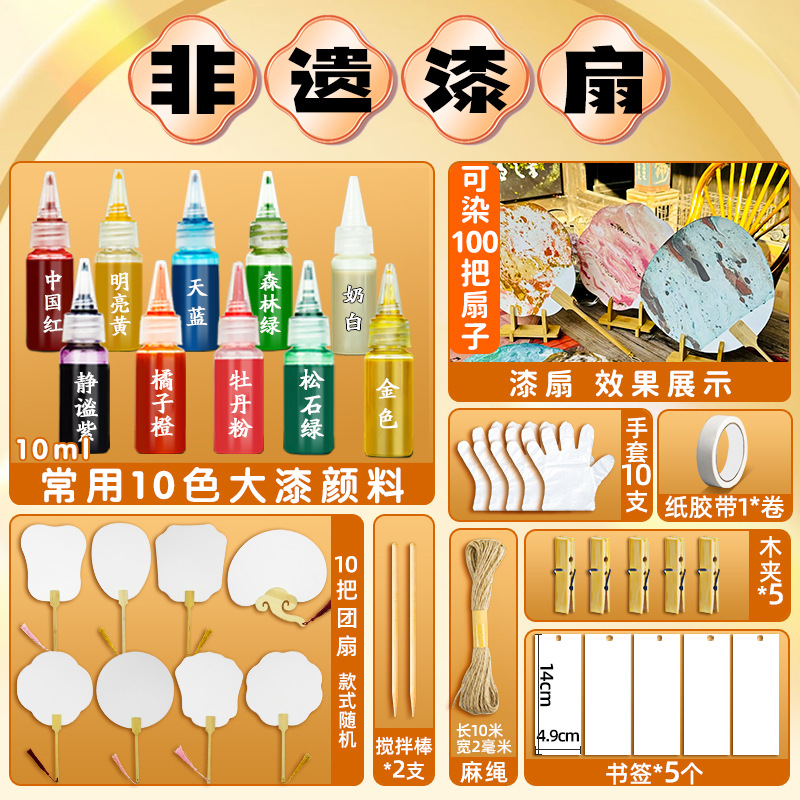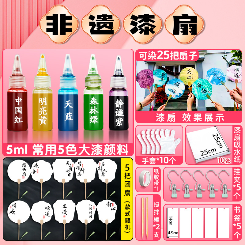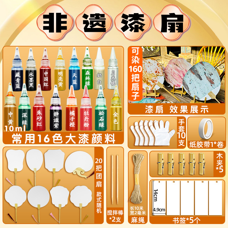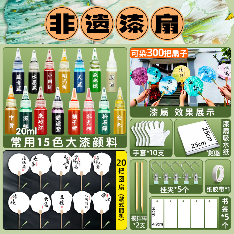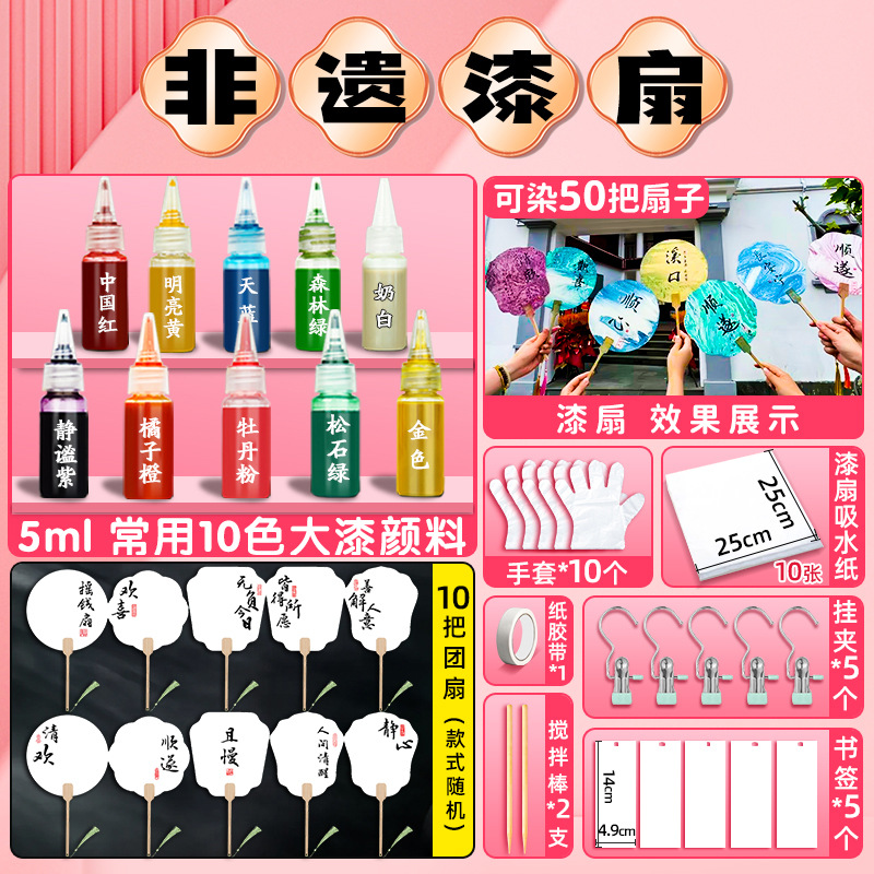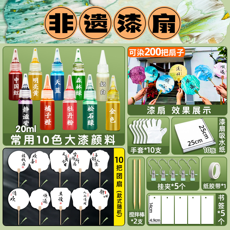 漆扇颜料专用扇子手工漆扇材料包空白扇团扇天然大漆扇漂漆带字扇