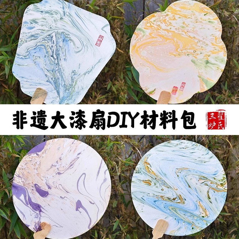网红手工diy非遗飘漆扇 漂流漆材料包漂漆扇大漆非遗漂漆扇无气味