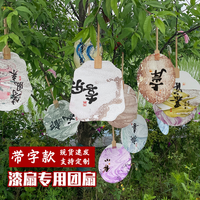 漂漆扇带字宣纸团扇非遗漆扇漂漆专用空白扇子diy扎染景区大漆扇