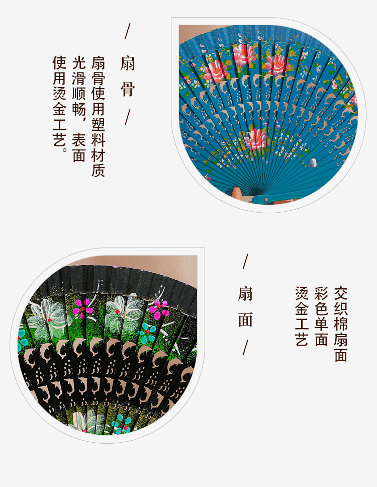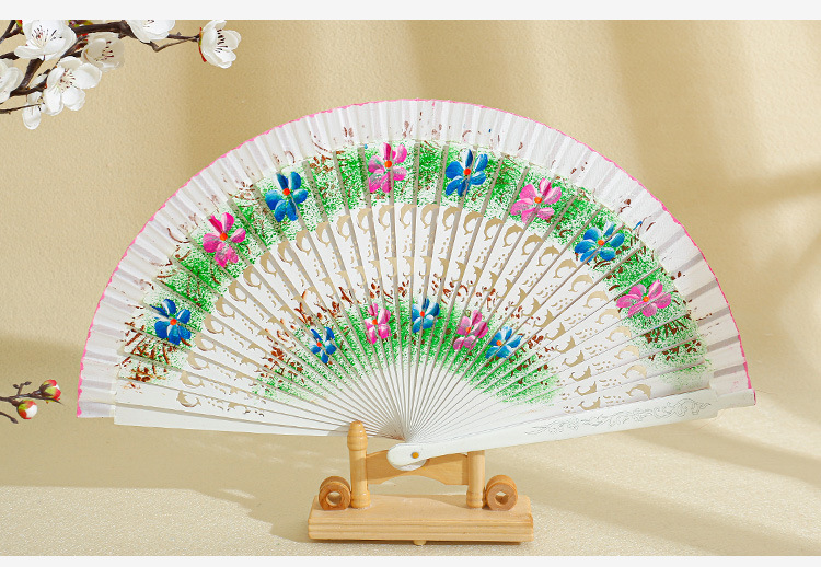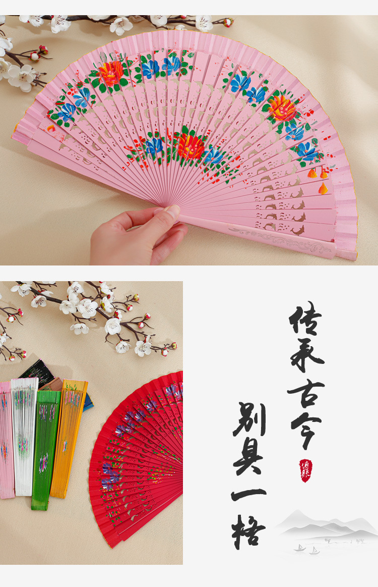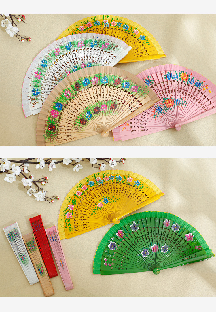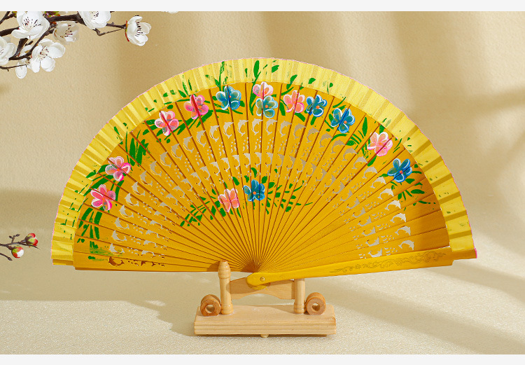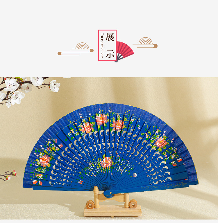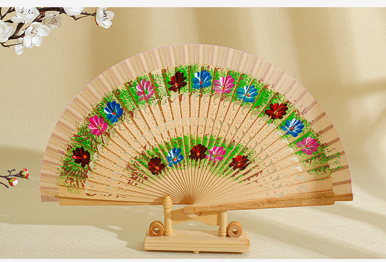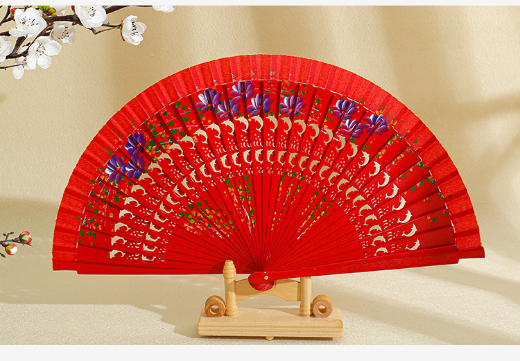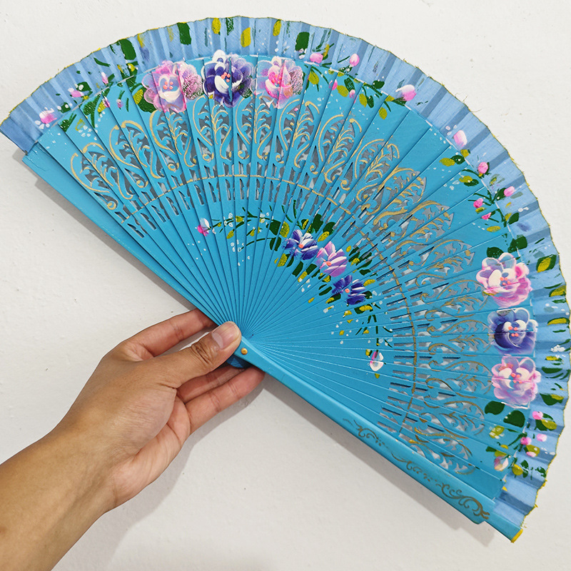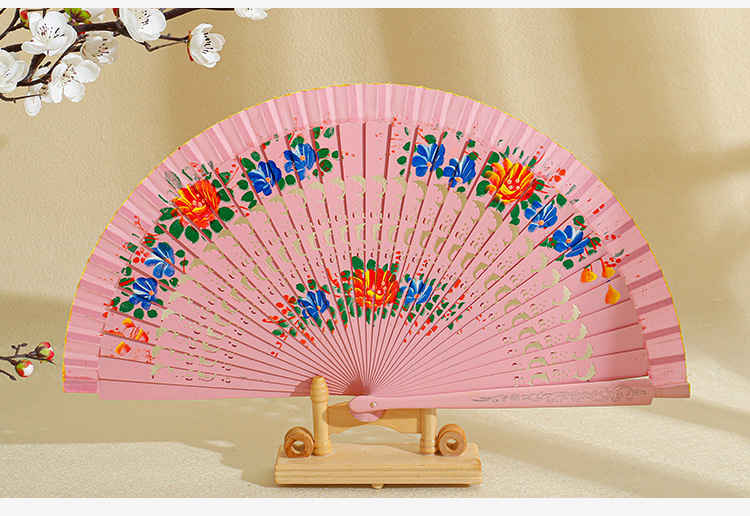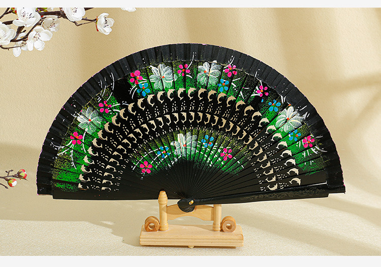 西班牙双面彩绘纯木折扇开合顺畅Anita古典旗袍舞蹈镂空折叠漆扇