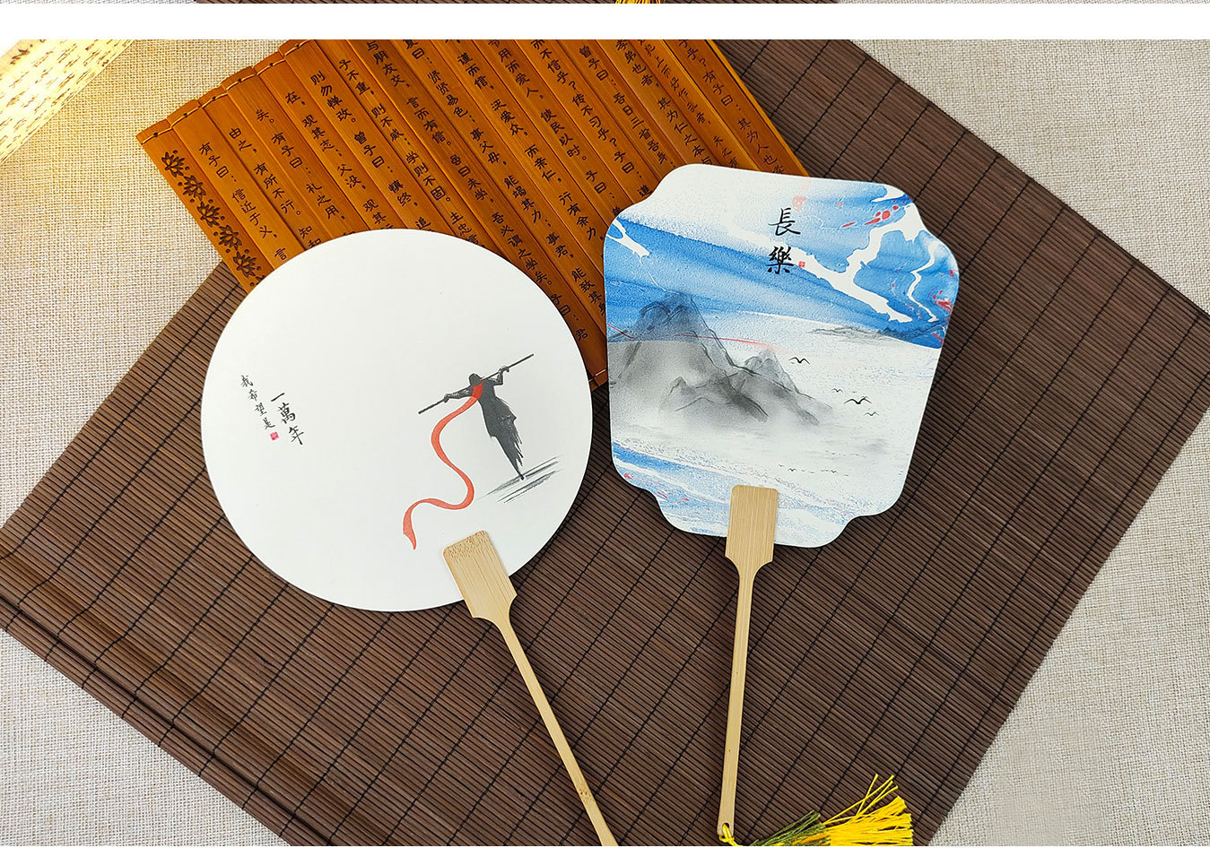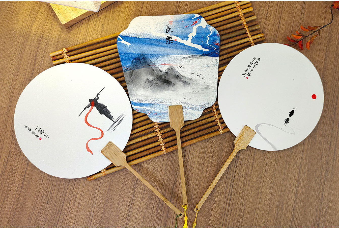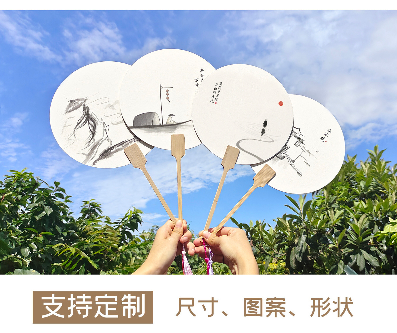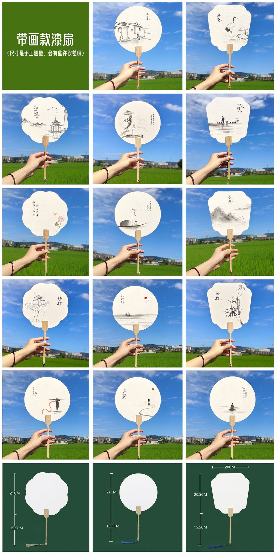 漂漆专用宣纸团扇水墨画大漆古风扇子书法文创国画带图案pvc漆扇