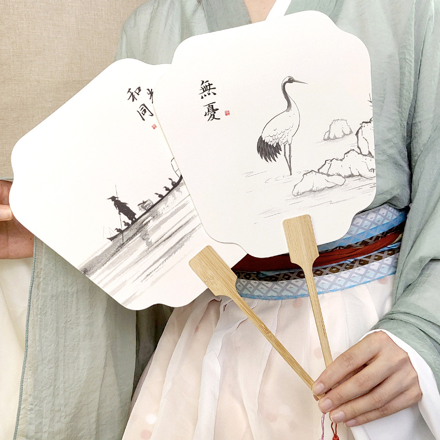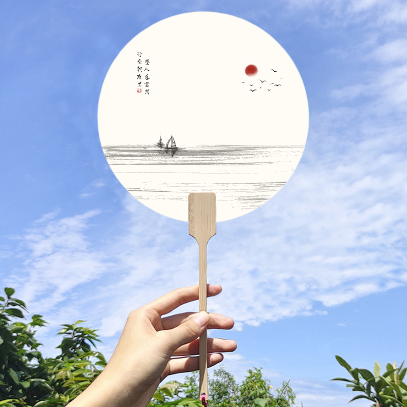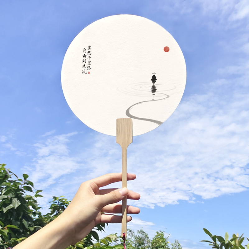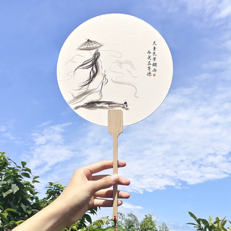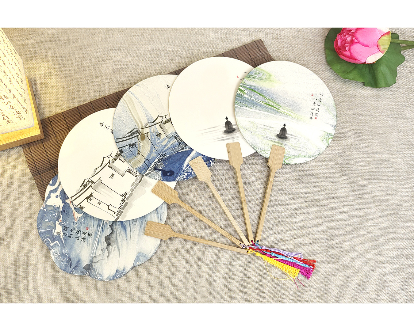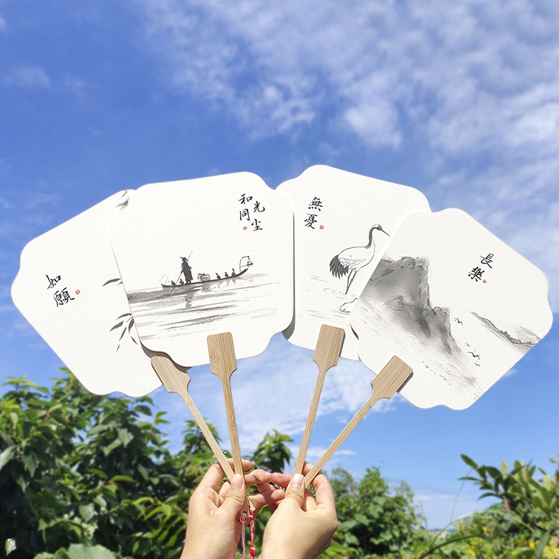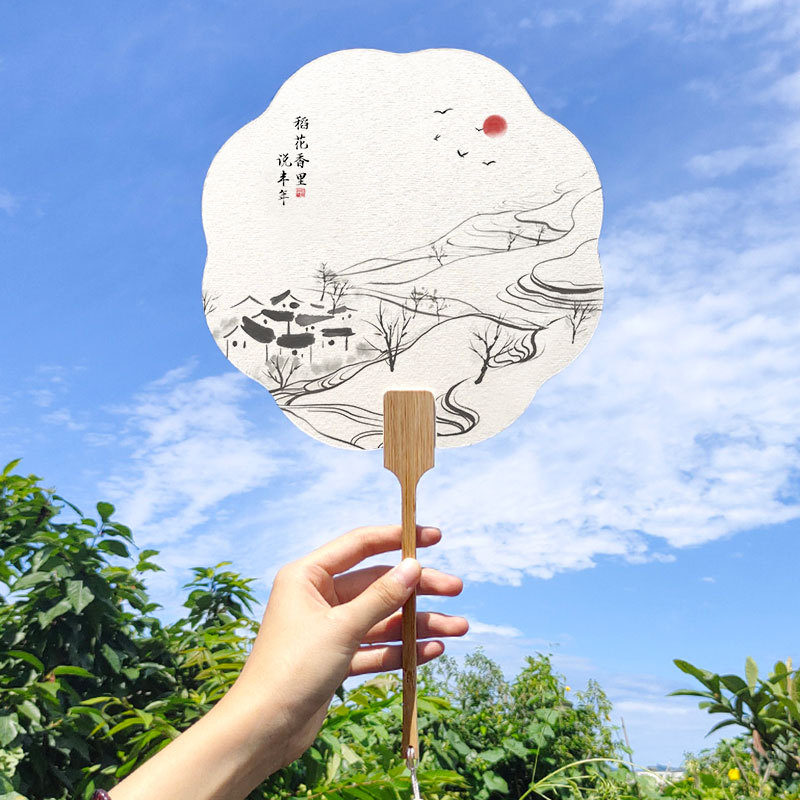 漂漆专用宣纸团扇水墨画大漆古风扇子书法文创国画带图案pvc漆扇