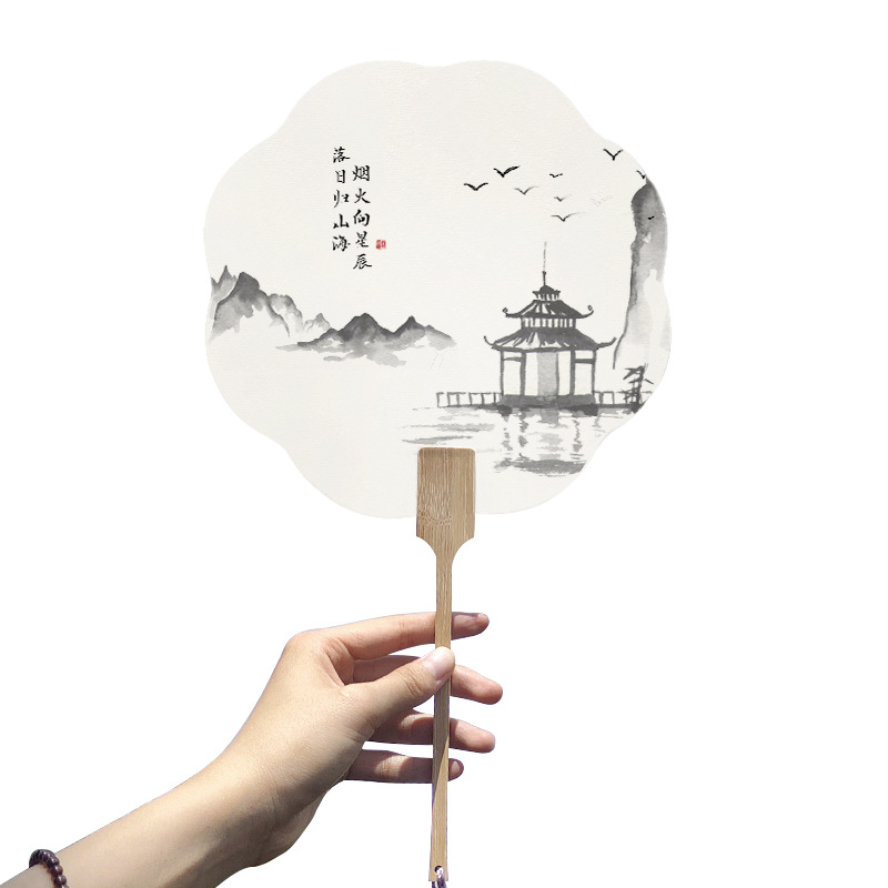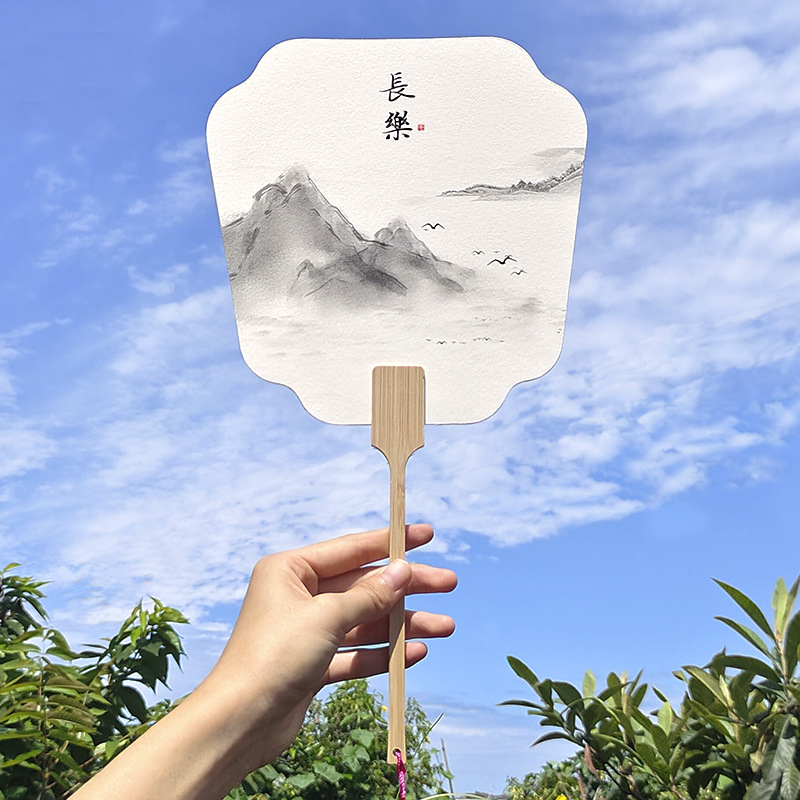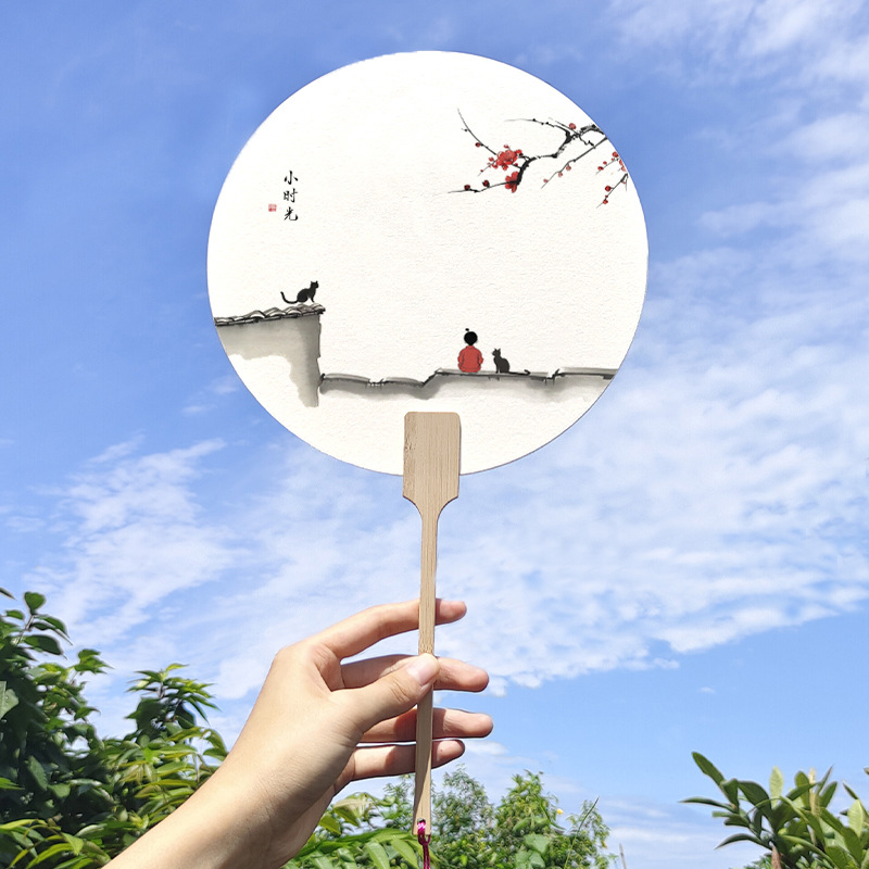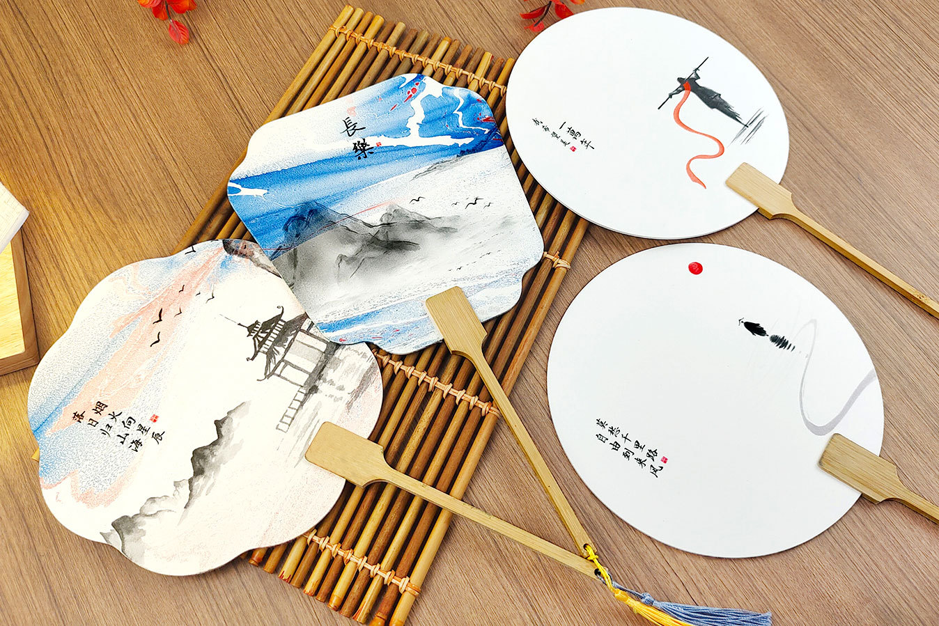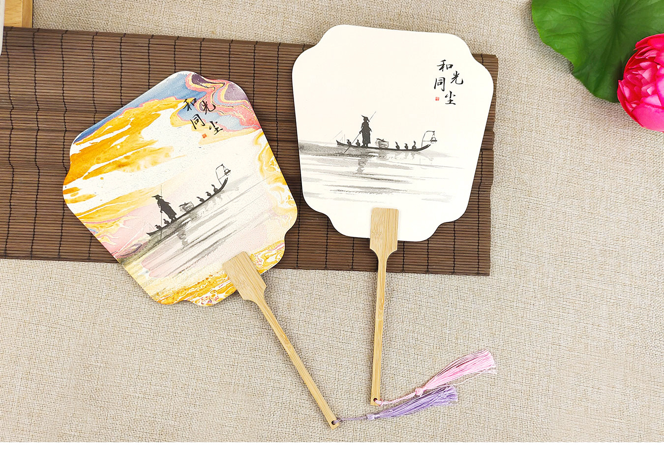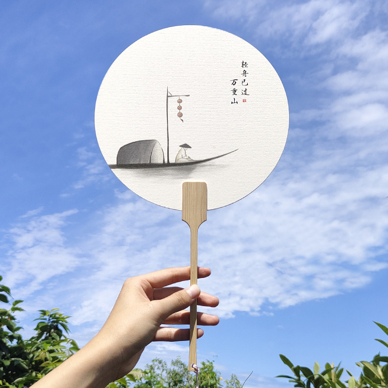漂漆专用宣纸团扇水墨画大漆古风扇子书法文创国画带图案pvc漆扇