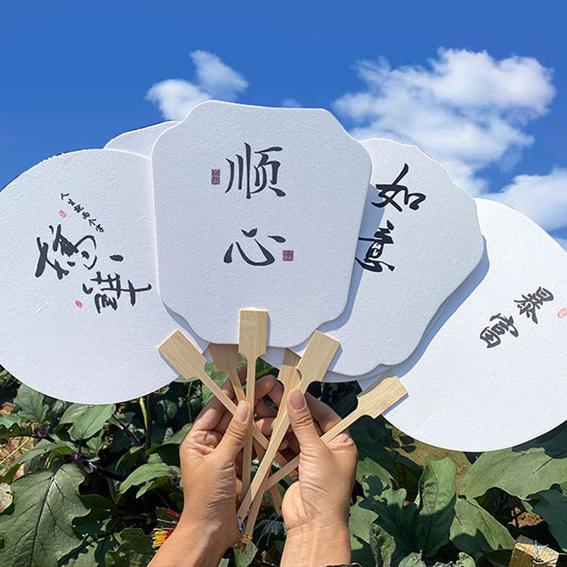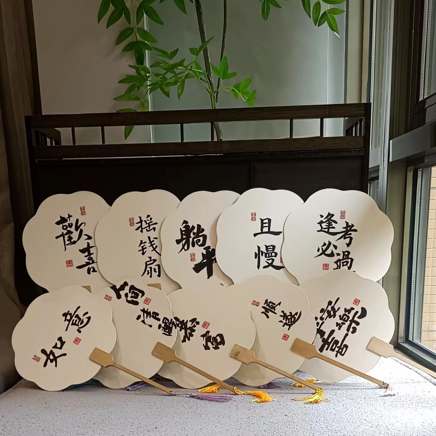 漆扇带字款漂漆团扇漆扇专用扇 古风折扇团扇旅游打卡摆摊diy漆扇