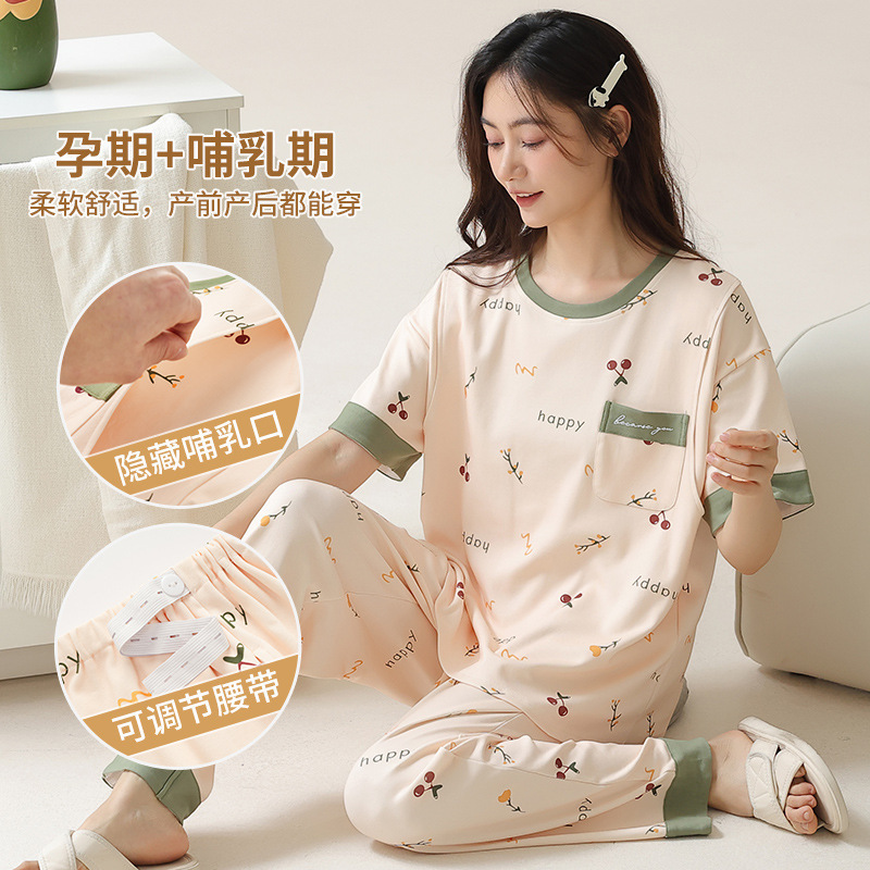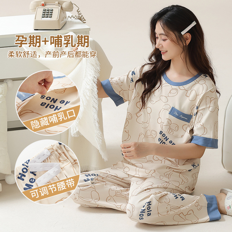 月子服短袖长裤春夏季薄款大码套装哺乳款孕妇产后喂奶待产家居服