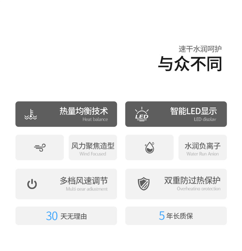 高速吹风机便捷家用大风力水负离子护发速干宿舍专用恒温电吹风筒