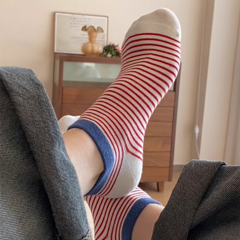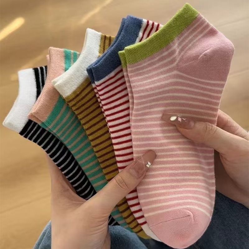新款条纹多巴胺袜子女士夏季薄款短袜吸汗防臭防滑不掉跟船袜