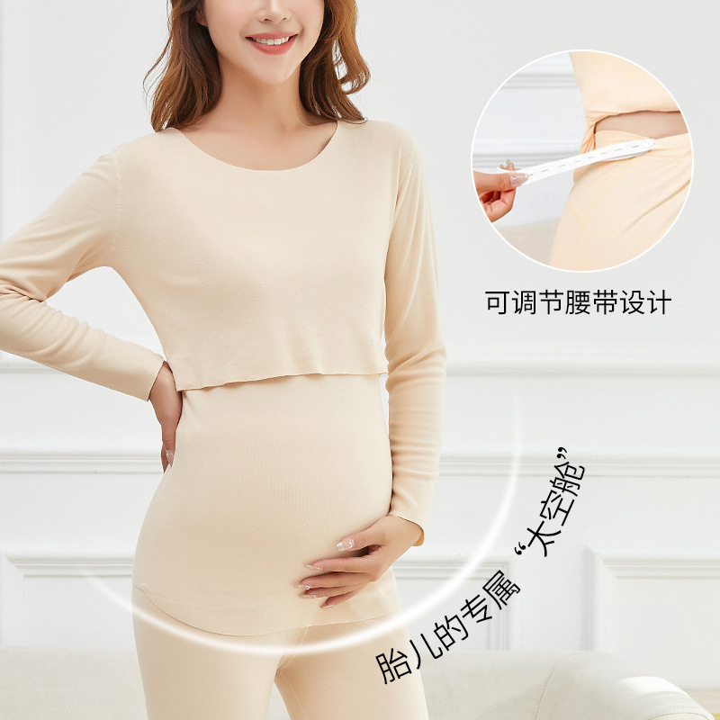 一件代发阳离子加绒加厚保暖内衣孕妇套装秋衣秋裤哺乳喂奶月保暖