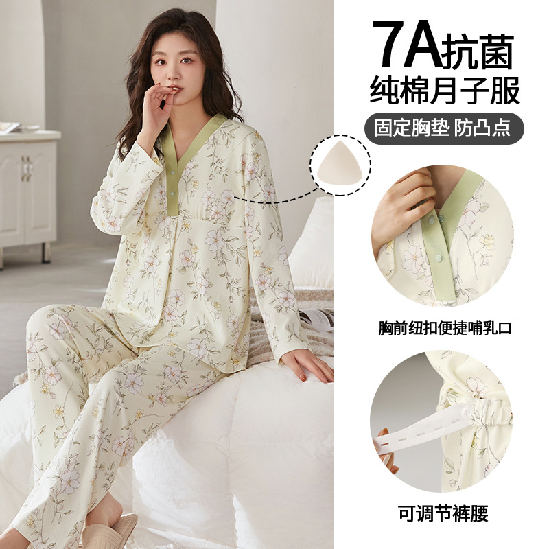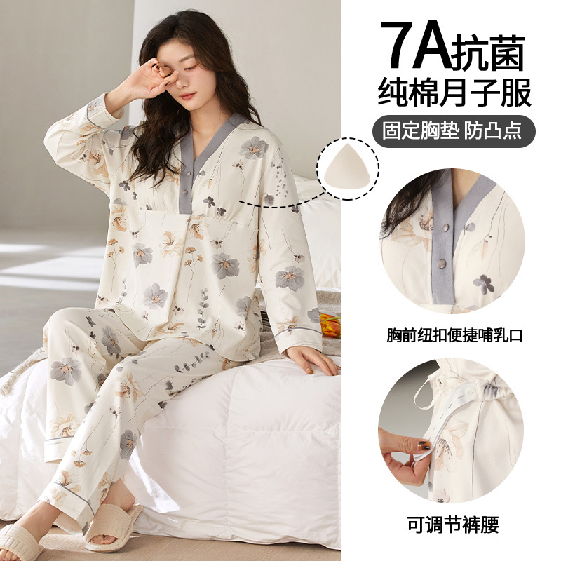 带胸垫月子服春秋纯棉产后孕妇睡衣女夏季薄款产妇哺乳衣喂奶套装