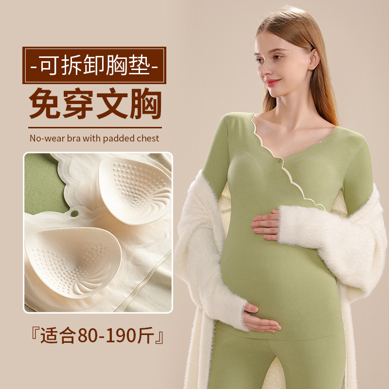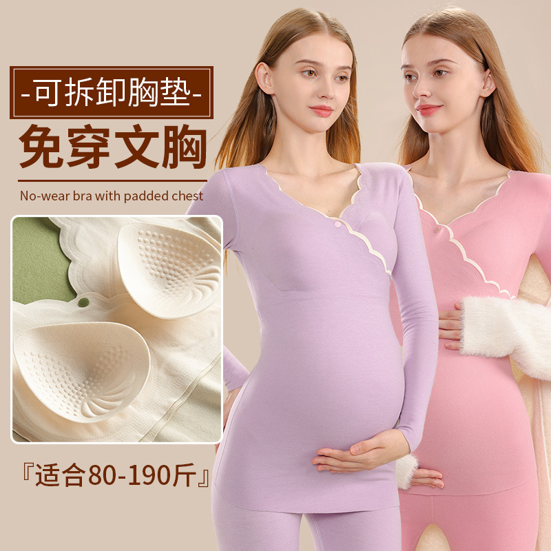 孕妇秋衣秋裤套装免穿文胸哺乳睡衣产后月子服秋冬季德绒保暖内衣