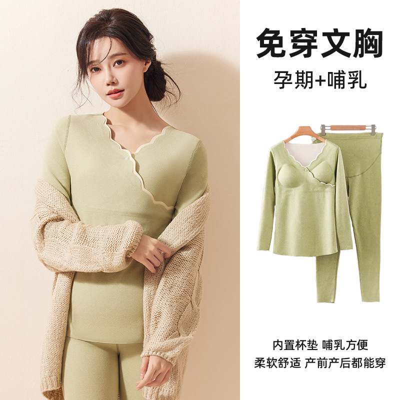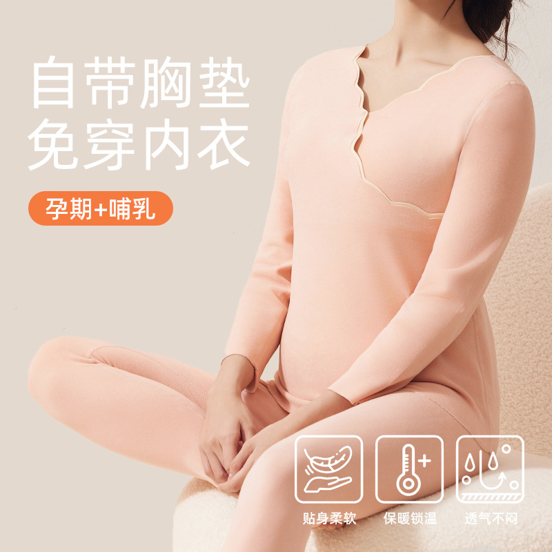 孕妇保暖内衣套装秋衣秋裤哺乳睡衣带胸垫磨毛月子服产后喂奶打底