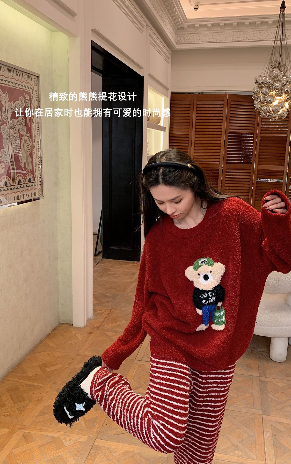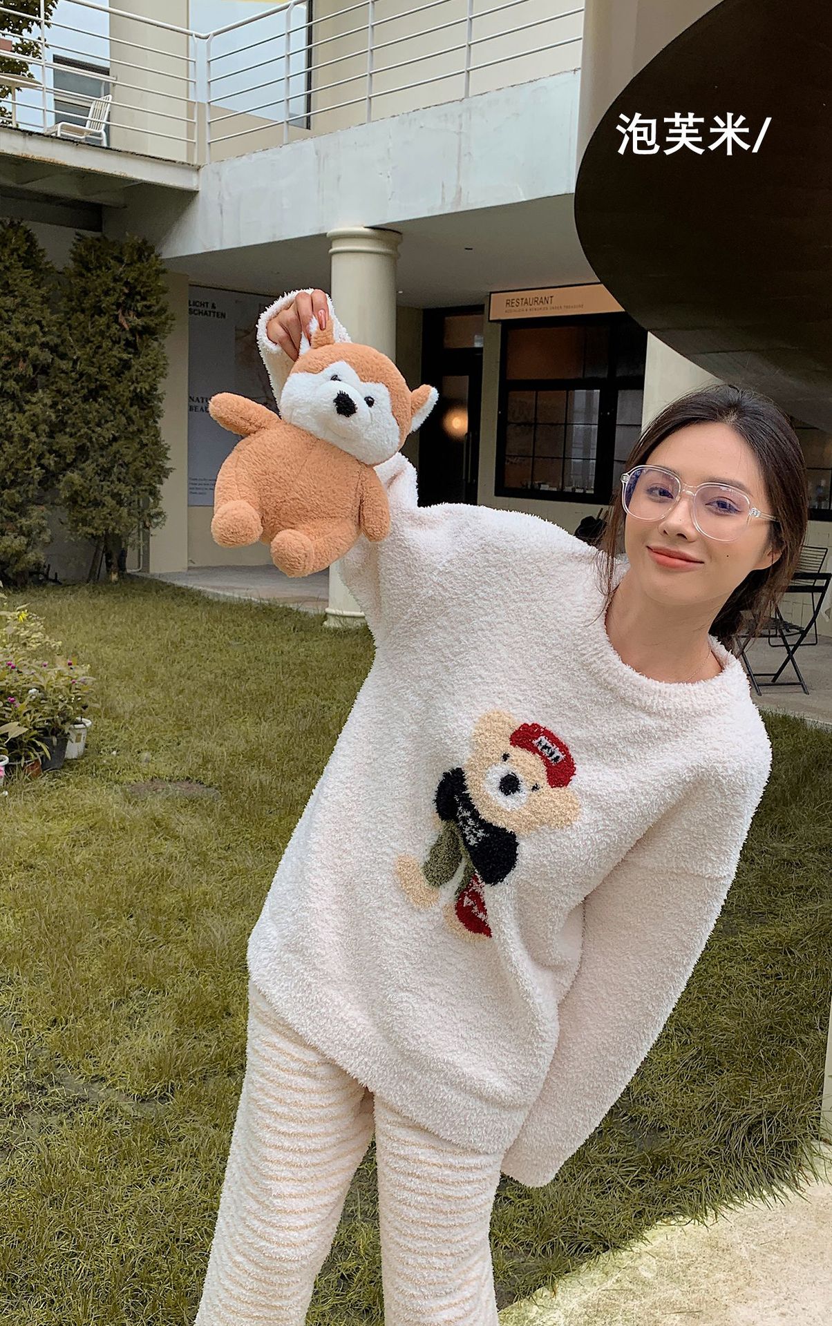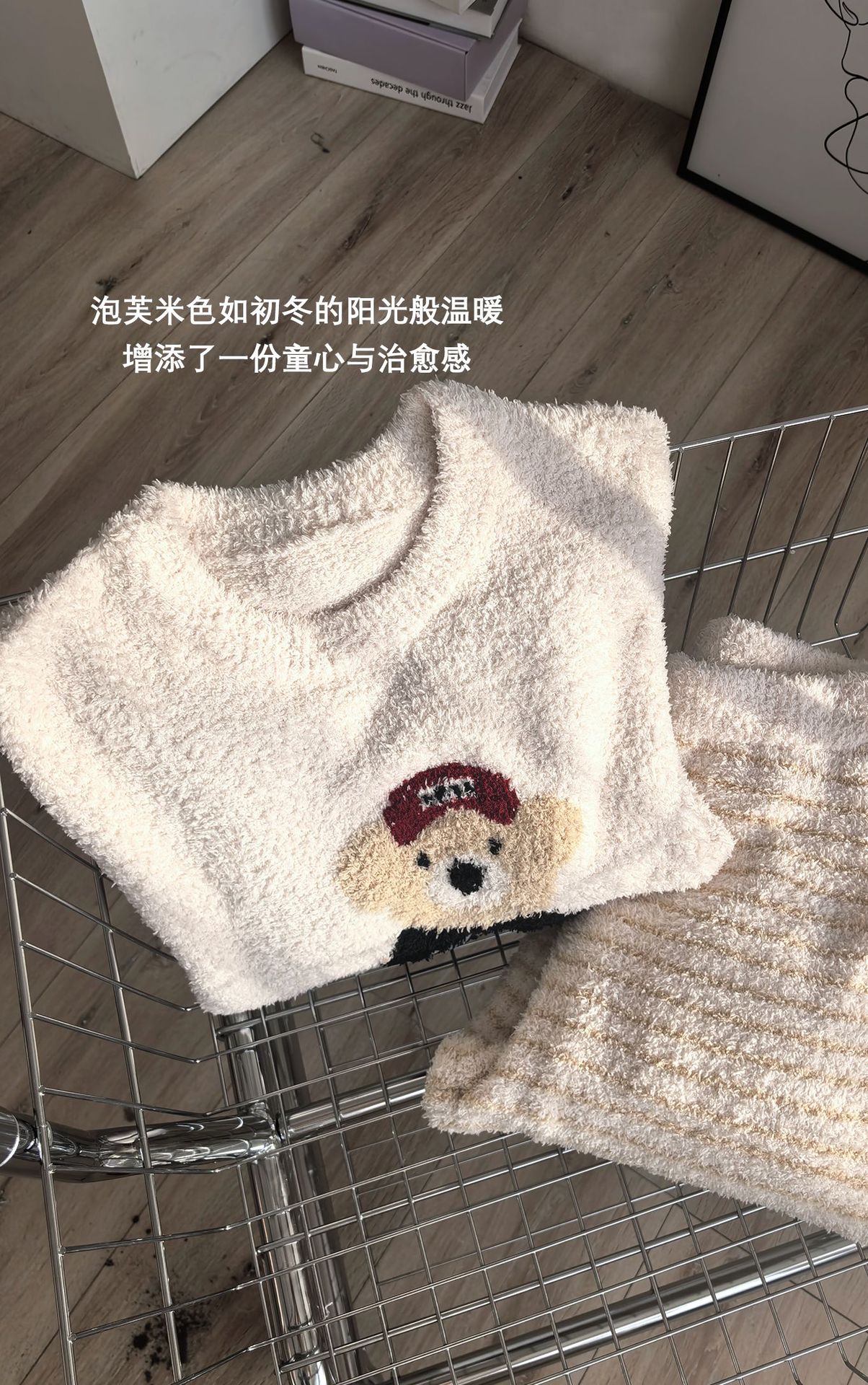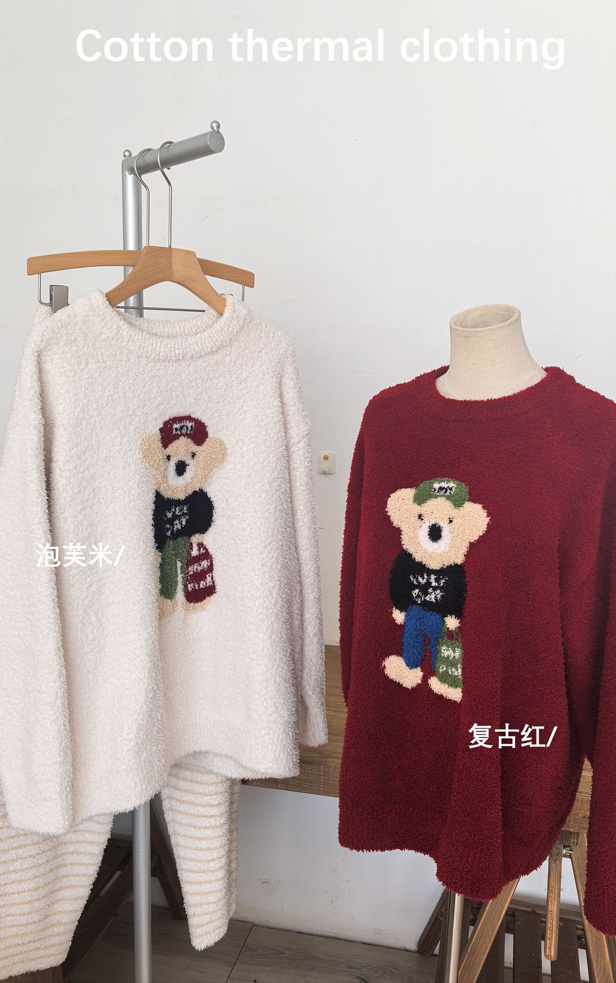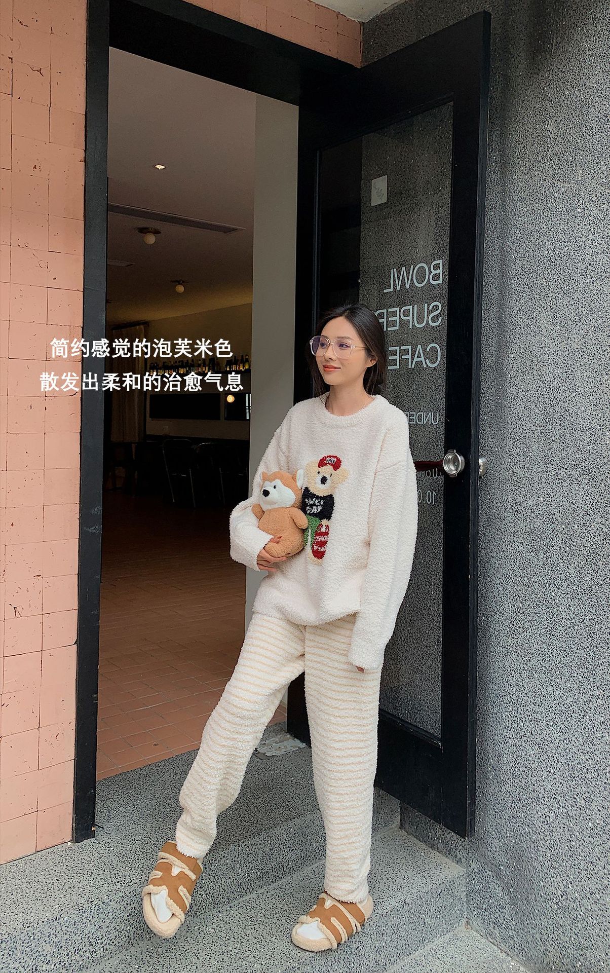 绵绵热能睡衣套装提花小熊冬季加绒加厚半边绒家居服柔软宽松保暖
