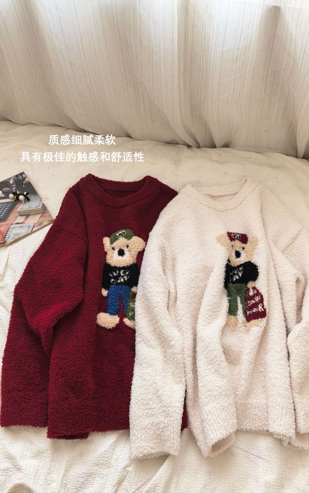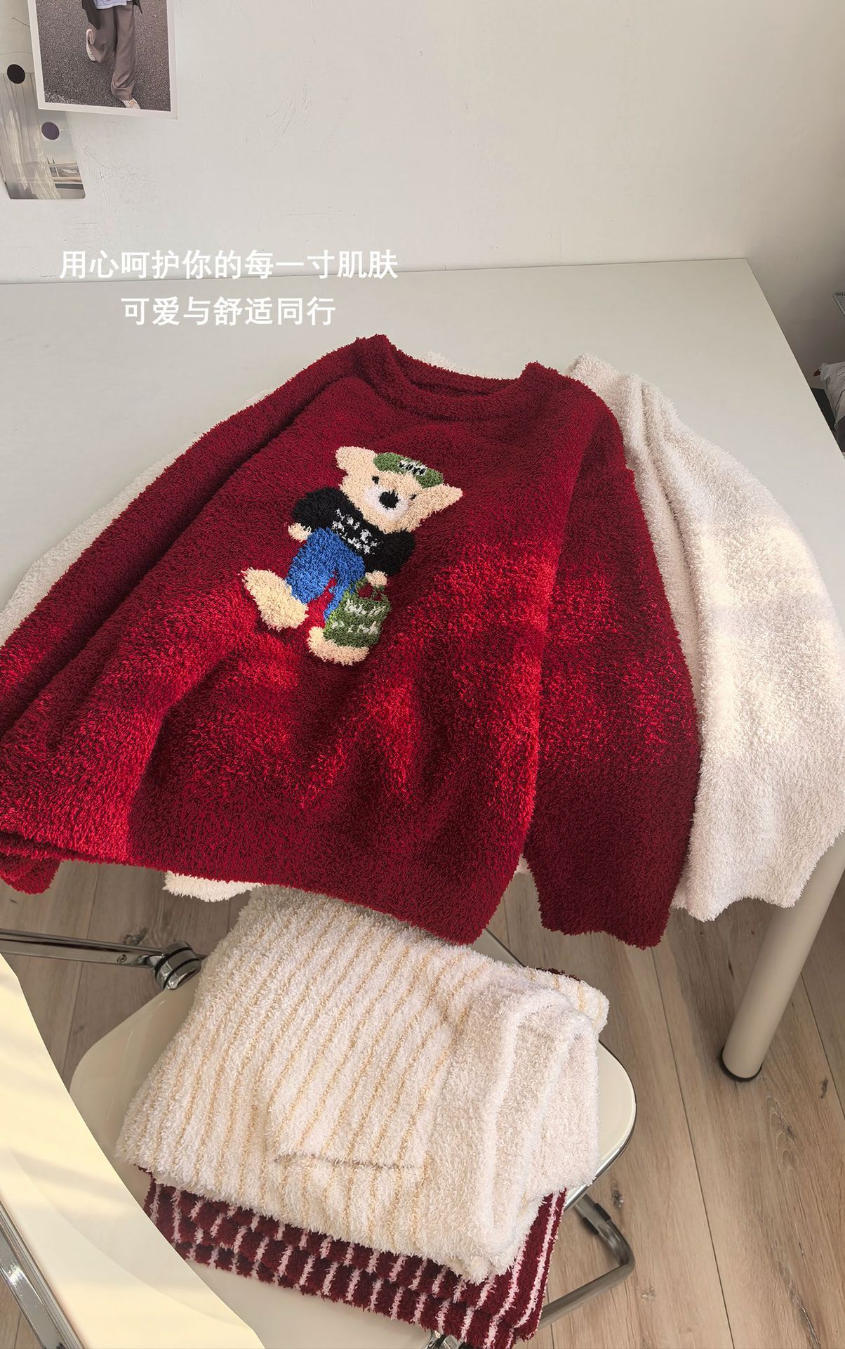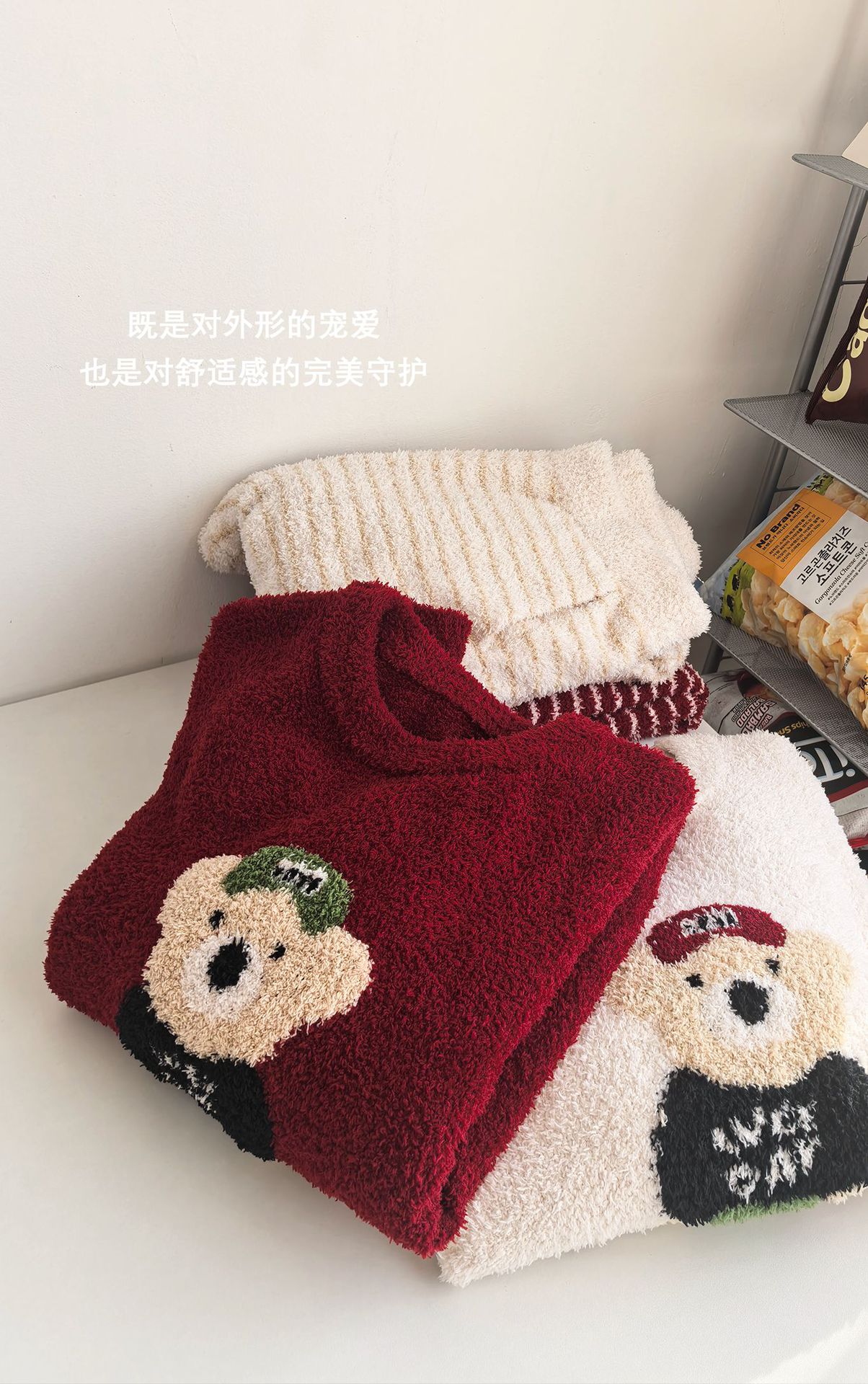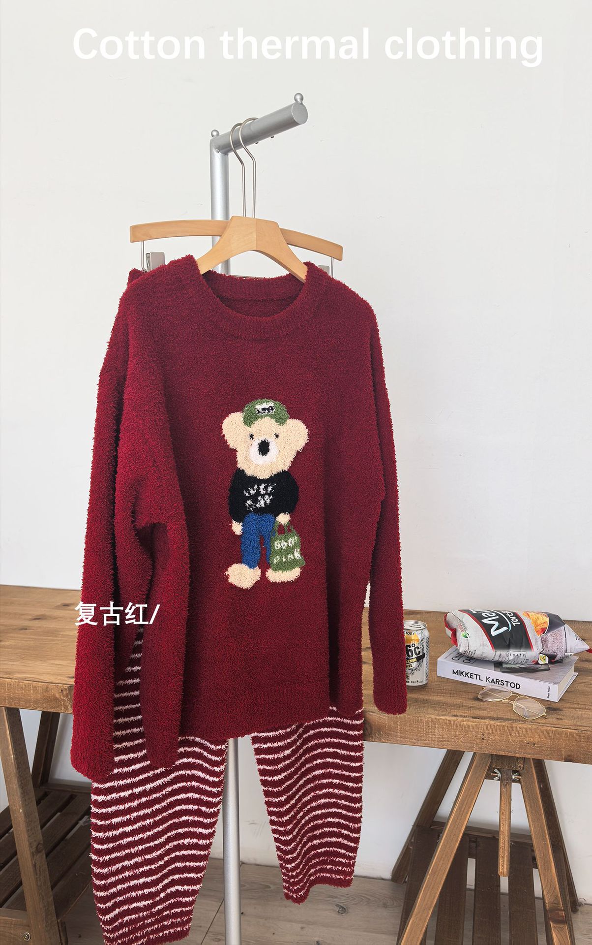 绵绵热能睡衣套装提花小熊冬季加绒加厚半边绒家居服柔软宽松保暖