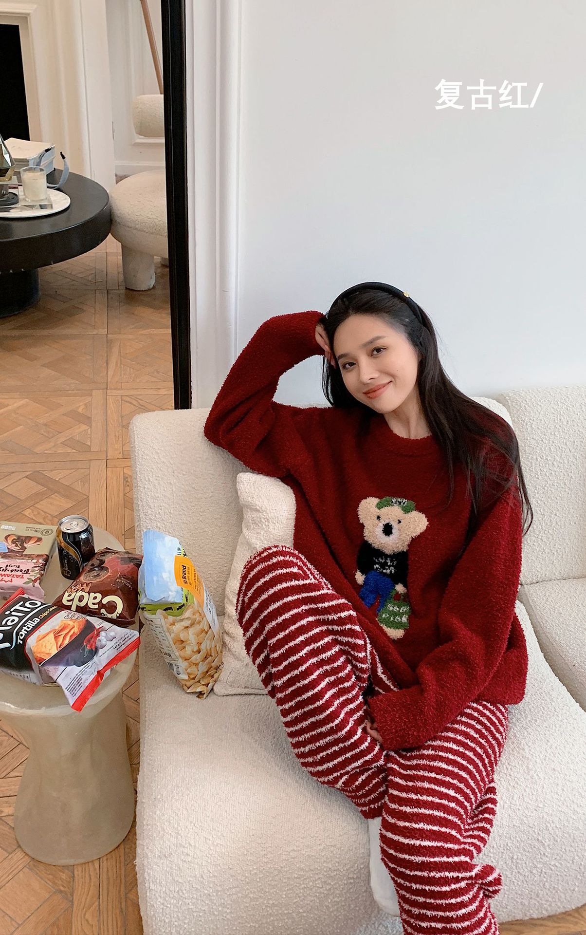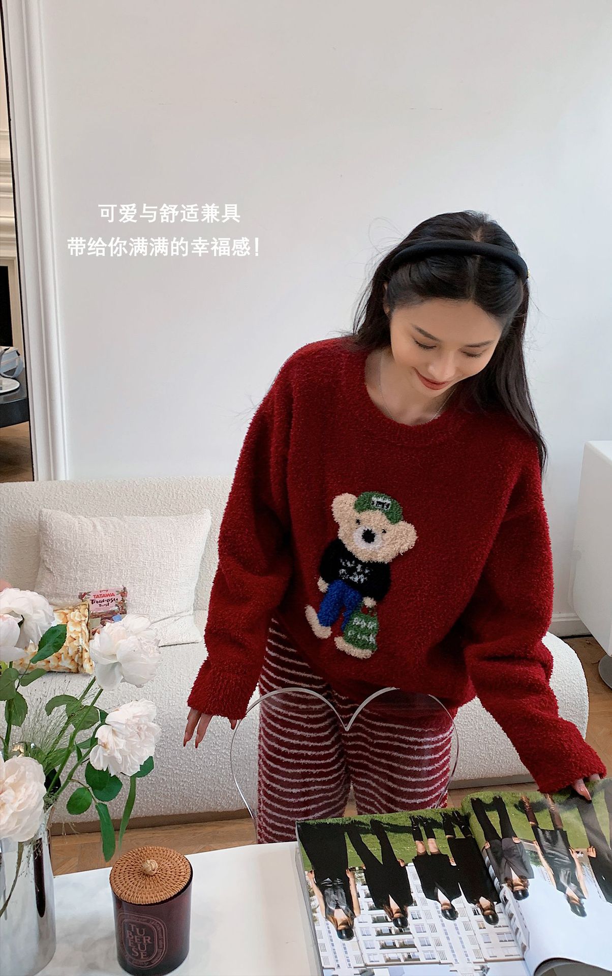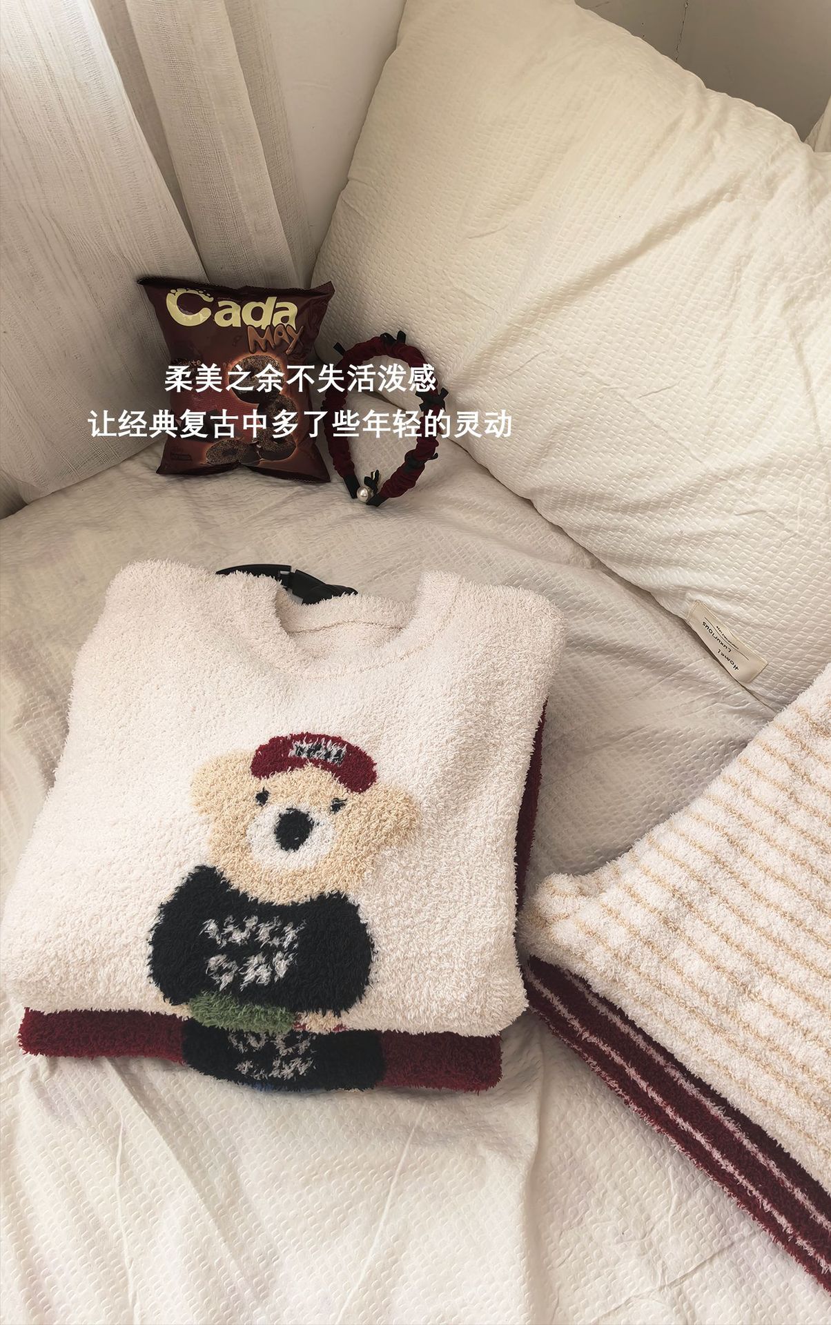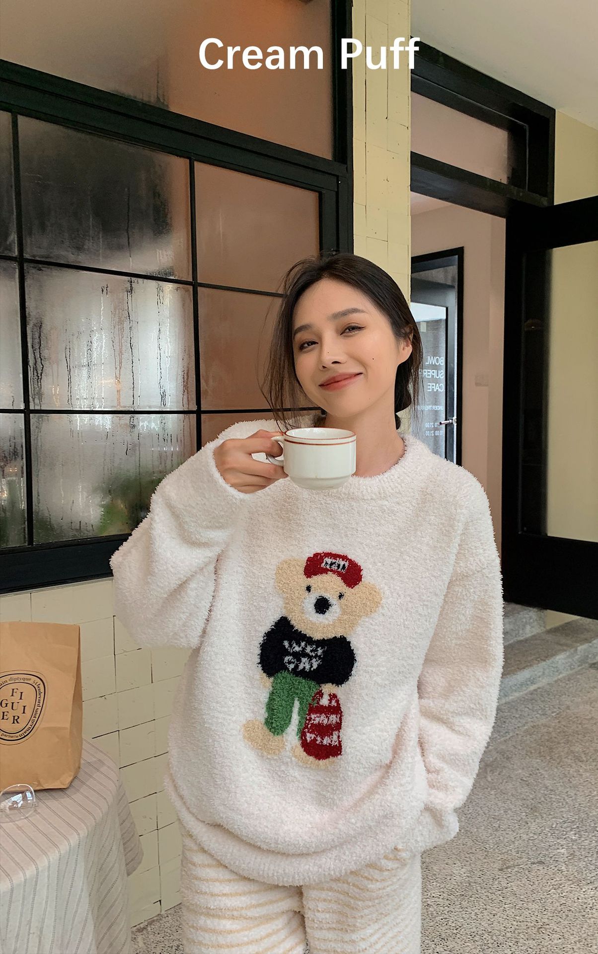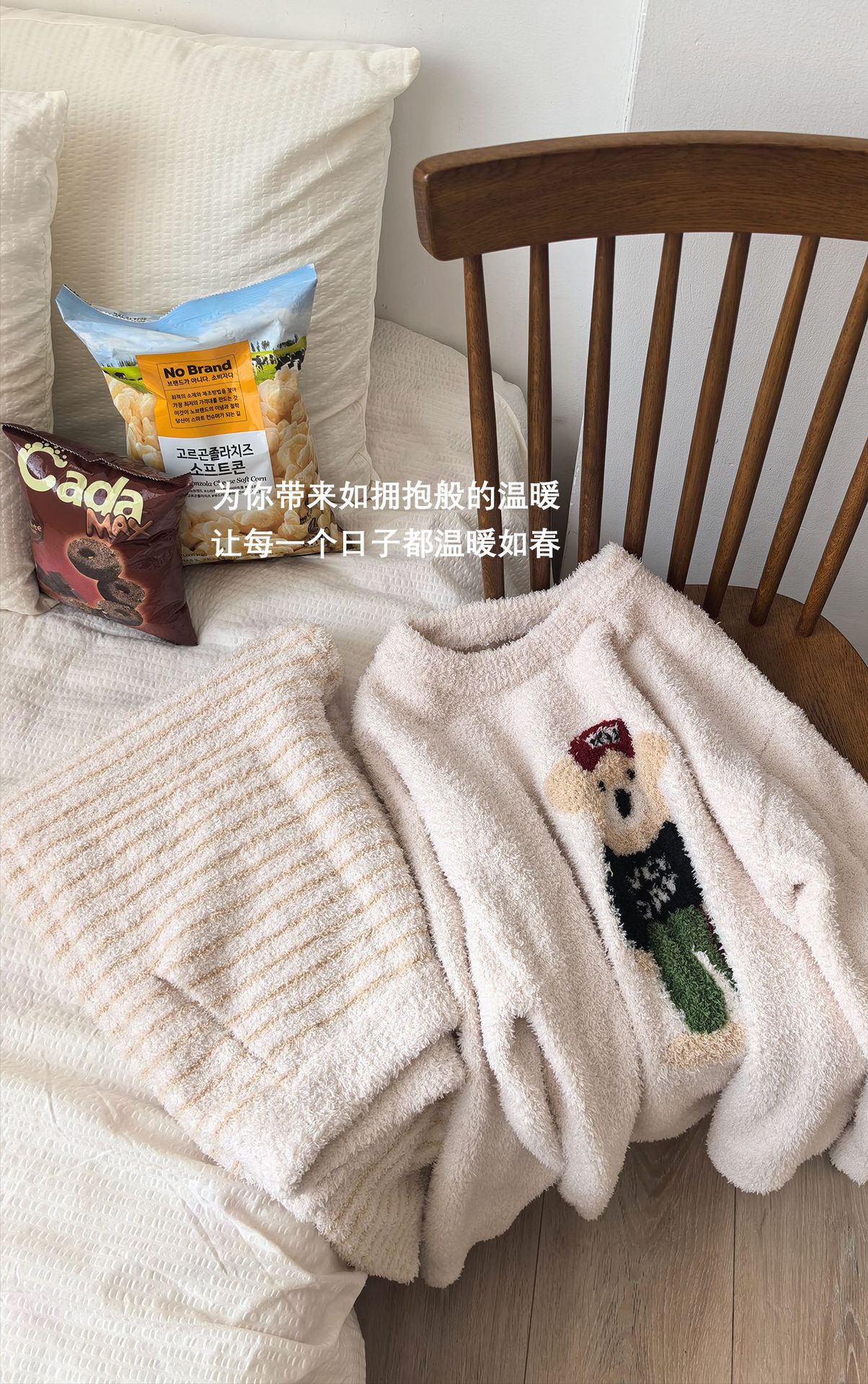 绵绵热能睡衣套装提花小熊冬季加绒加厚半边绒家居服柔软宽松保暖