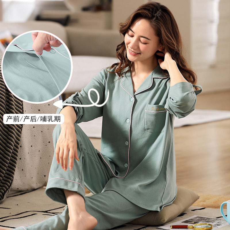 纯棉月子服春夏季产前产后哺乳喂奶衣孕妇孕期睡衣全棉套装家居服